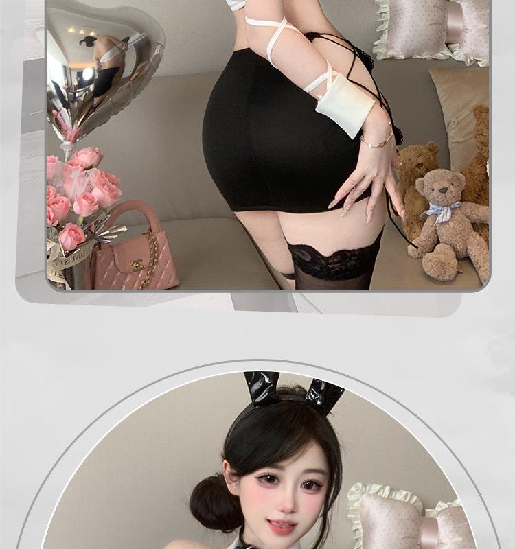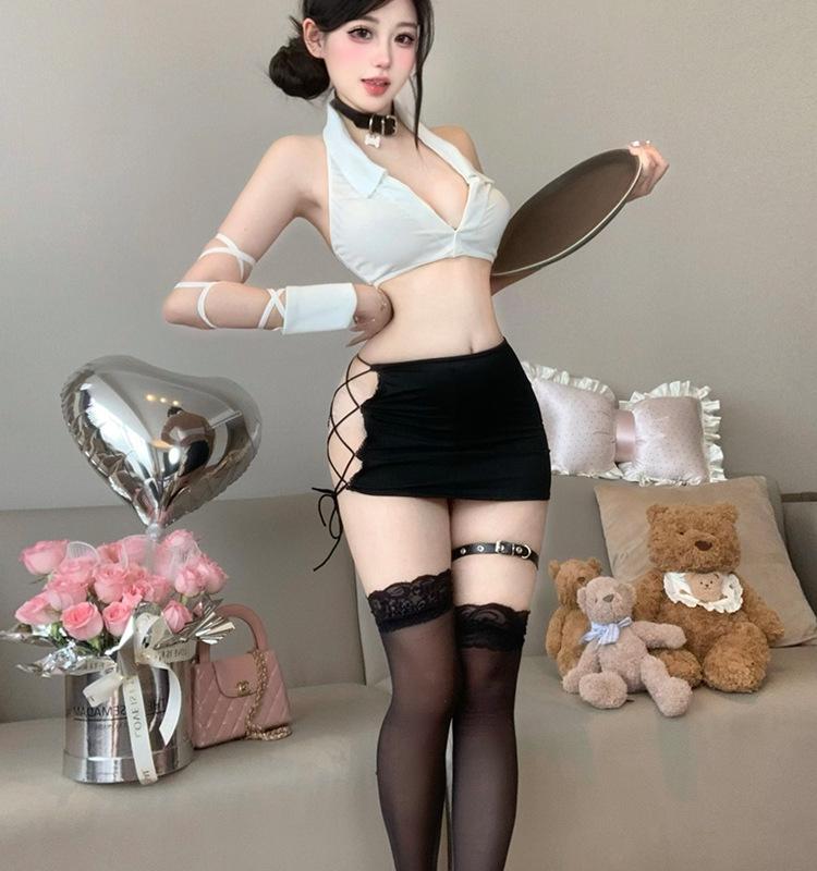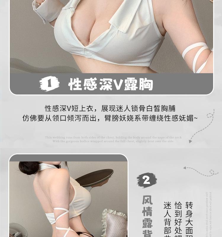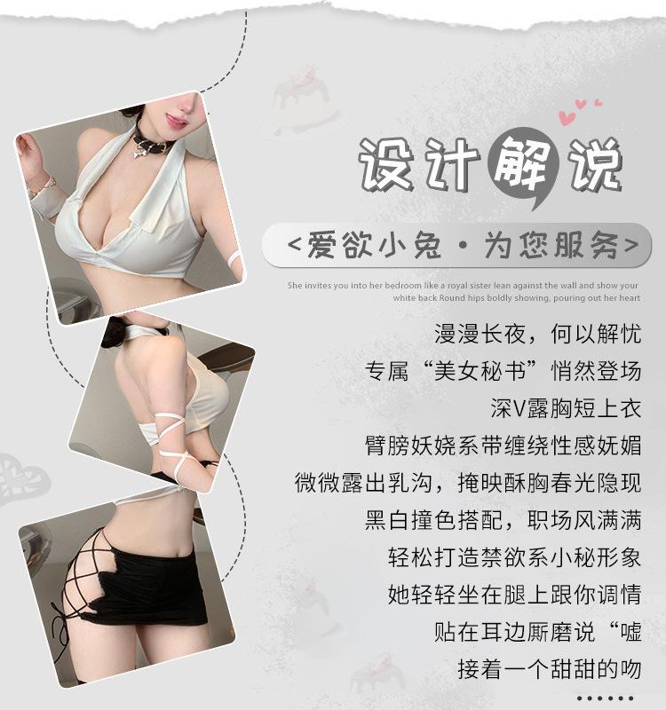 Lencería Sexy con Corte en V Profundo, Cadera Descubierta, Diseño de Tirantes Cruzados en la Espalda, Tentación de Uniforme de Secretaria, No Necesita Quitarse el Traje 2806