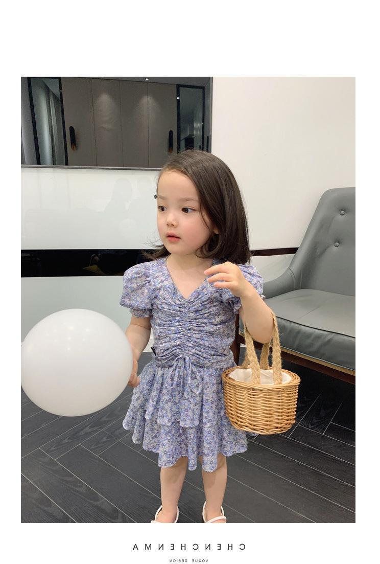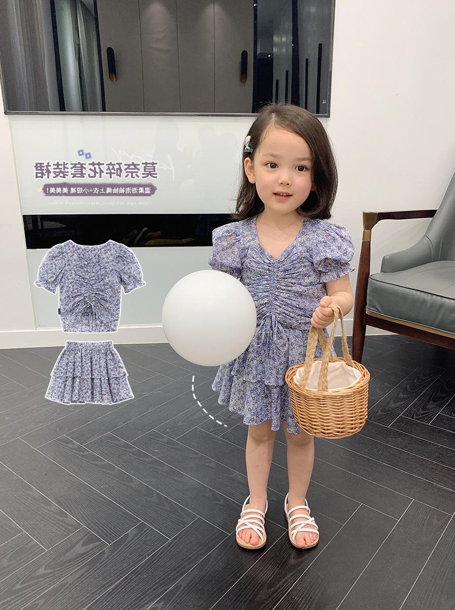 Venta al por mayor de ropa infantil transfronteriza Trajes para niñas 23 Verano Nuevo Conjunto de dos piezas de tops florales y faldas para niños En nombre de