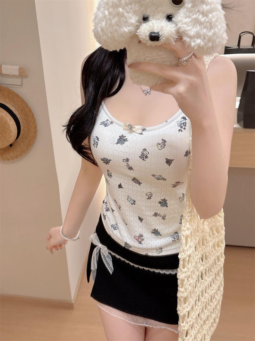 Camisola Blanca Nueva de Primavera Temprana 2025 para Mujer Nuevo Diseño Sexy Top Corto Sexy Camisola