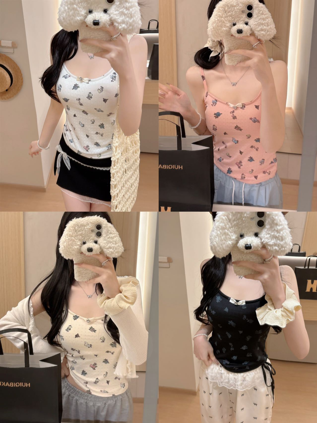 White, Black, Pink, Apricot
