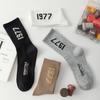 Calcetines de algodón de media pantorrilla para hombre, de 1977, para uso en exteriores, de moda, con letras de celebridades de Internet, calcetines deportivos, calcetines finos de primavera y otoño para parejas.
