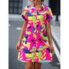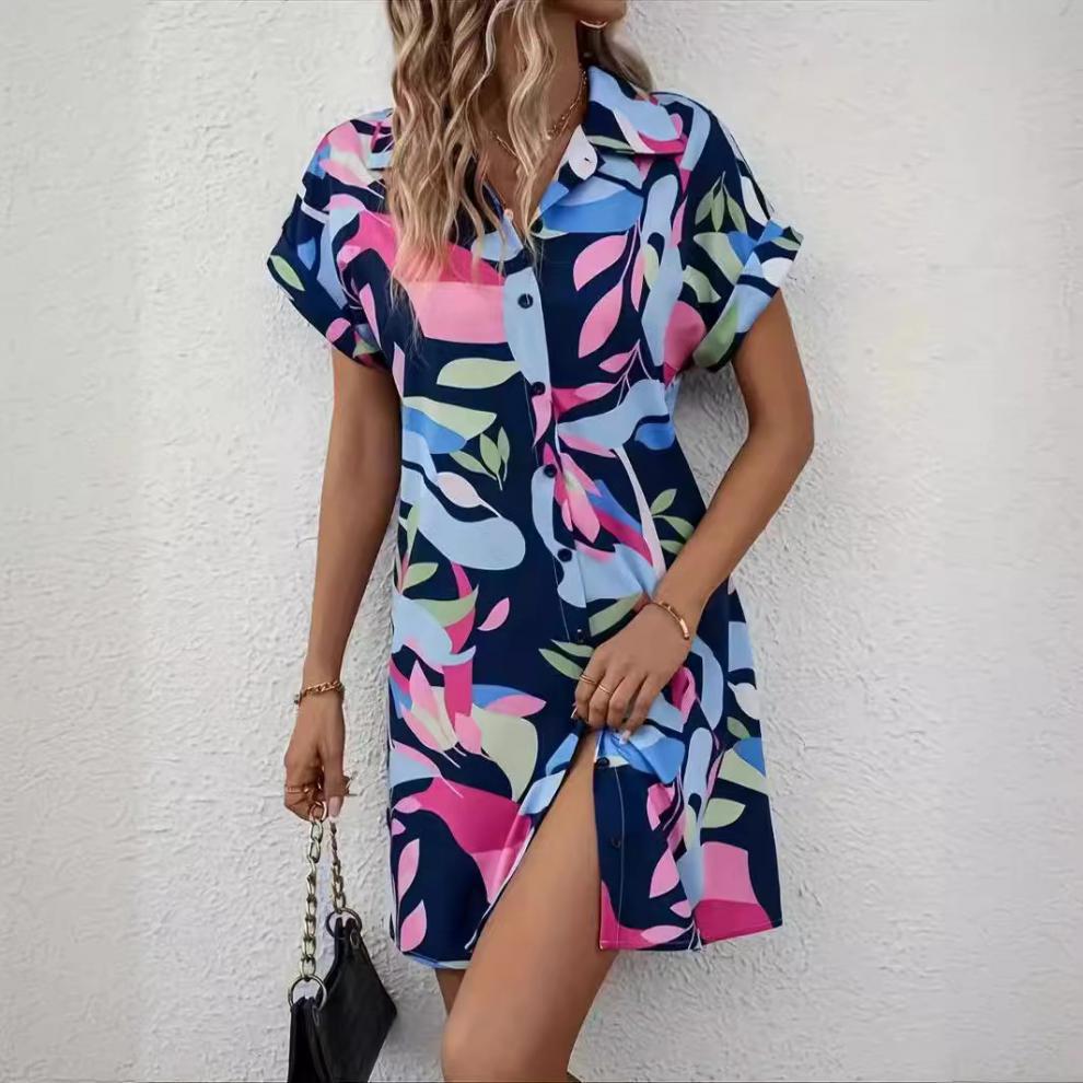 2024 AliExpress Amazon Nuevo Vestido Camisero de Manga Corta con Cuello y Estampado Floral