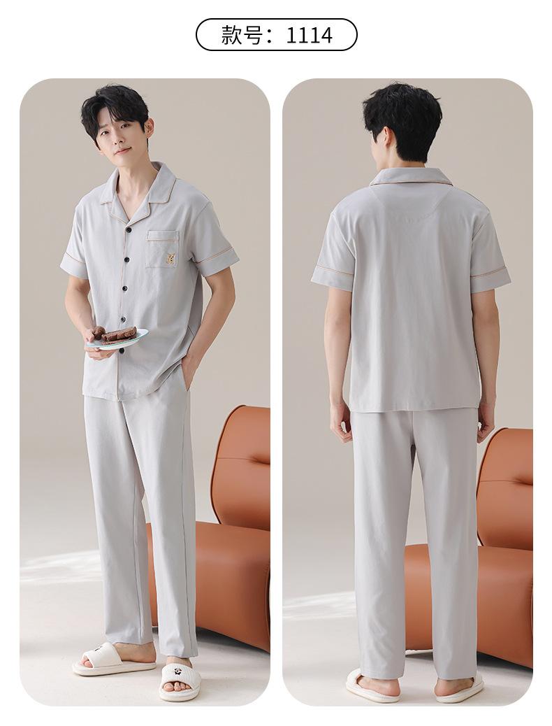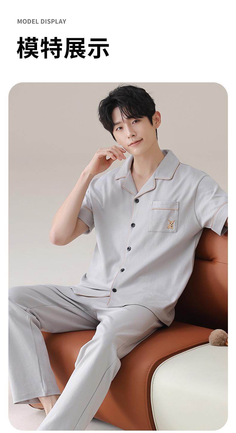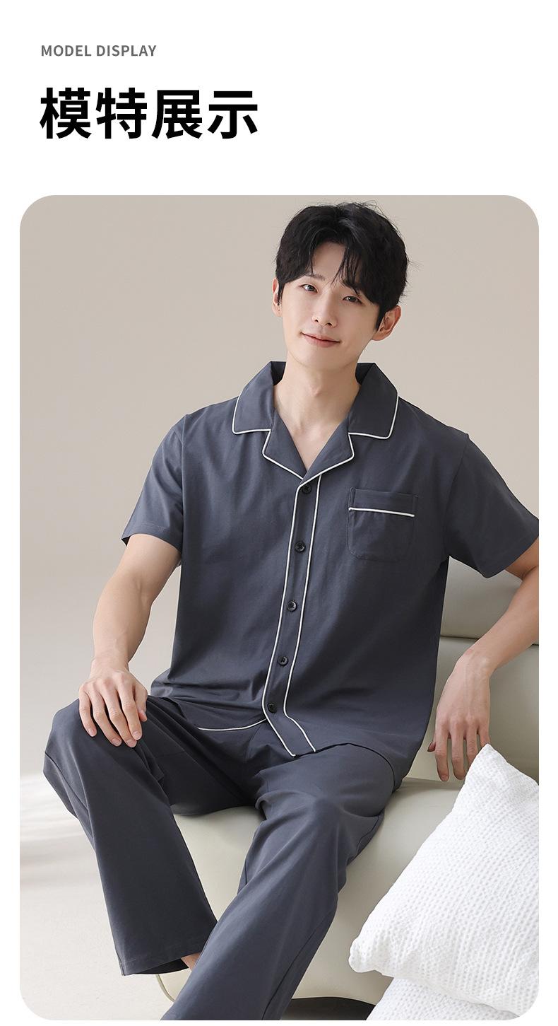 Pijama Antibacterial Clase a Verano 2025 para Hombre Algodón Puro Nuevo Cárdigan Manga Corta Manga Larga Ropa de Casa Algodón de Tirar Traje