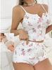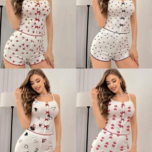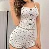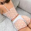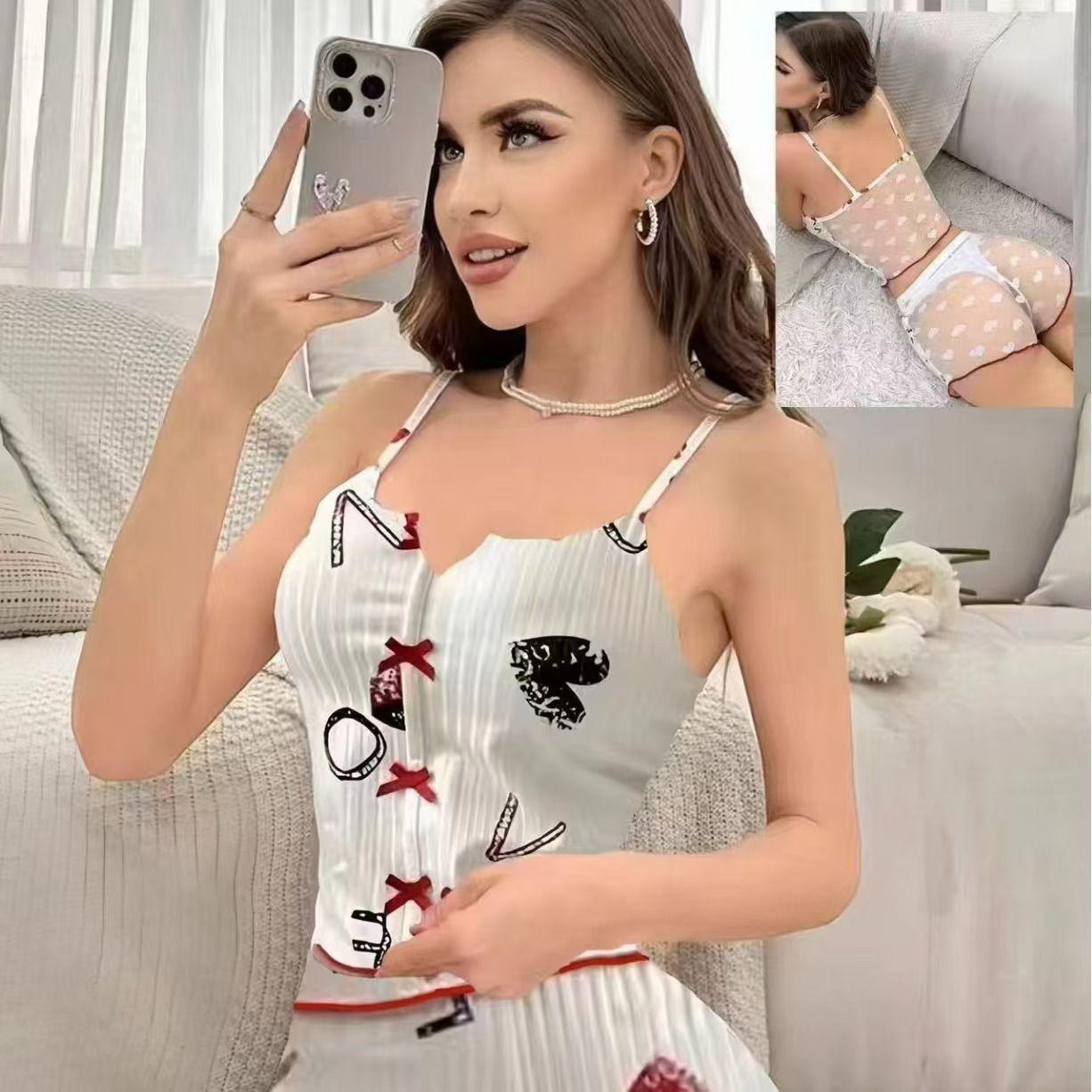 Pijama Sexy de Dos Piezas con Parche de Malla Estampado Transfronterizo Amazon Europeo y Americano Ropa de Dormir para Mujer Estilo Europeo y Americano