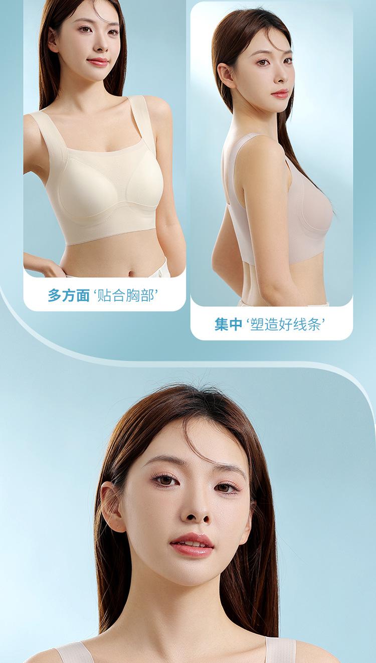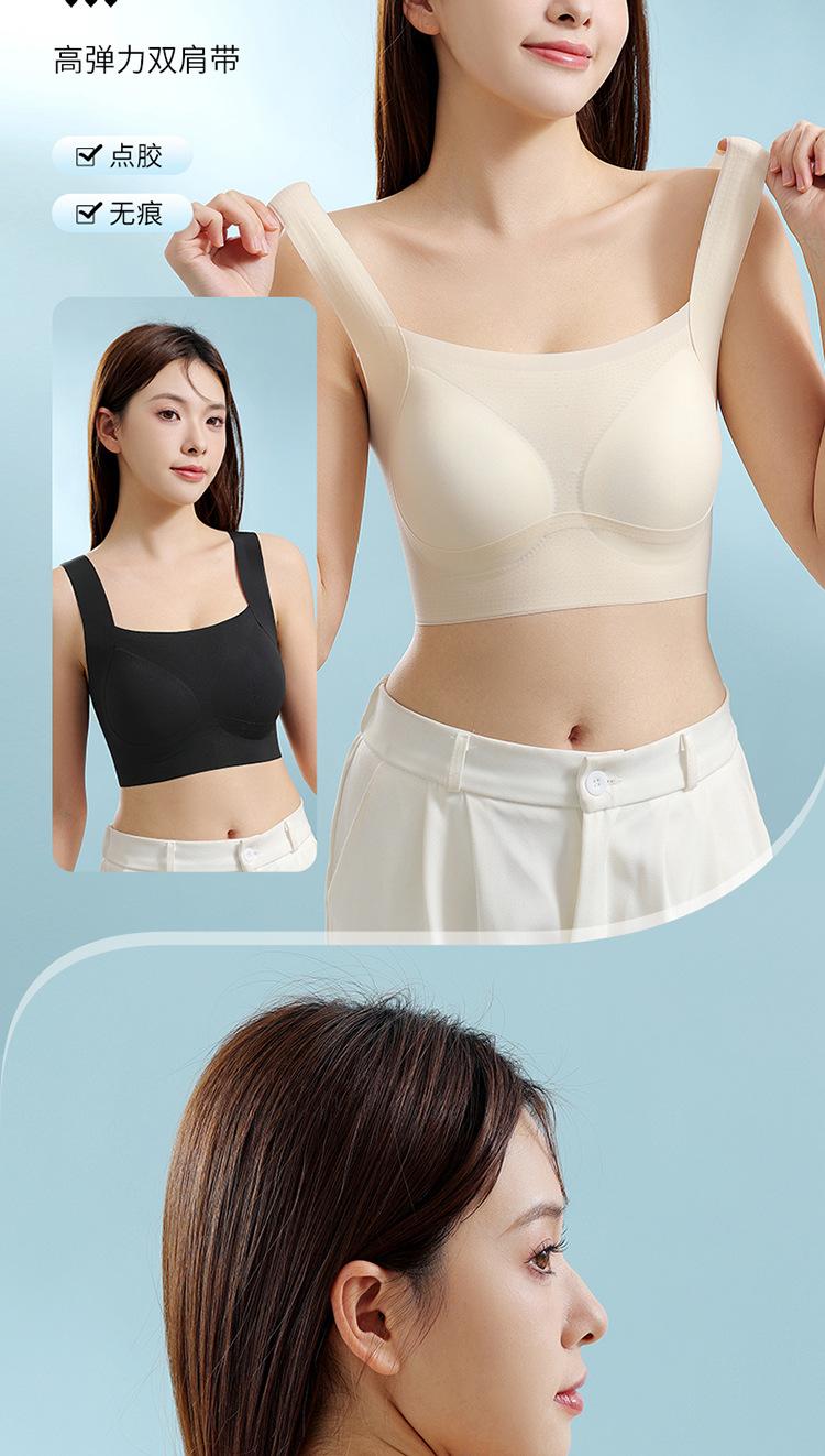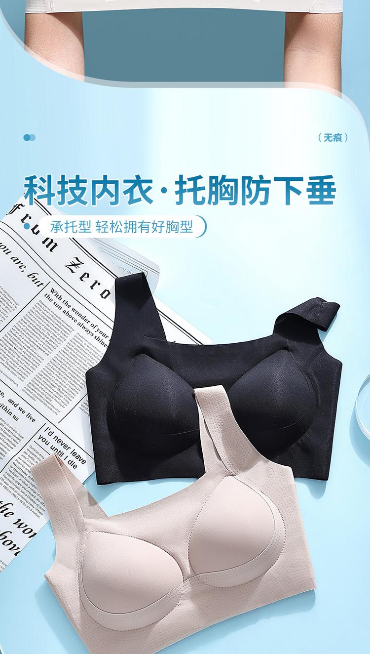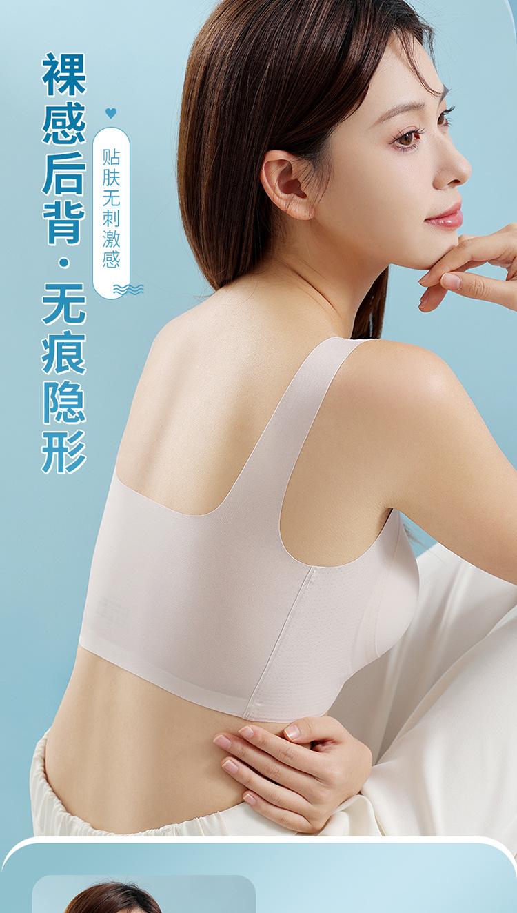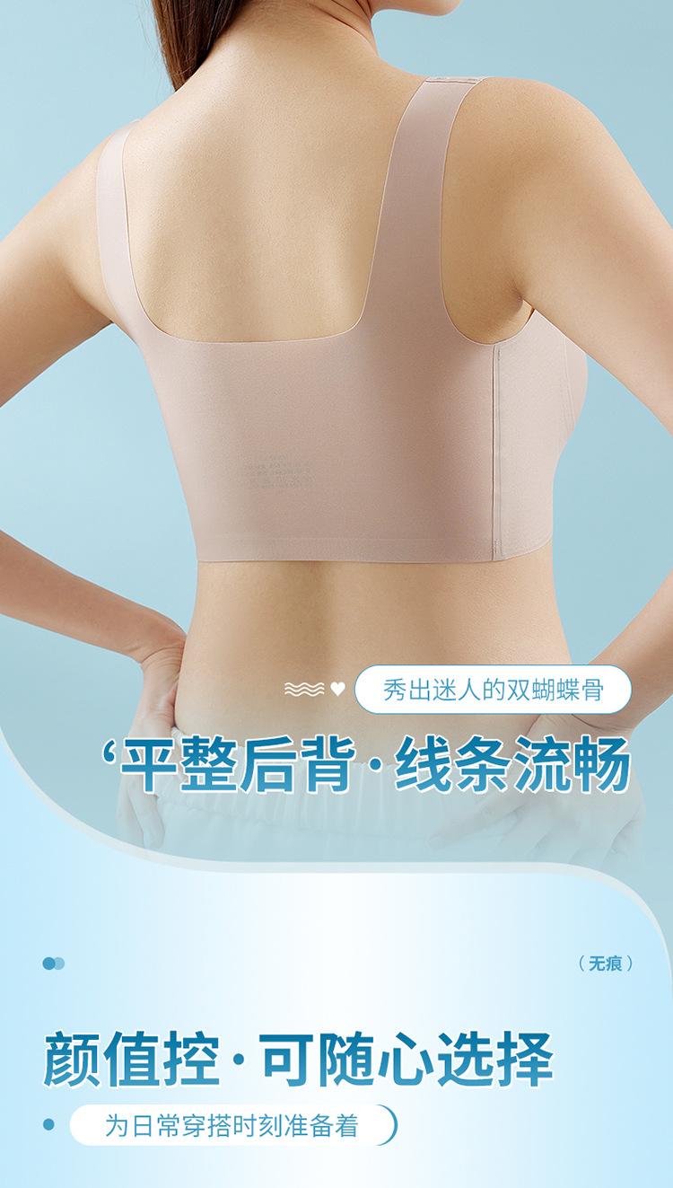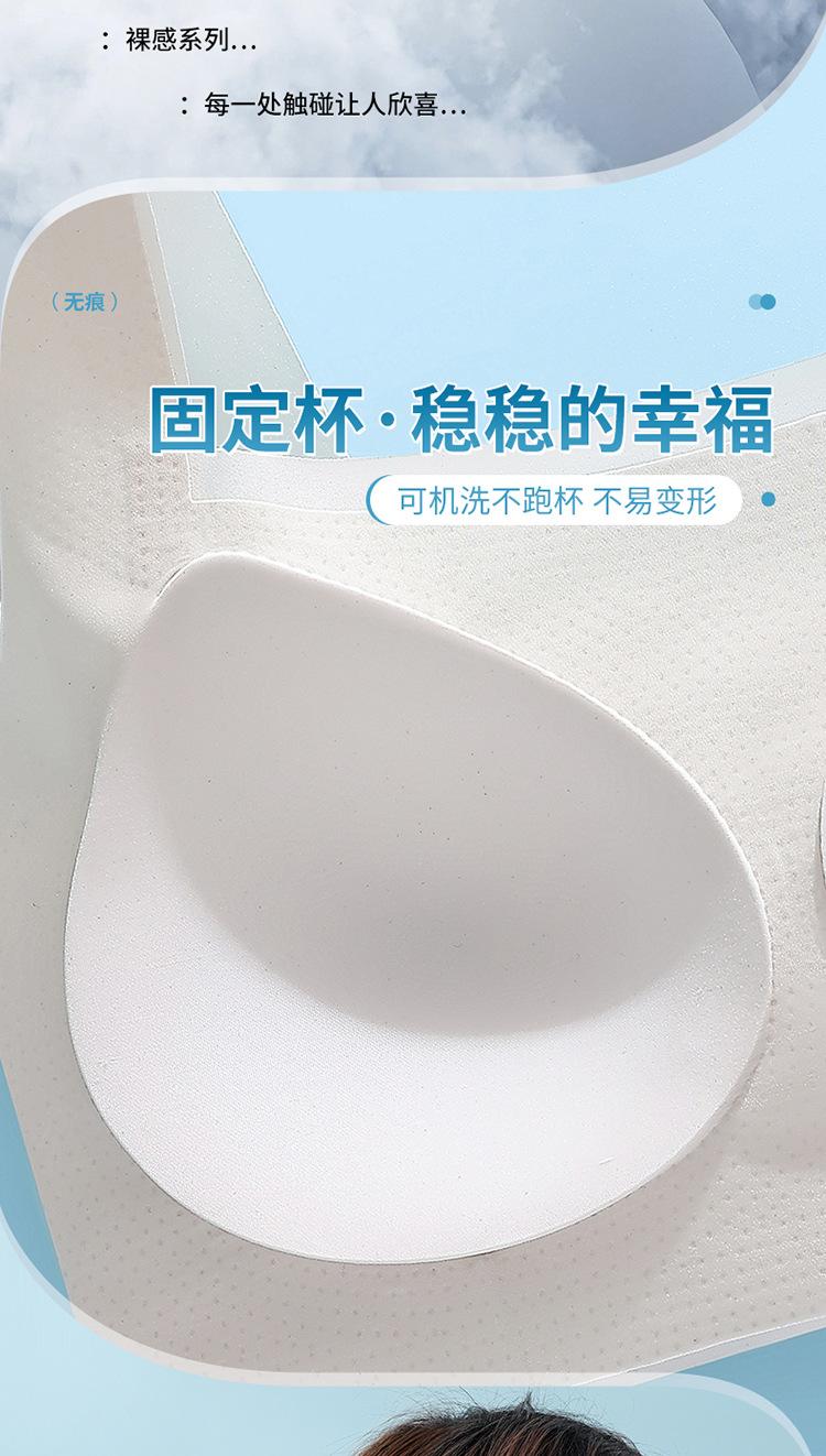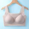 Nuevo brasier sin costuras en la espalda con almohadilla en el pecho, copa fija con soporte superior recogido, color sólido claro de talla grande sin aro de acero