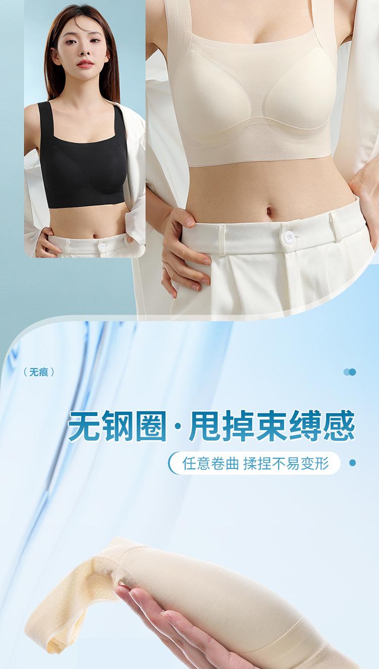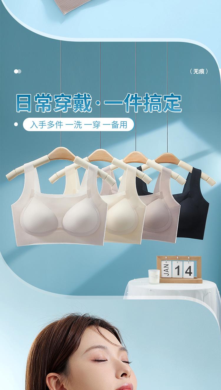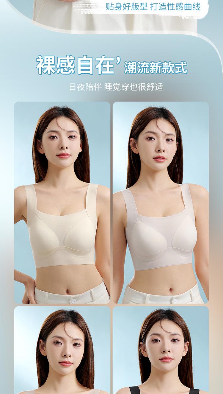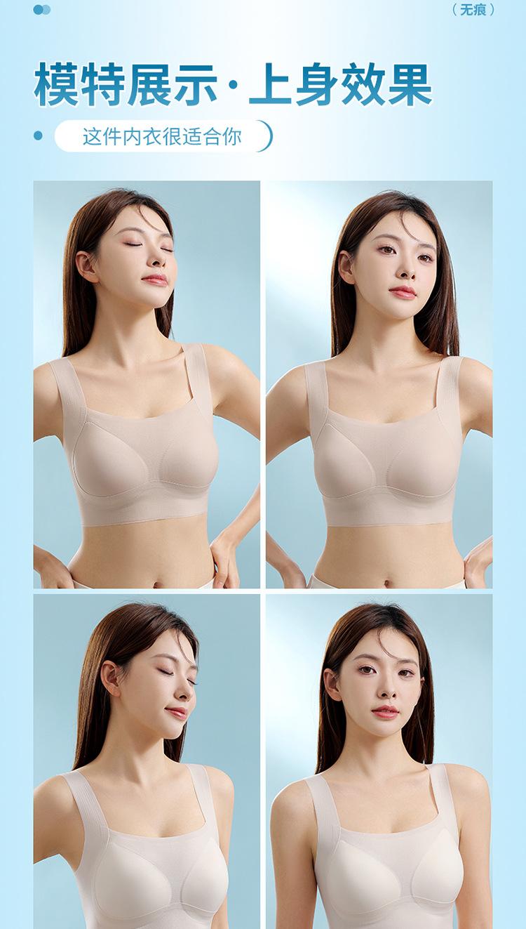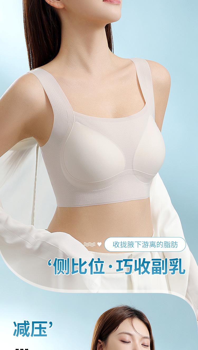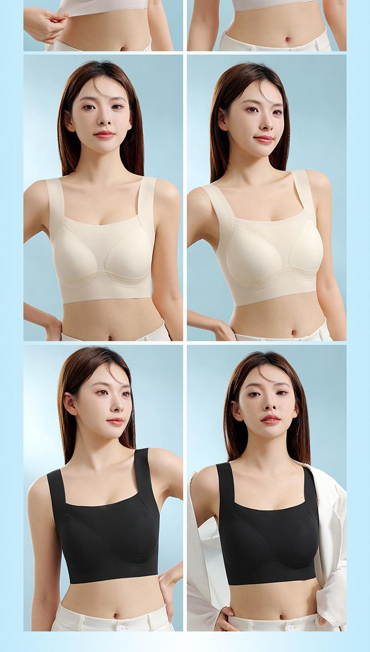 Nuevo brasier sin costuras en la espalda con almohadilla en el pecho, copa fija con soporte superior recogido, color sólido claro de talla grande sin aro de acero