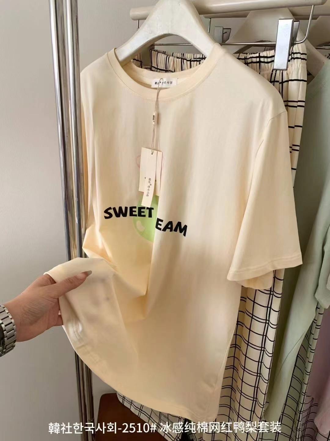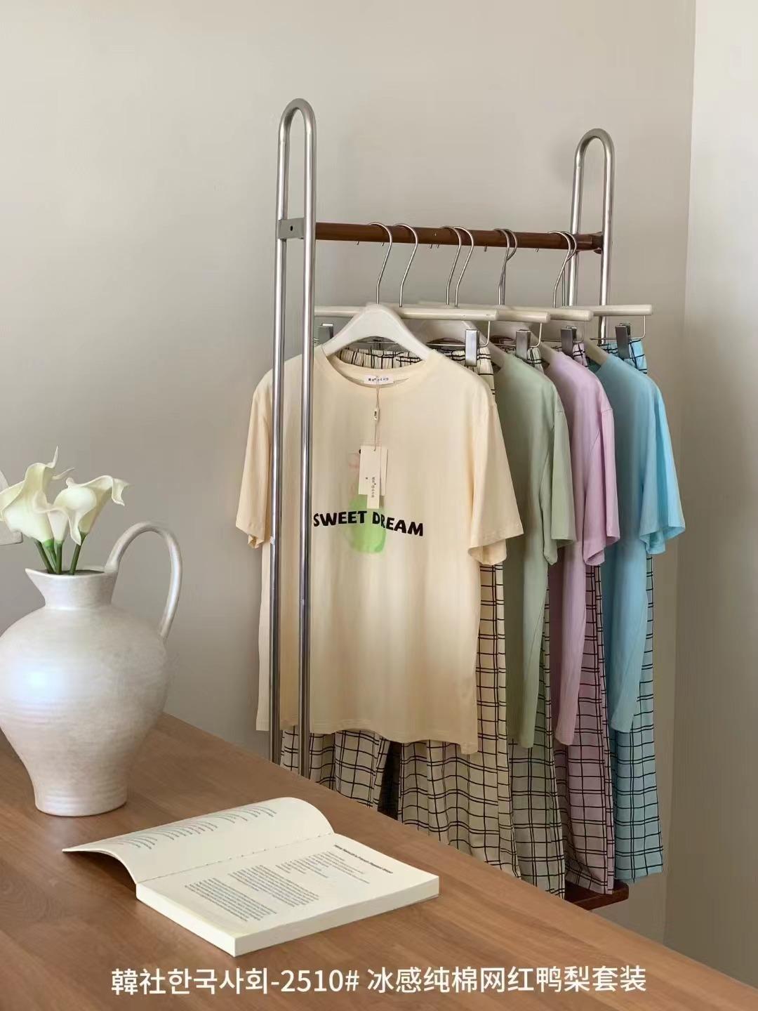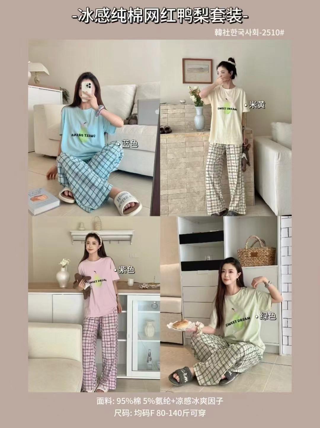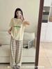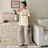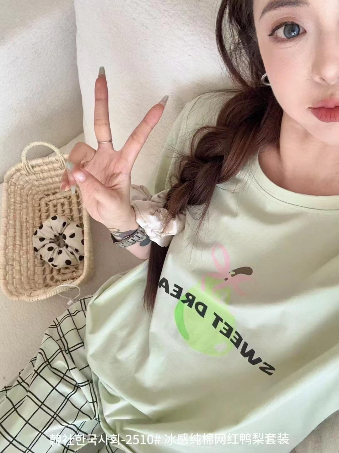 Compra 2510 Conjunto de Roupa de Casa de Algodão Puro com Sensação de Gelo Coreano para Celebridades da Internet Verão Feminino Xadrez Gola Redonda Manga Curta Pijama Transfronteiriço al por mayor en Joom.pro