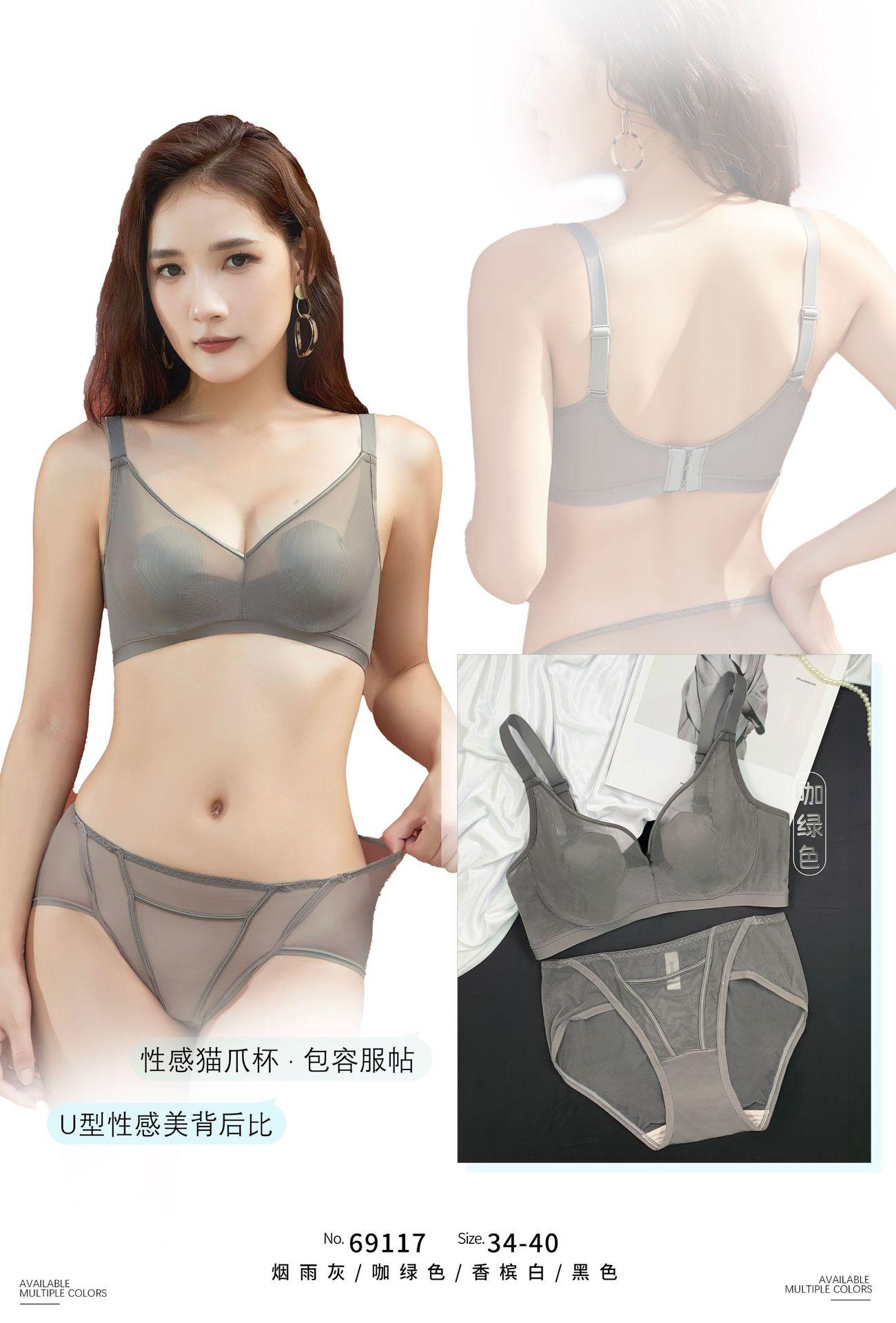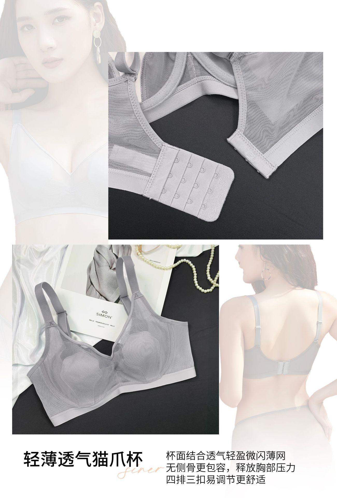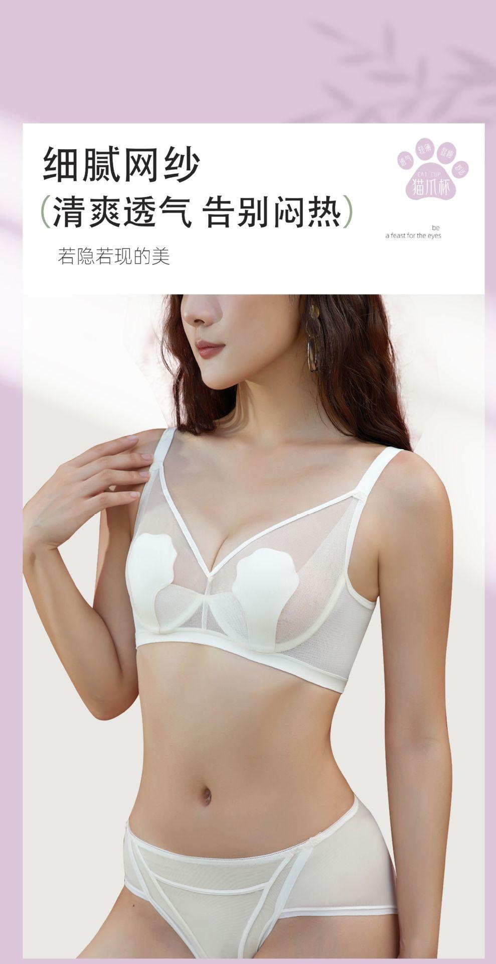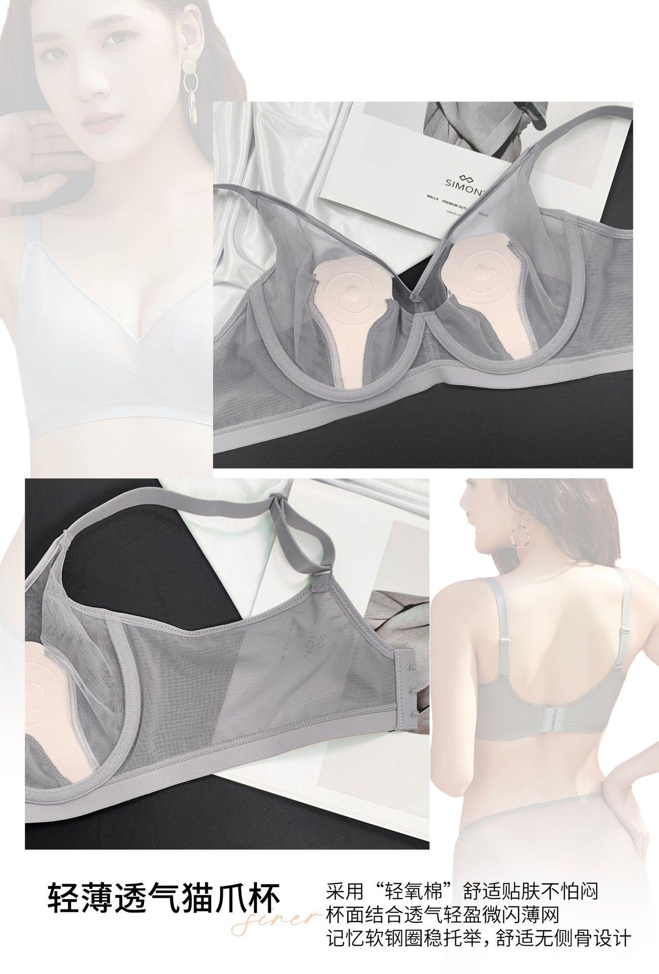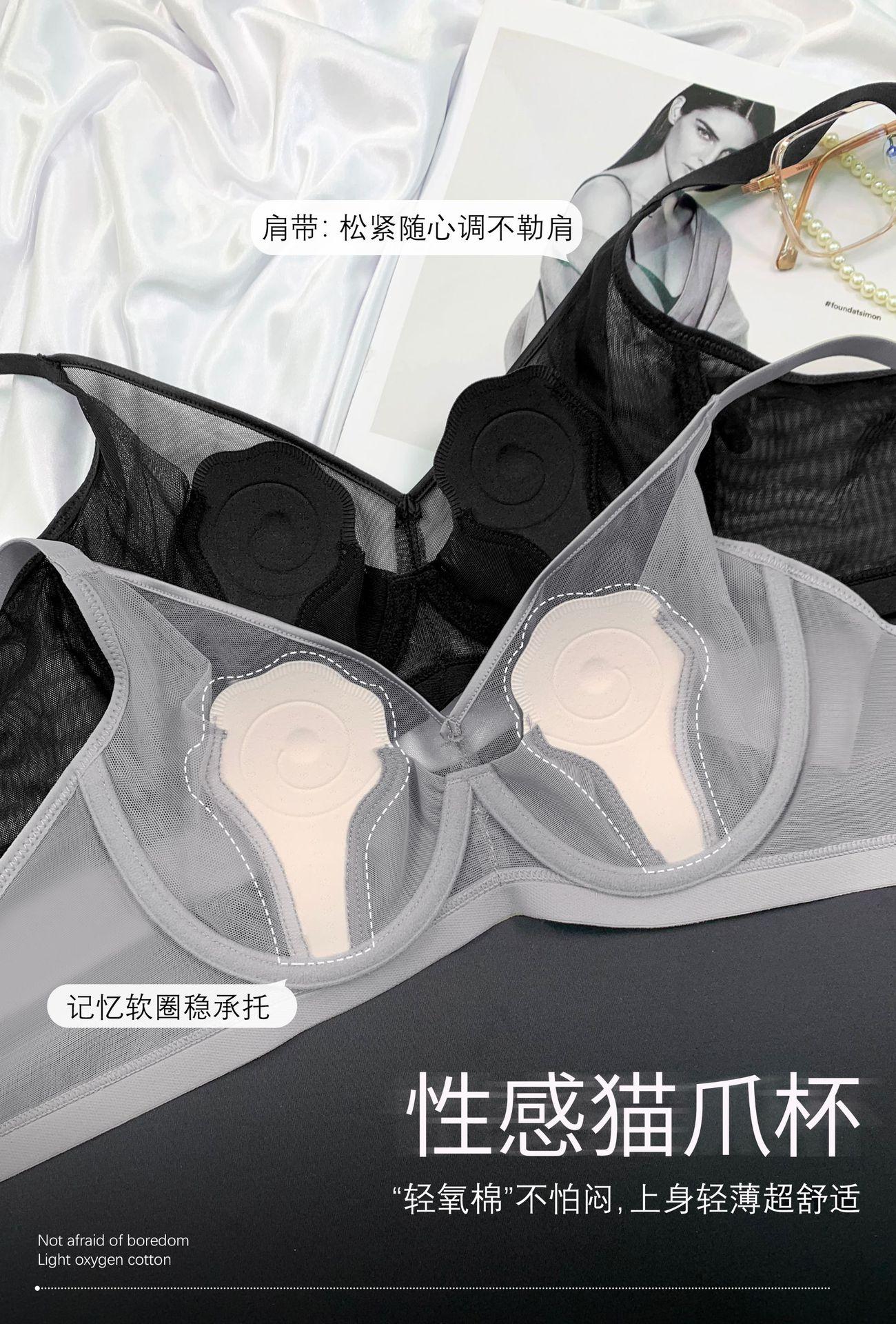 69117 Encaje Fino Malla Push-Up Adelgazante Aro de Acero Suave Copa Garra de Gato Íntimos Sujetador Ajustable Retractor de Senos para Mujer