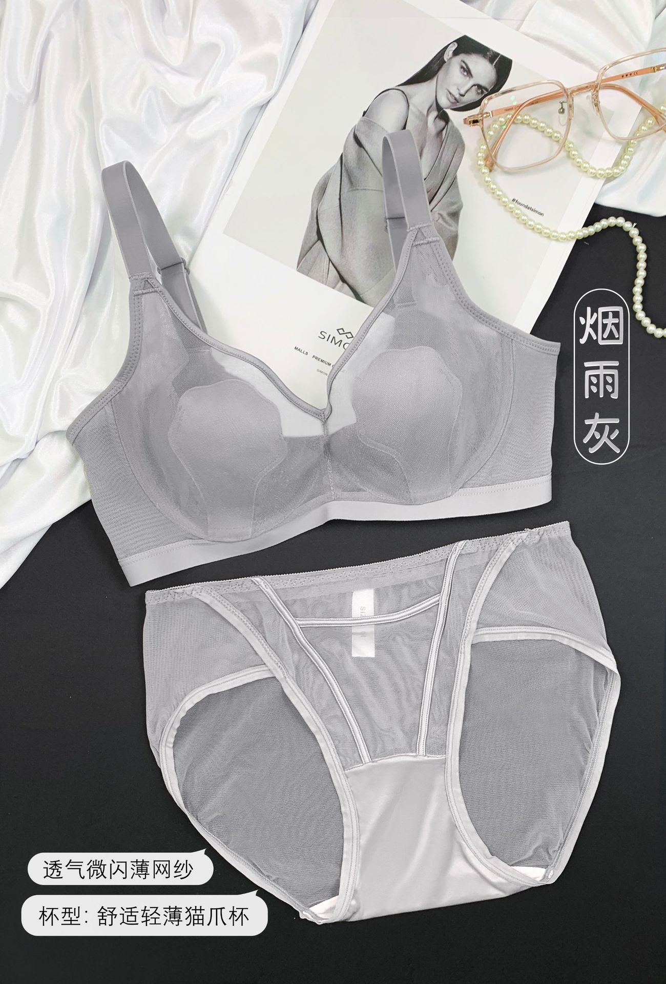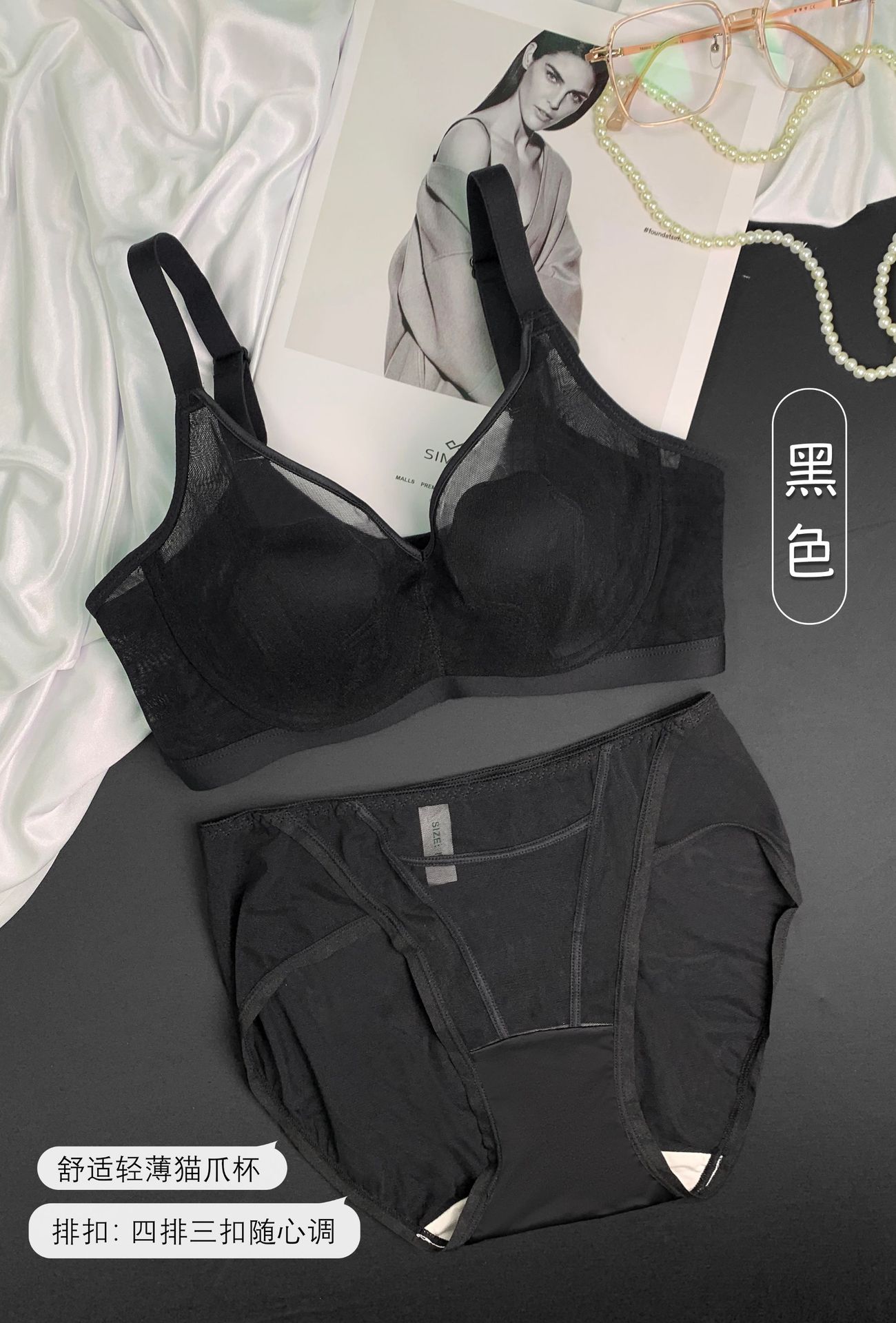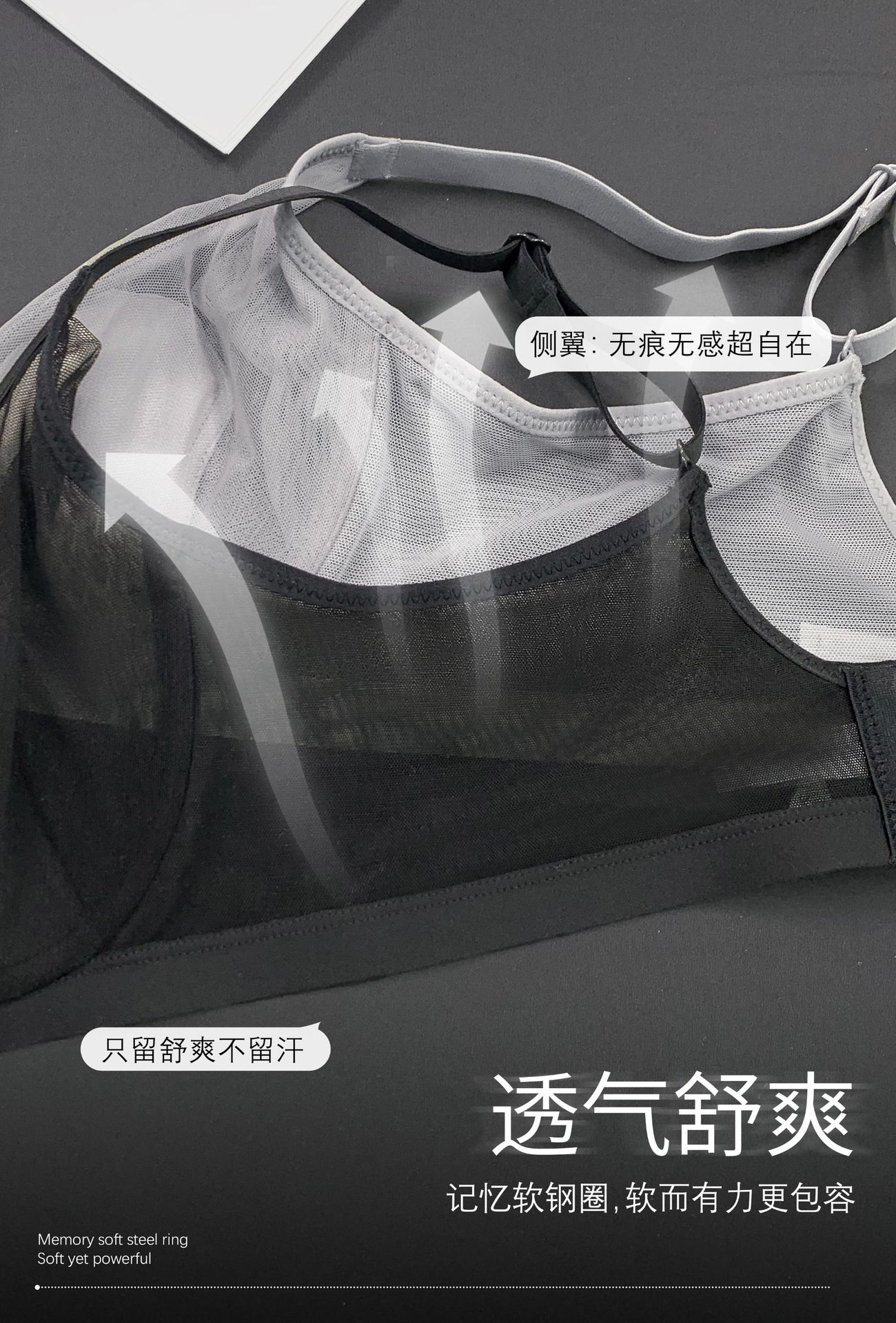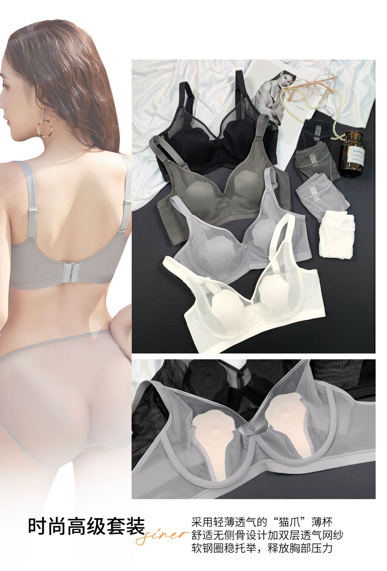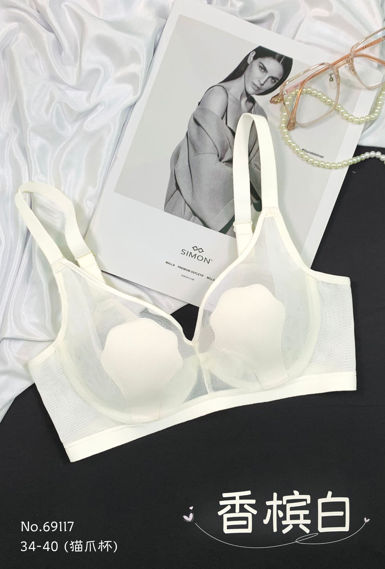 69117 Encaje Fino Malla Push-Up Adelgazante Aro de Acero Suave Copa Garra de Gato Íntimos Sujetador Ajustable Retractor de Senos para Mujer