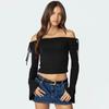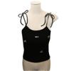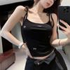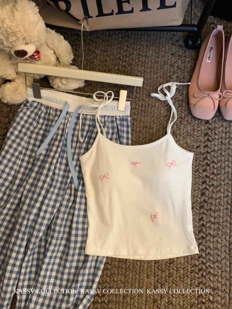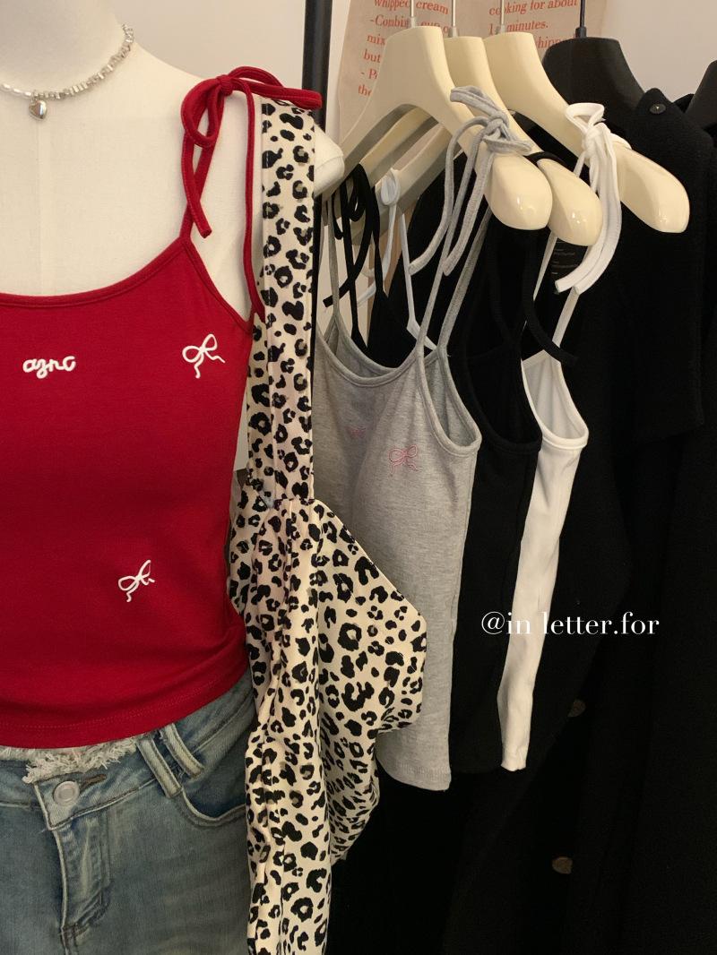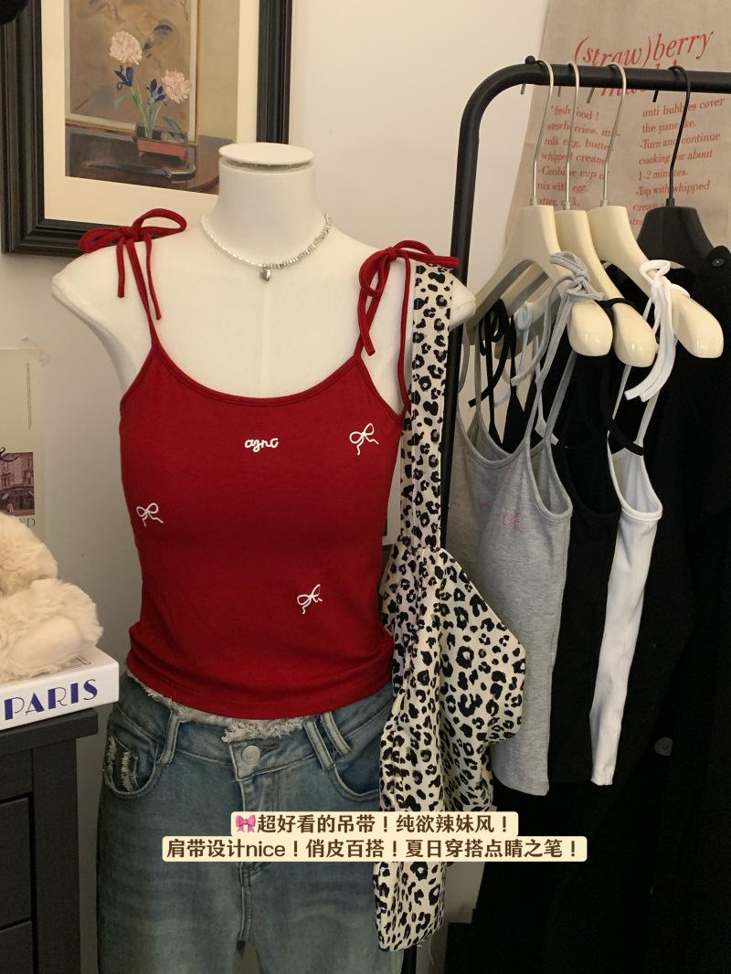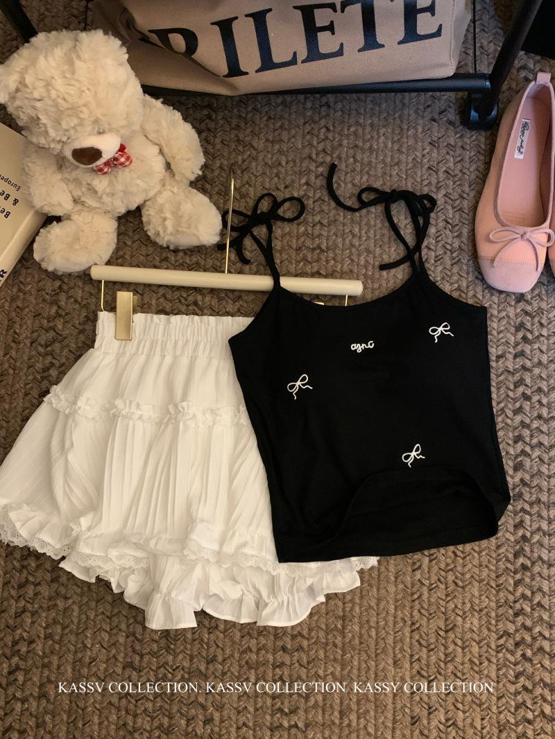 Dulce y Genial Americano Sexy Moño Negro Tirantes Corte Cut Out Delgado Sin Mangas Estampado Corto Top de Moda
