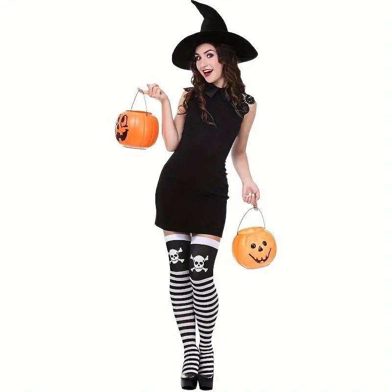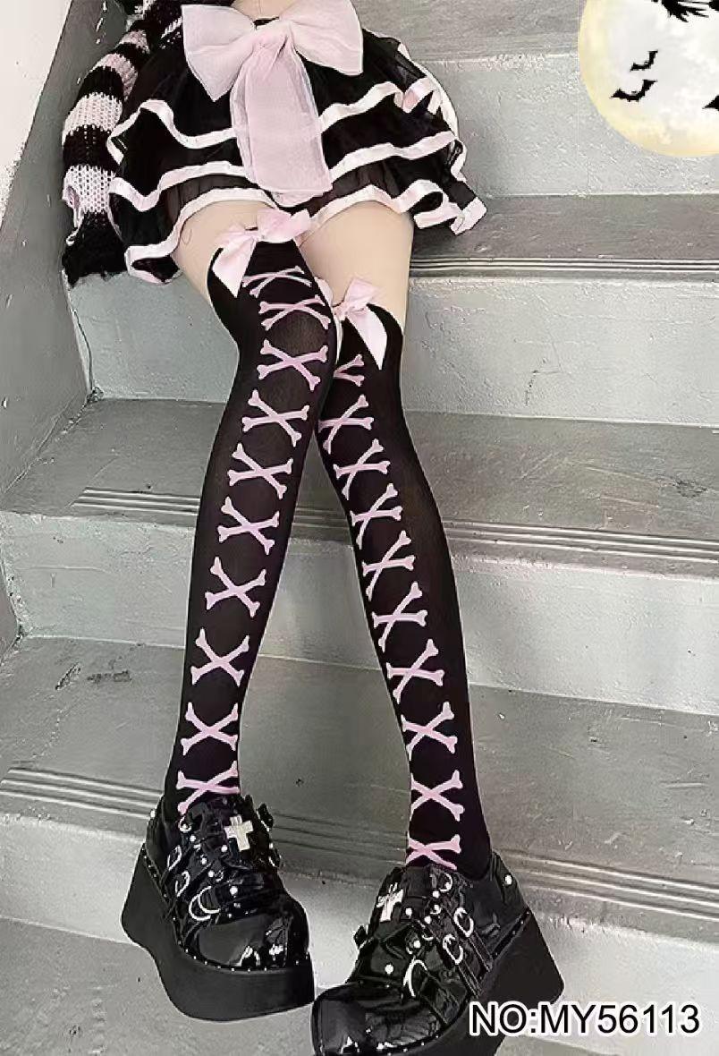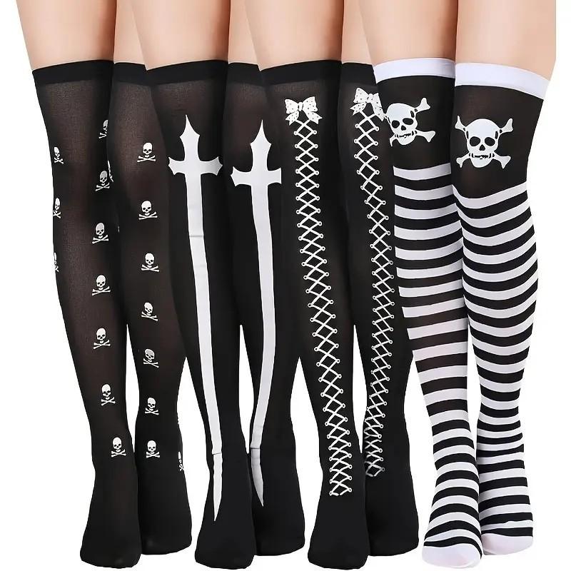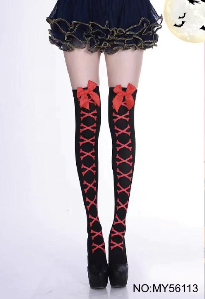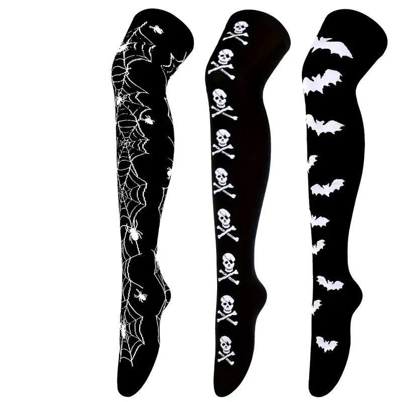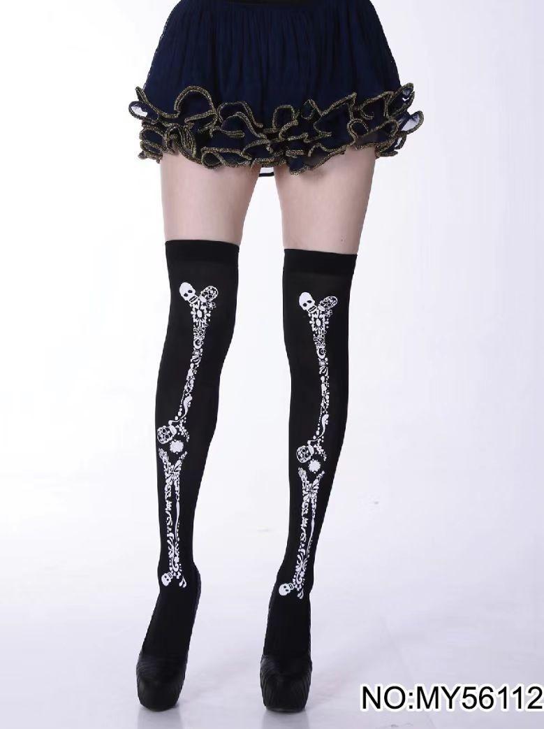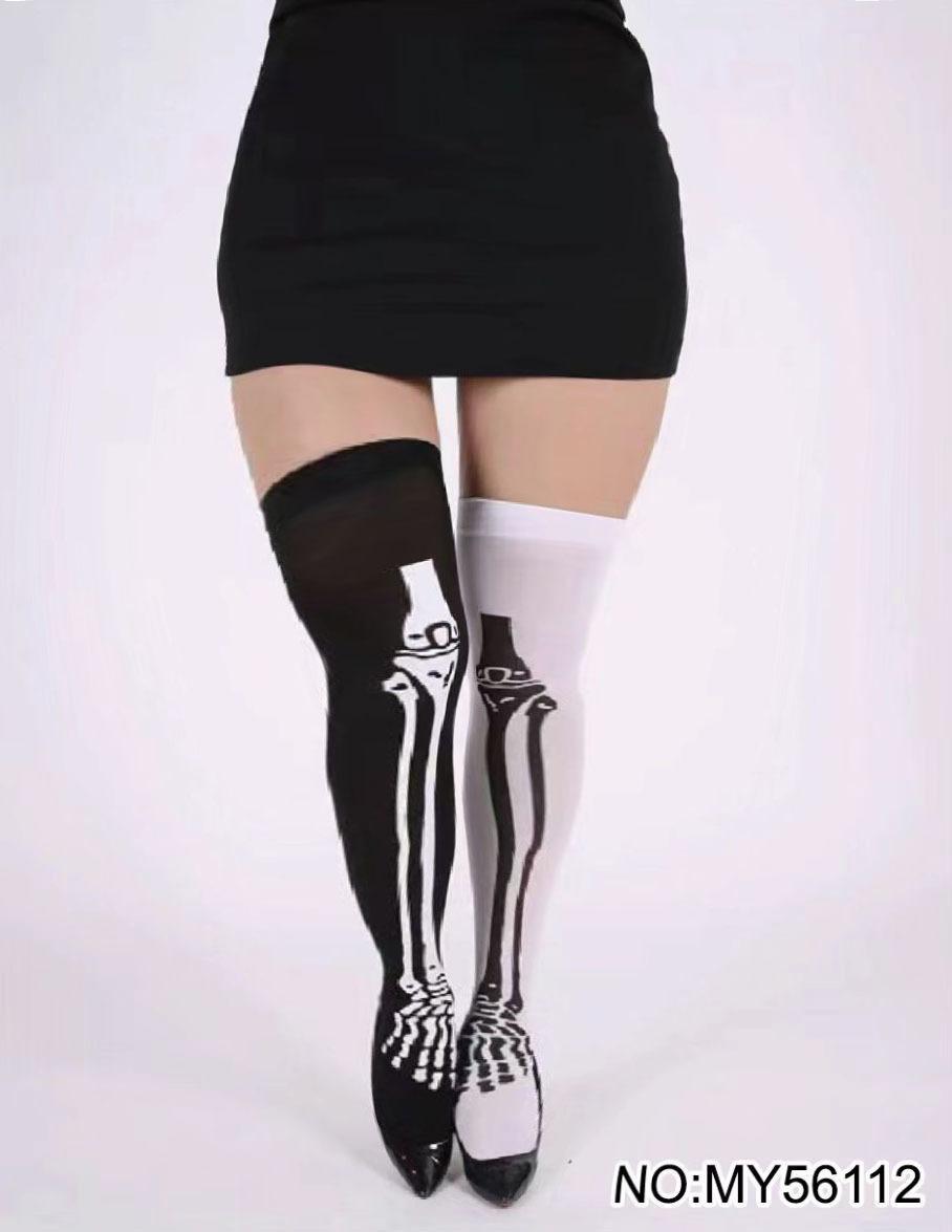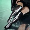 Medias de Halloween Hueso Transfronterizo Nuevo Producto Poliéster Medias Hasta la Rodilla Color Navideño Estampado Calavera Estilo Medias en Stock