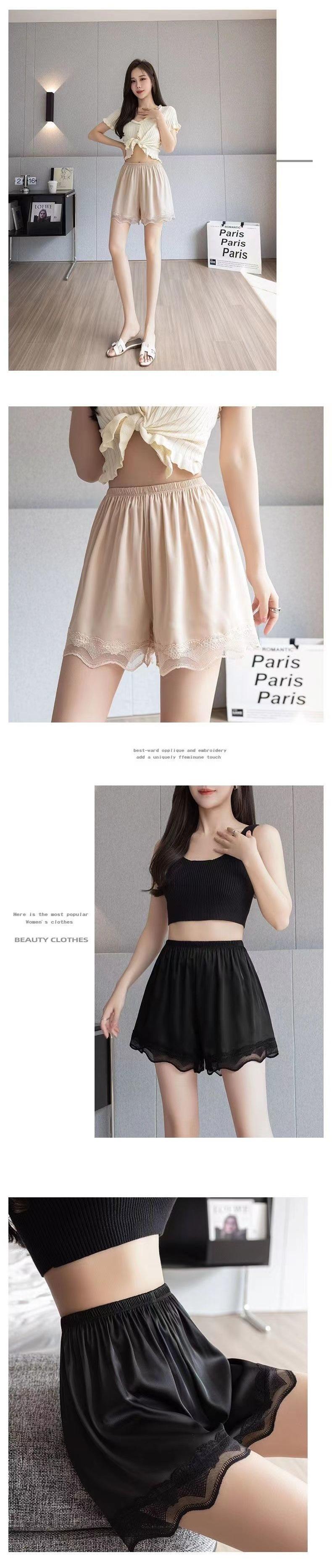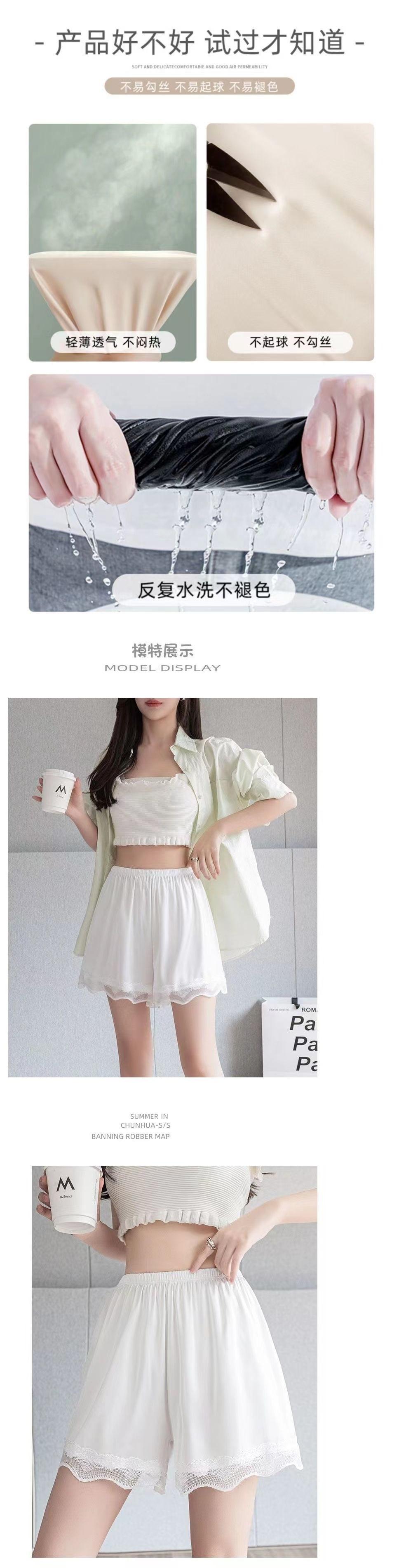Shorts de Seguridad de Seda de Hielo para Mujer, Anti-Exposición, Verano Delgados Sin Costuras, Se Pueden Usar Afuera, No se Enrollan, Shorts de Seguro con Base de Encaje para el Hogar