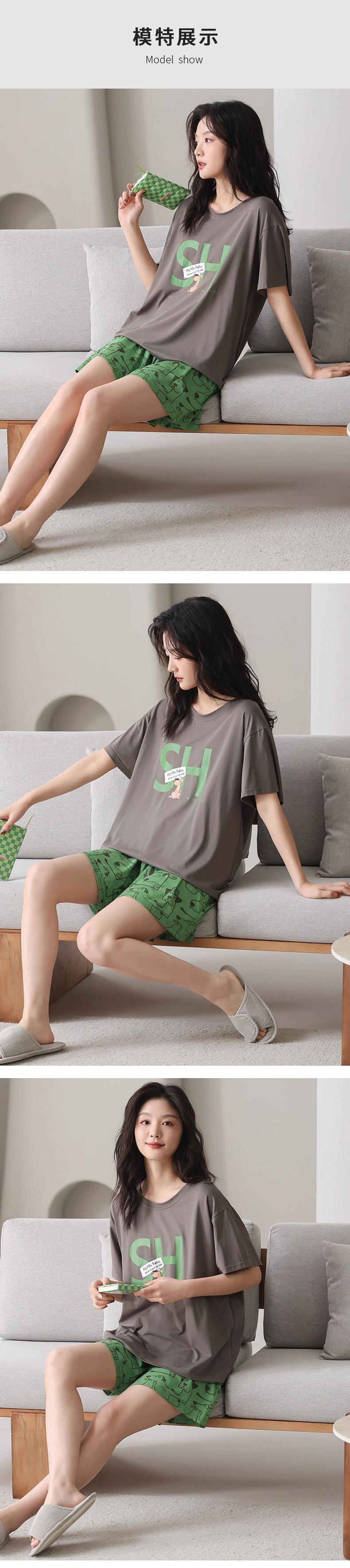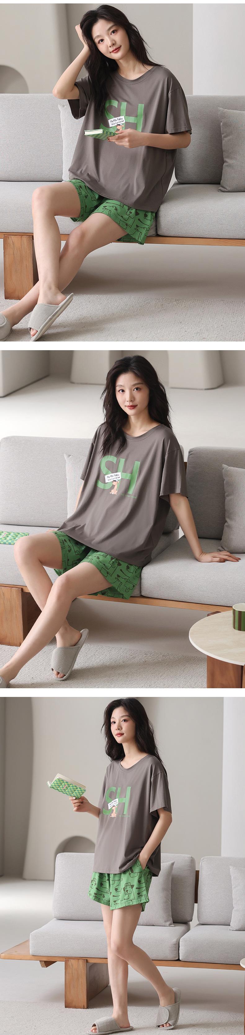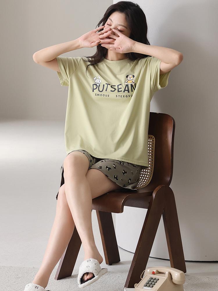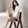 Pijama Fresco de Algodón Modal para Mujer Verano Manga Corta Shorts con Almohadilla en el Pecho Ropa de Exterior Estilo Coreano Dulce Traje para Estar en Casa
