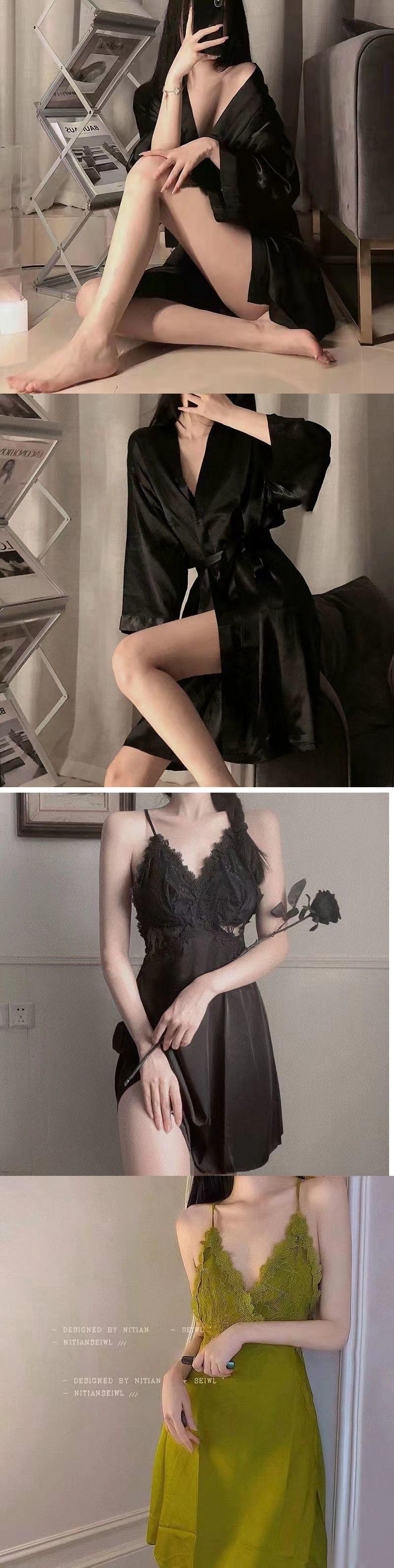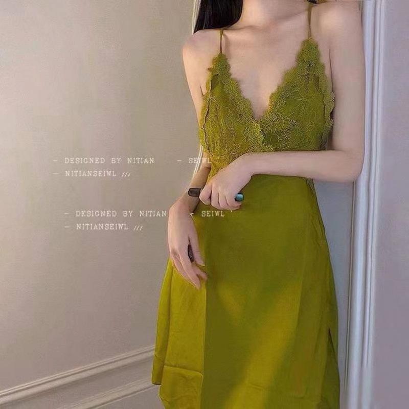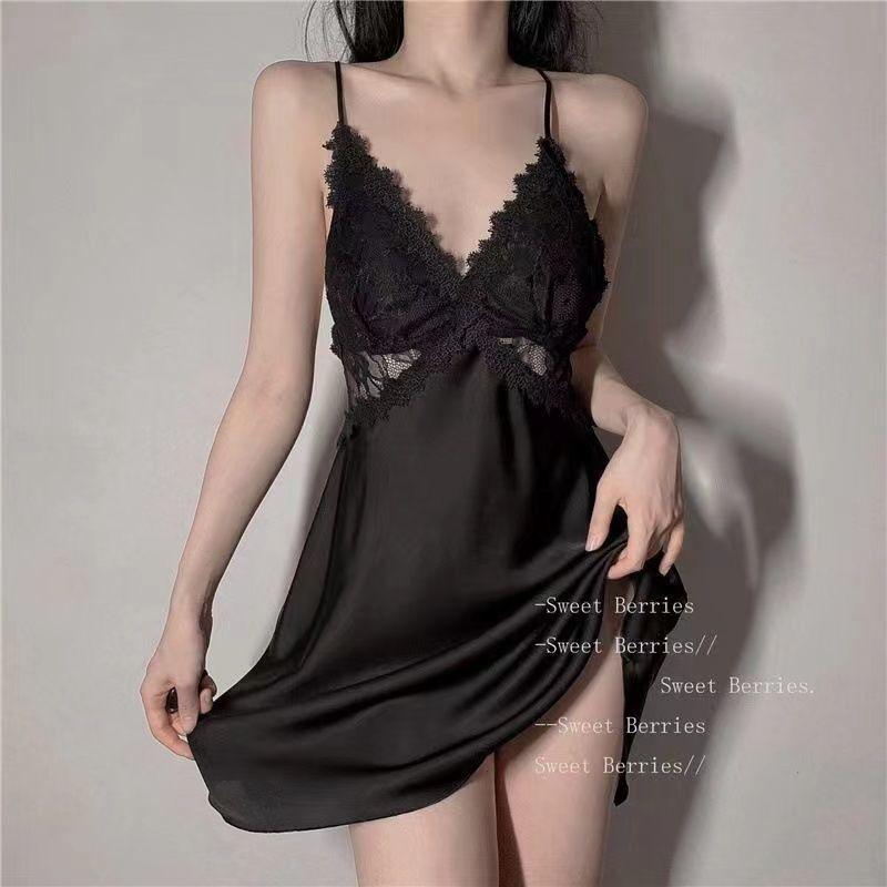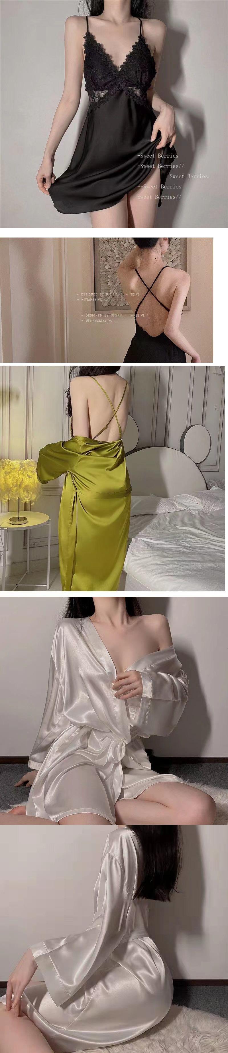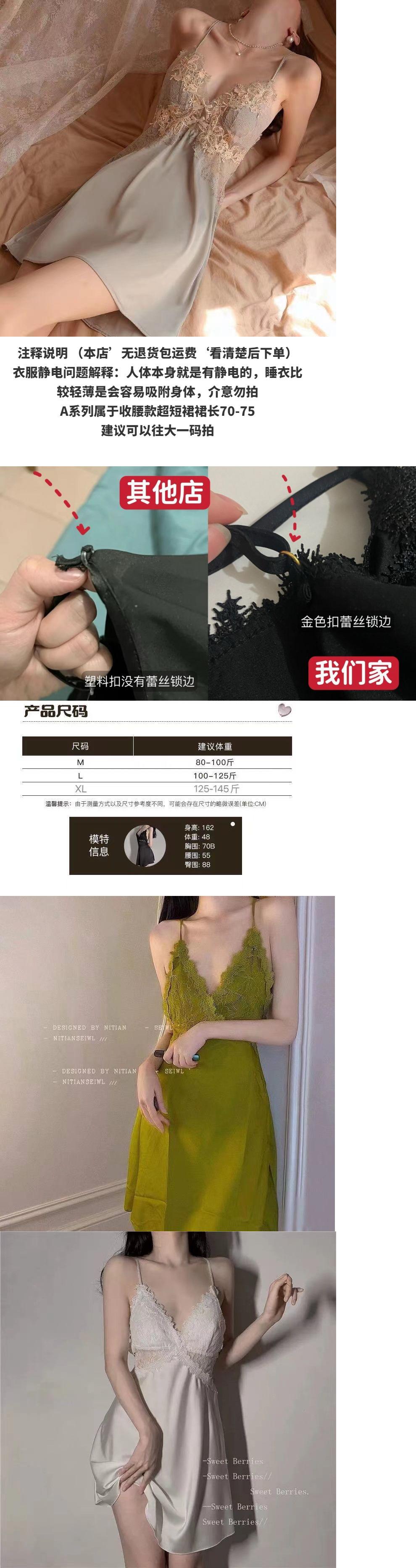 Pijama de Verano para Mujer con Seda de Hielo, Encaje Fino, Espalda Hermosa, Camisón Sexy, Estilo Ins, Estilo Sexy y de Deseo Puro
