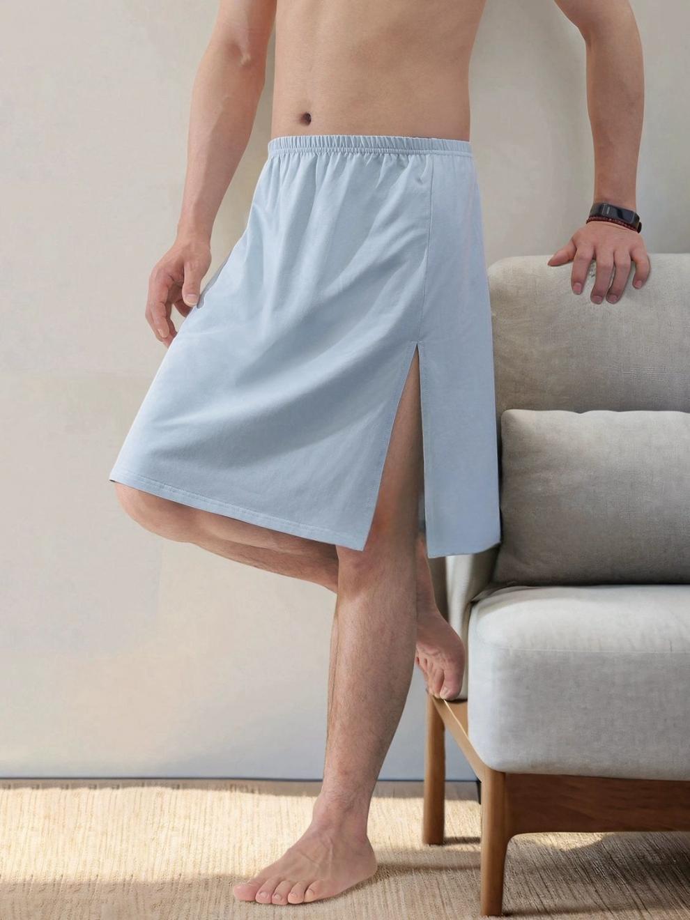Camisón de Media Longitud para Hombre, Algodón Usable Abertura Lateral, Falda de Baño para Mujer Talla Grande, Ropa de Casa Suelta para Dormir Desnudo 100kg