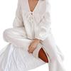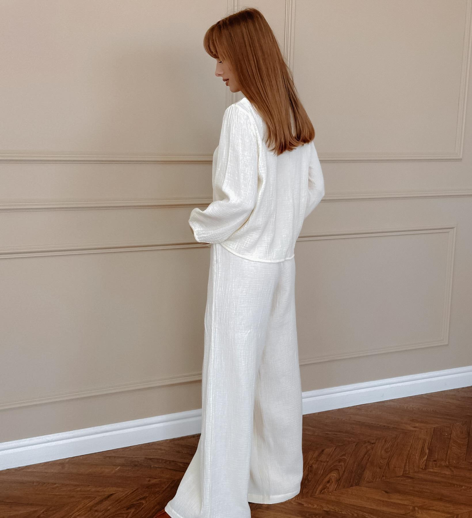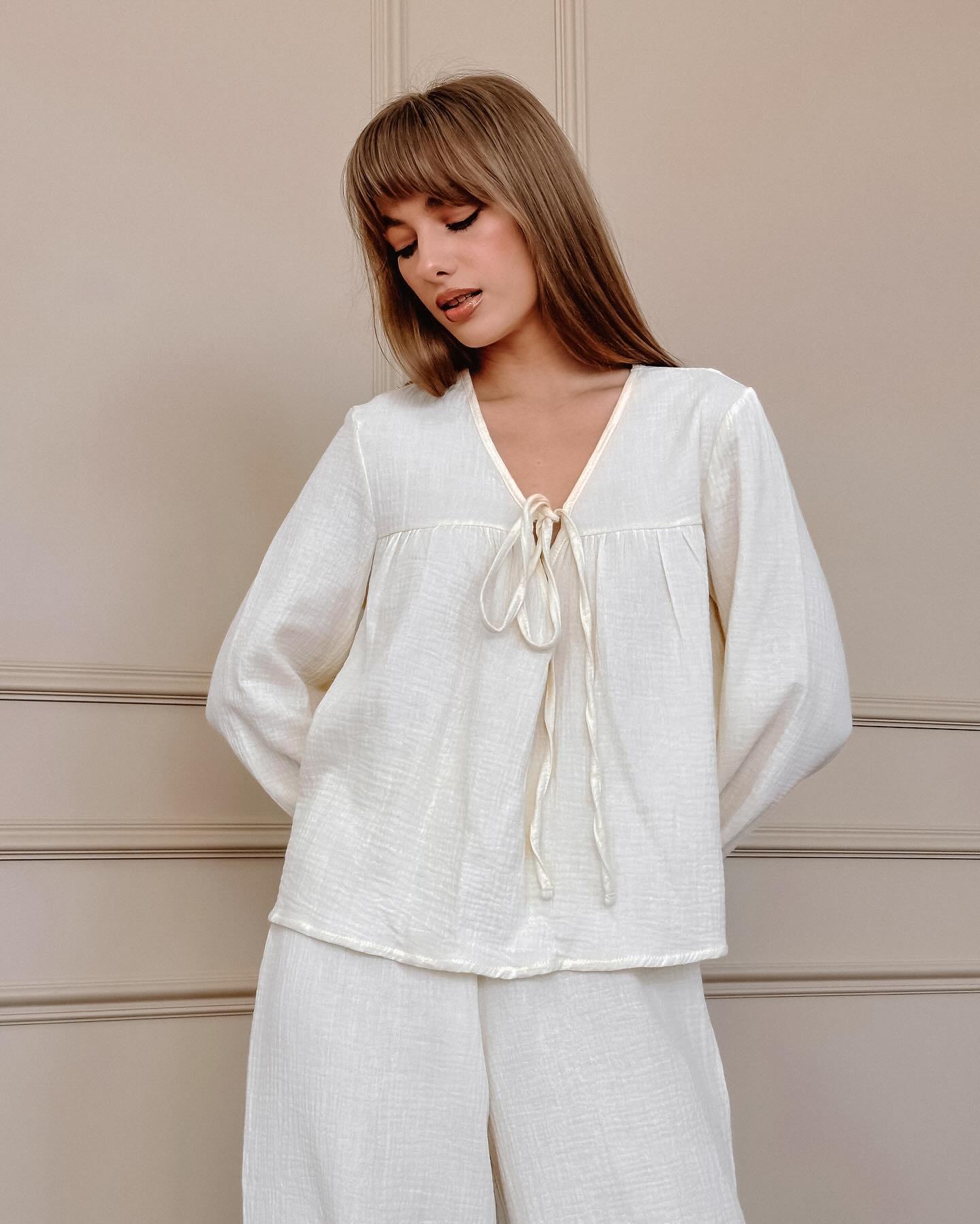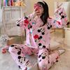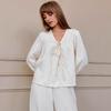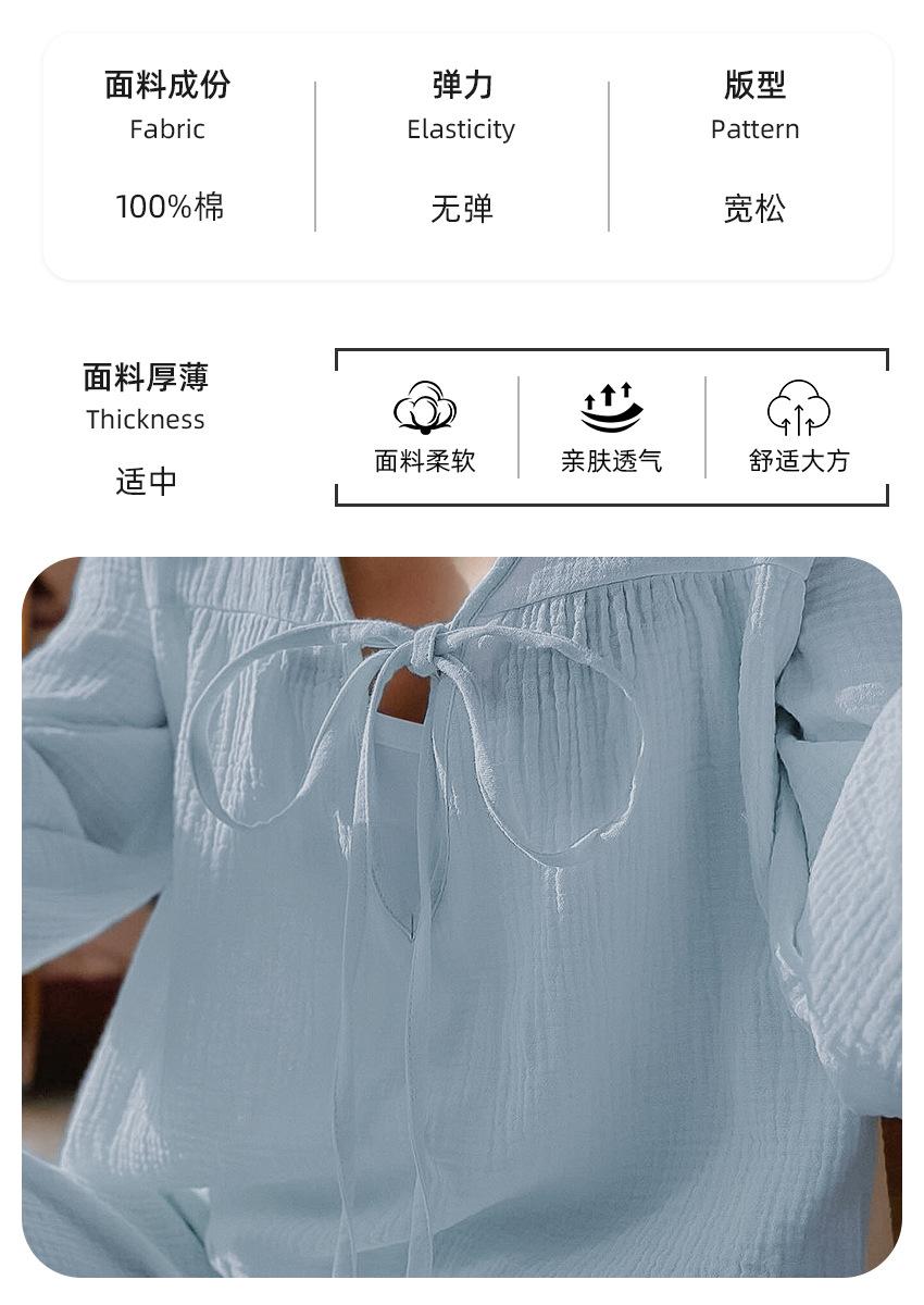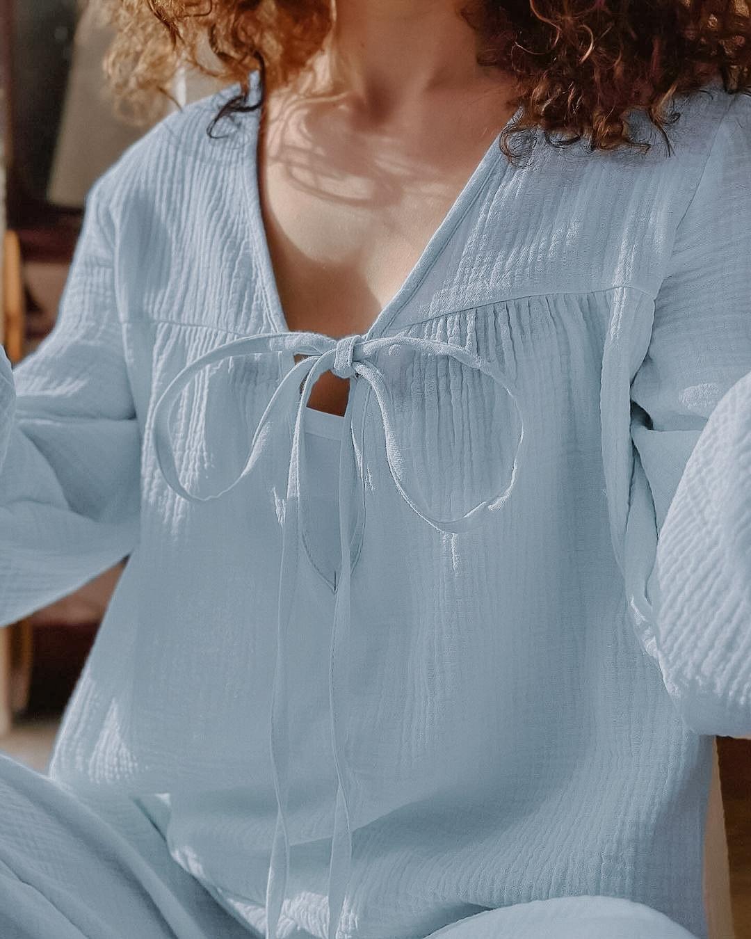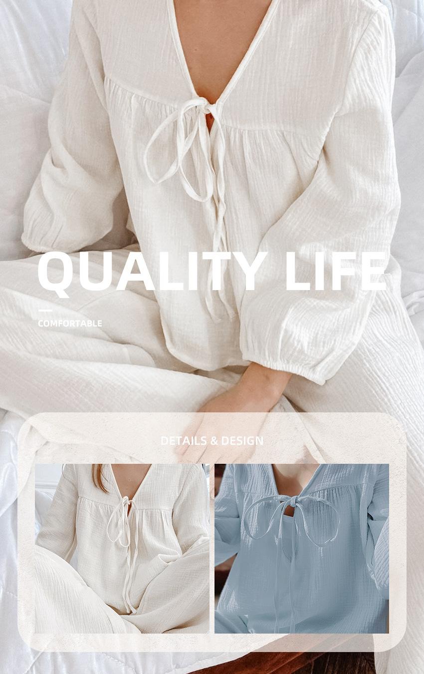 Pantalones Europeos y Americanos de Otoño Nuevos de Algodón Puro Arrugados con Cordones de Manga Larga Conjunto de Pijama Holgado 2025 Ropa de Hogar Transfronteriza para Mujeres