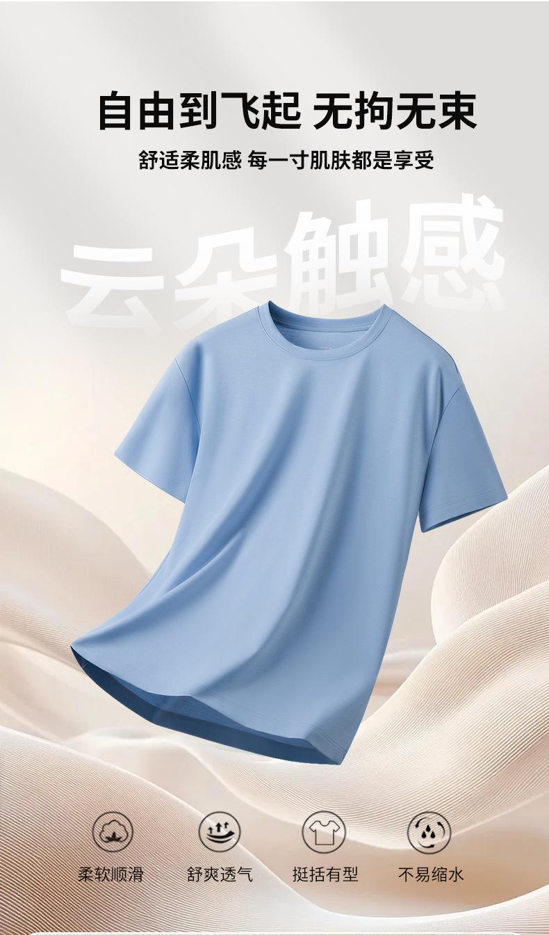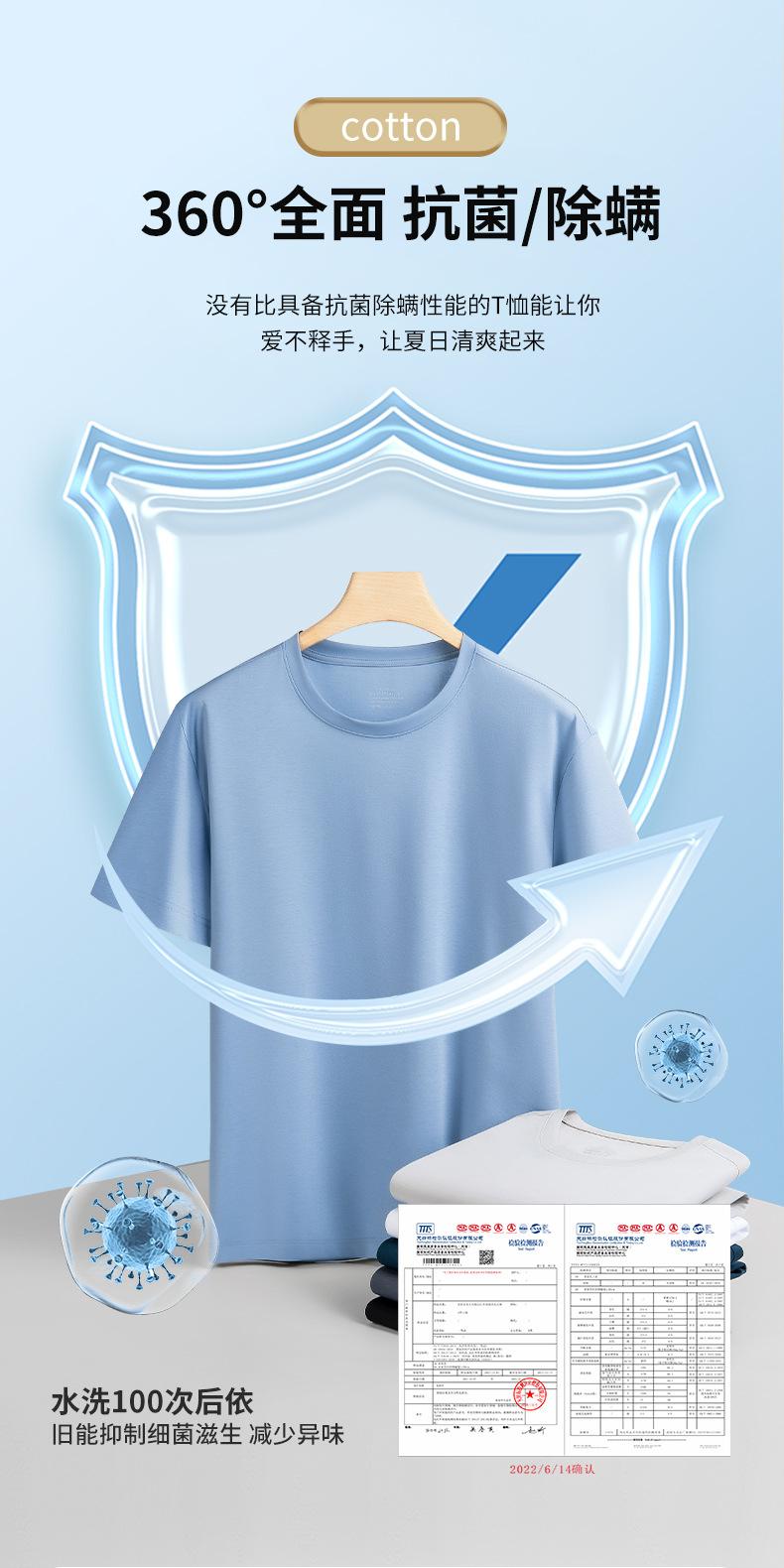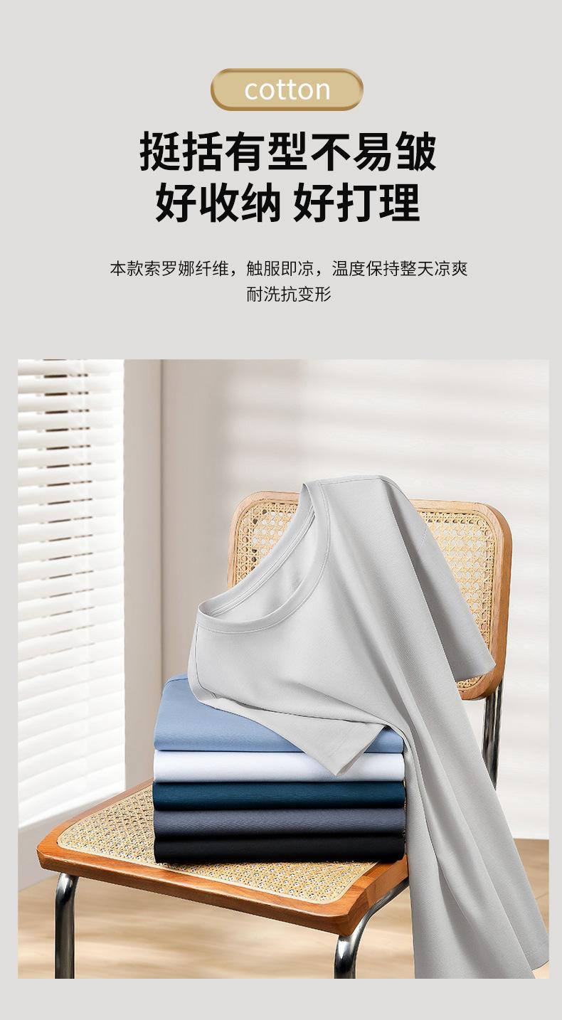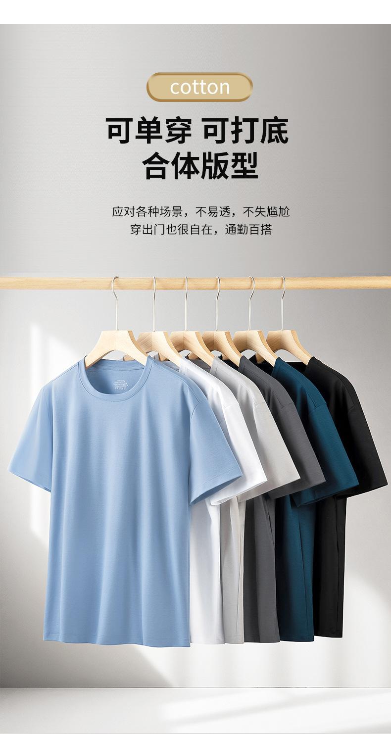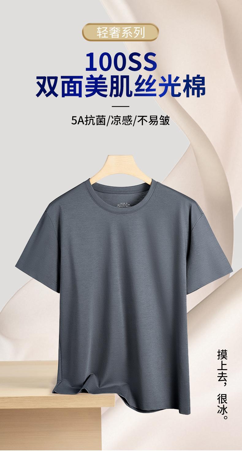Camiseta Básica de Algodón Mercerizado Real de Doble Cara de Denier Ultrafino 100 para Hombre Nueva de Primavera y Verano Antiarrugas Antibacteriana para Viajero de Manga Corta