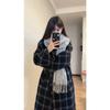 Otoño e Invierno 2025 Nuevo Estilo de Abrigo de Lana Pequeño Mediano Largo Estilo Coreano Abrigo de Lana a Cuadros para Mujer