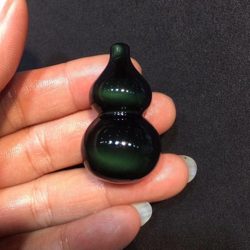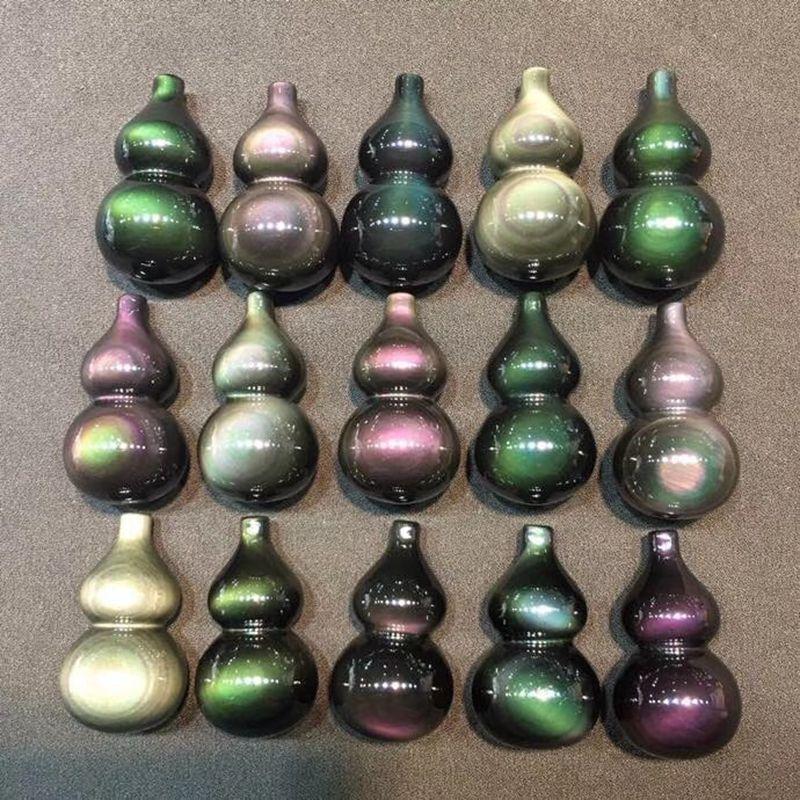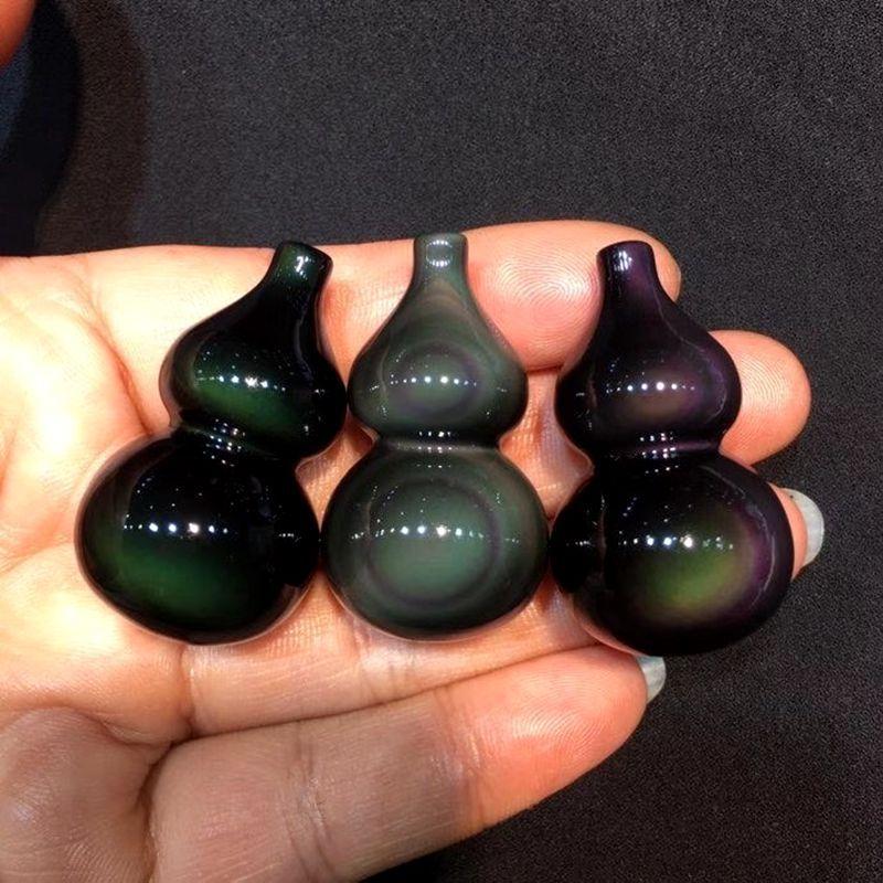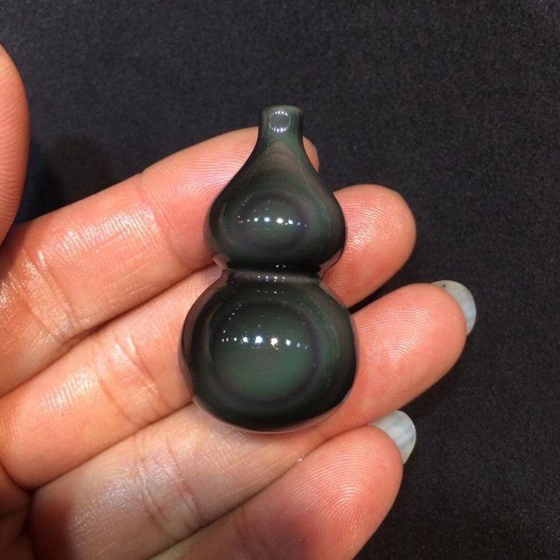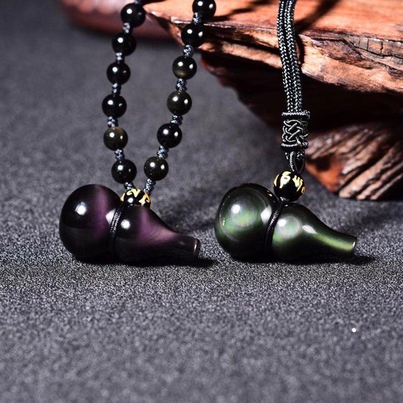 【Nombre del Bebé】Colgante de Calabaza de Obsidiana Ojo de Arcoíris Natural Colgante de Calabaza de Obsidiana