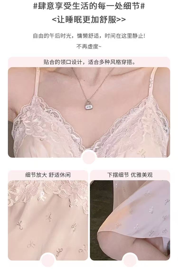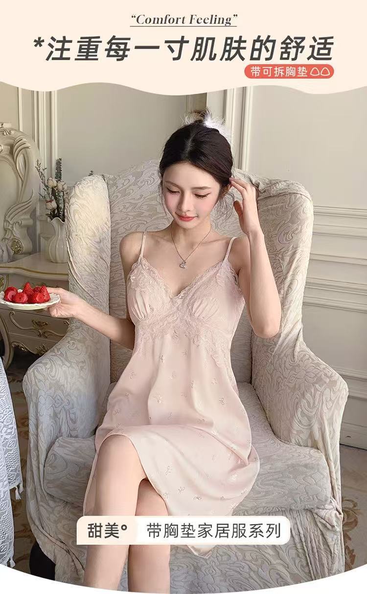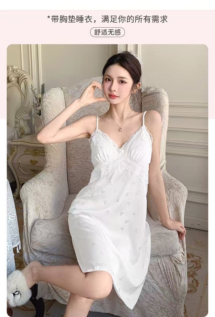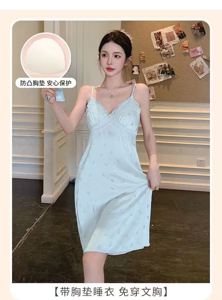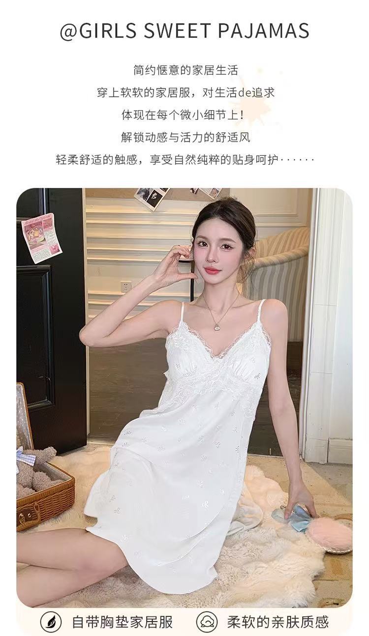 Compra Camisón de Verano para Mujer de Seda Helada Sexy Encaje Falda con Tirantes Pijama con Almohadillas para el Busto Nuevo Estilo 2025 Se Puede Usar Fuera Ropa de Casa al por mayor en Joom.pro