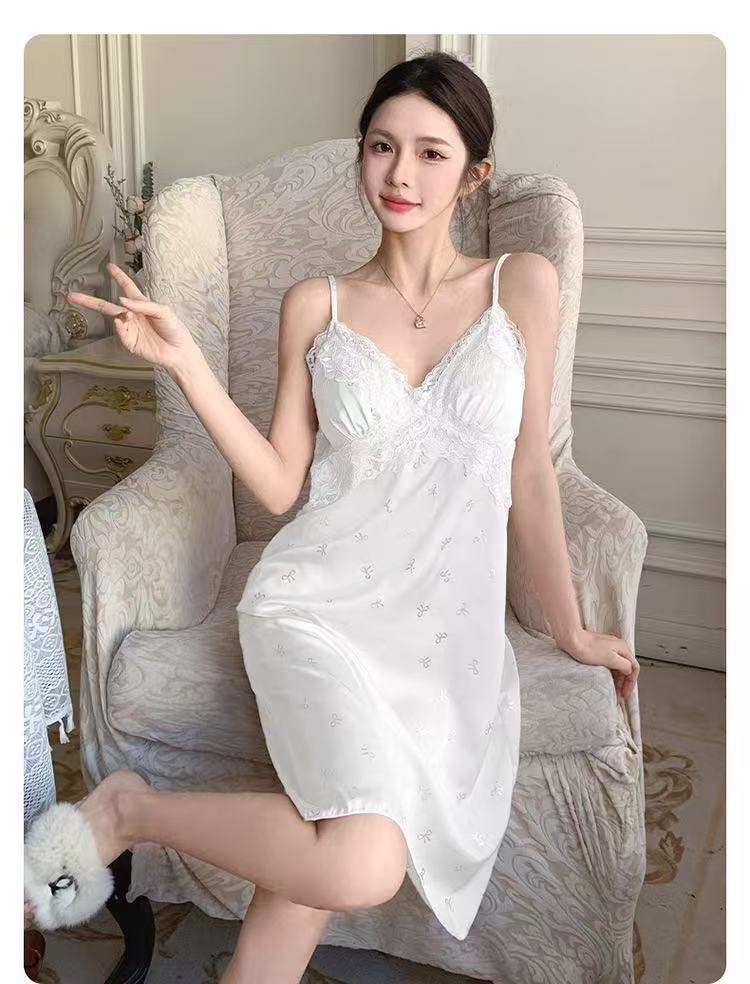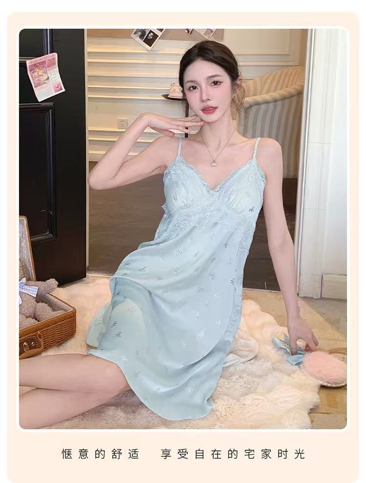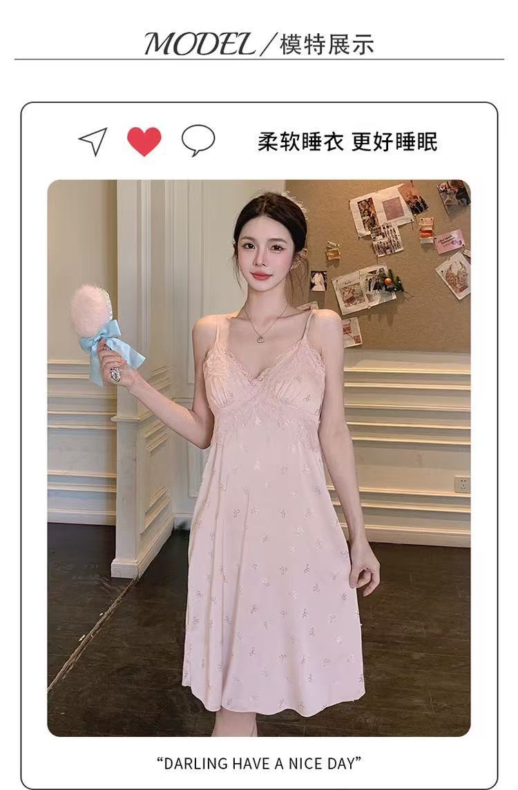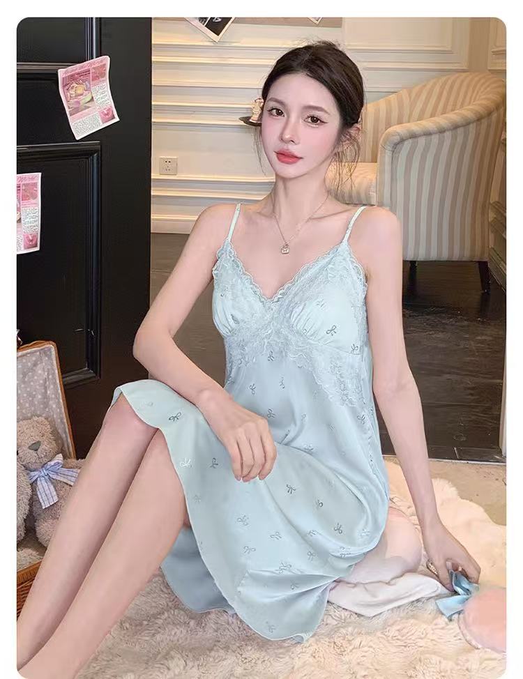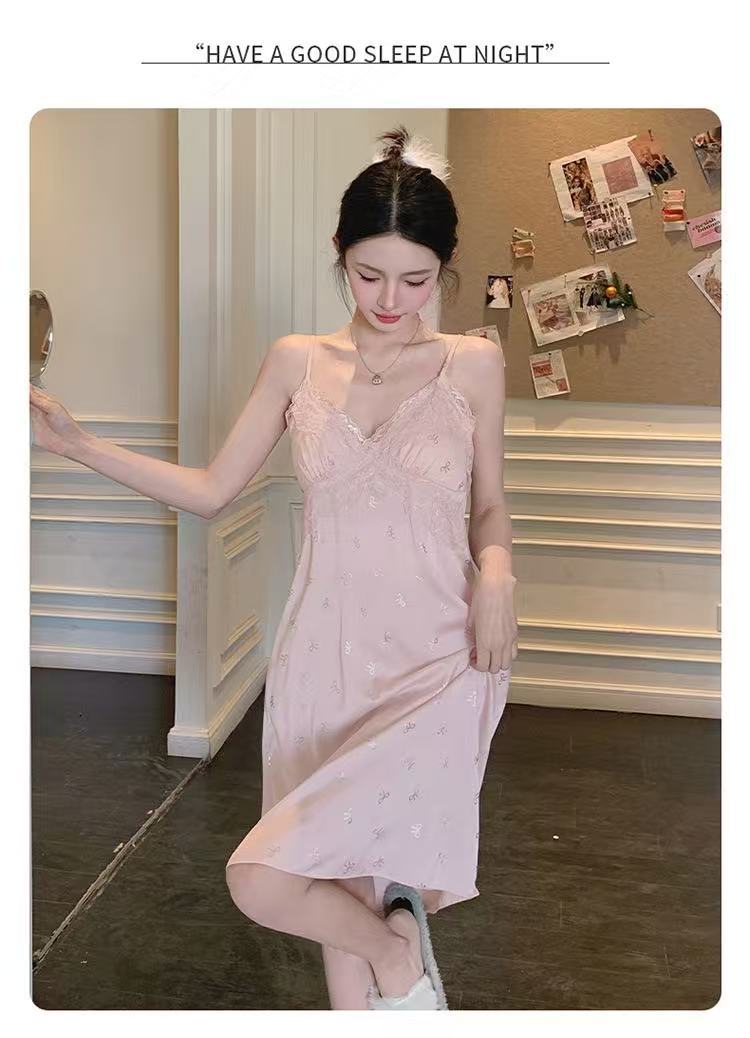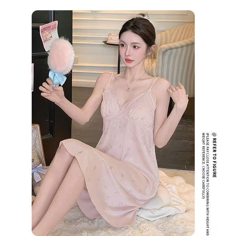Compra Camisón de Verano para Mujer de Seda Helada Sexy Encaje Falda con Tirantes Pijama con Almohadillas para el Busto Nuevo Estilo 2025 Se Puede Usar Fuera Ropa de Casa al por mayor en Joom.pro