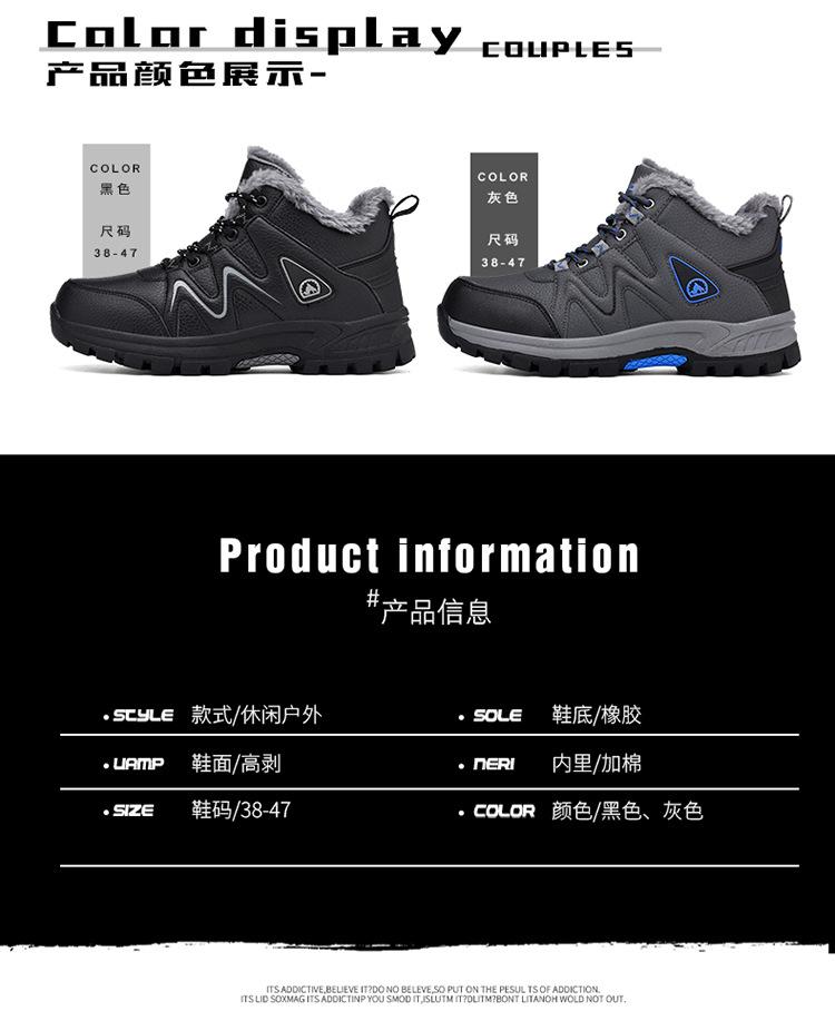 Nuevos Zapatos de Senderismo de Caña Alta para Exteriores de Talla Grande Transfronterizos, Zapatos de Algodón con Forro Polar, Cálidos para Invierno, Botas para Hombre Casuales Deportivas para Senderismo