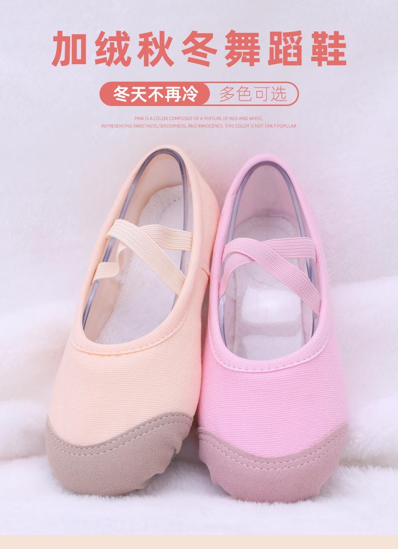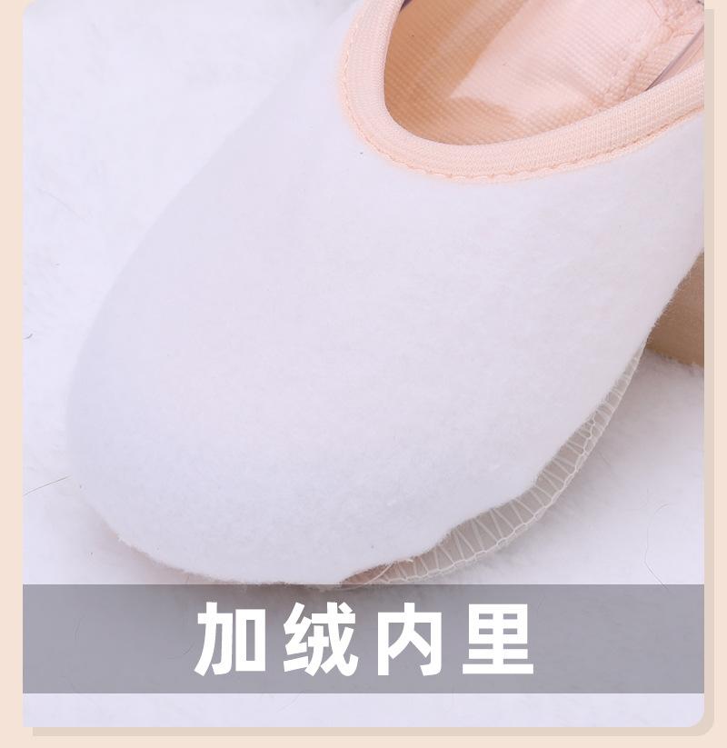 Zapatos de baile sin cordones forrados de felpa otoño e invierno engrosados cálidos zapatos de baile para niños suela suave práctica ballet zapatos de garra de gato para mujer