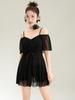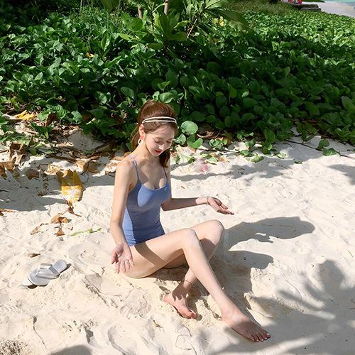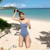 Versión Coreana 2025 Verano Nuevo Ins Traje de Baño de Una Pieza Adelgazante con Lazo Pecho Pequeño Push-Up para Mujer Espalda Descubierta Vacaciones de Aguas Termales