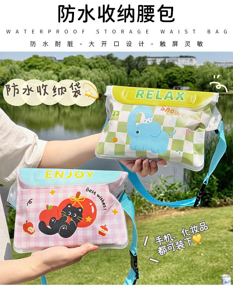 Bolsa de Cintura Impermeable para Natación Pvc Rafting Exterior Sellada Transparente Pantalla Táctil Ampliada Transparente Dibujos Animados Engrosada Bolsa Impermeable