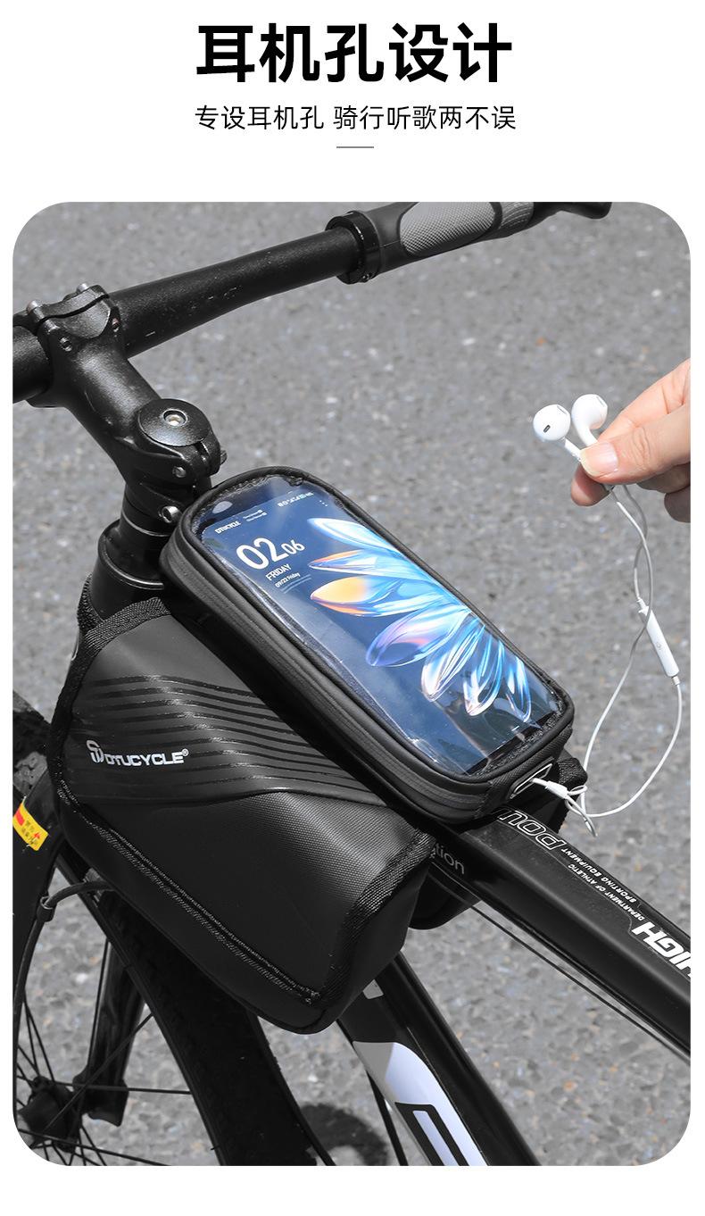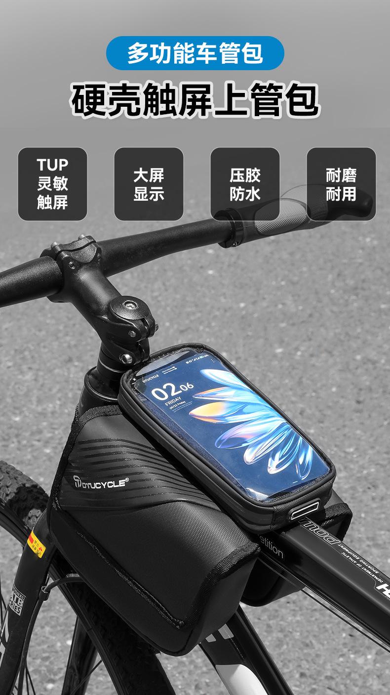 Nueva bolsa de tubo superior de almacenamiento doble de bicicleta de montaña transfronteriza, impermeable, de cuero PU, con pantalla táctil para teléfono, fabricante de bolsa de viga delantera para bicicleta