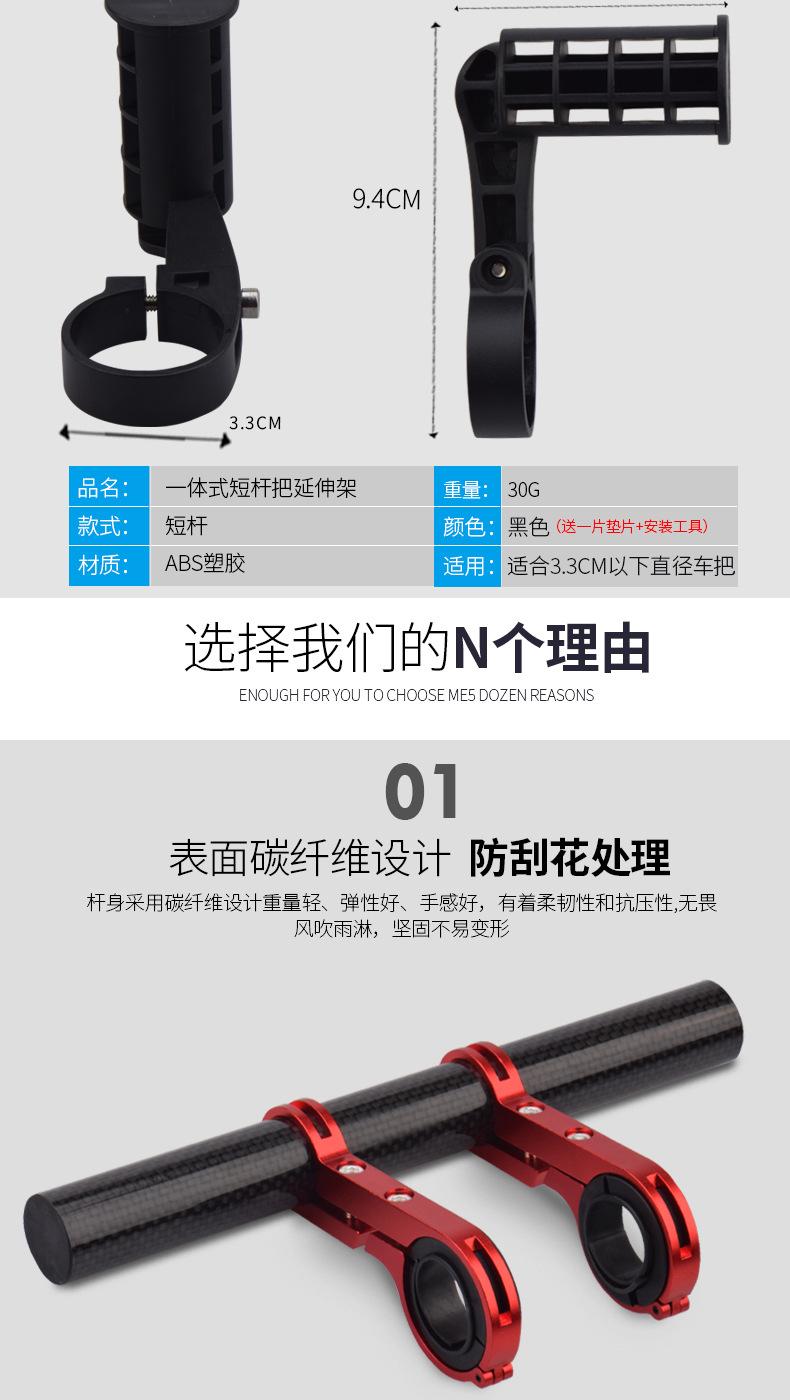 Extensión de Manillar de Bicicleta Extensión Extensión Soporte Doble Código Medidor Lámpara Bicicleta de Montaña Linterna Soporte de Aleación de Aluminio