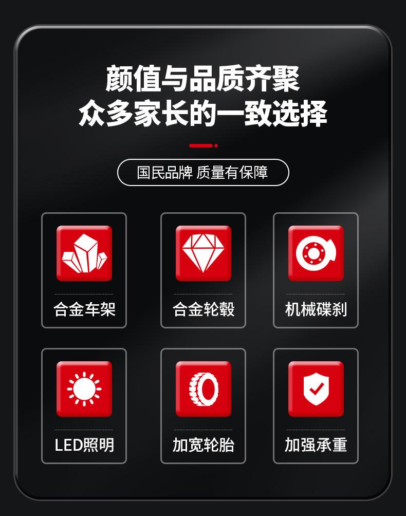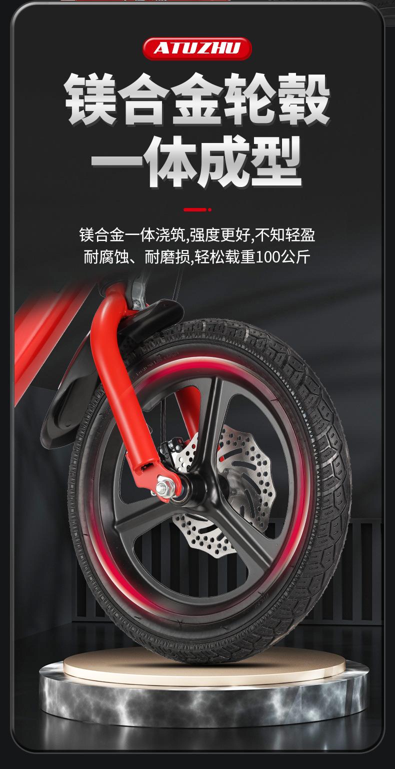 Black integrated wheel front and rear disc brakes, Red integrated wheel front and rear disc brakes, Pink integ...