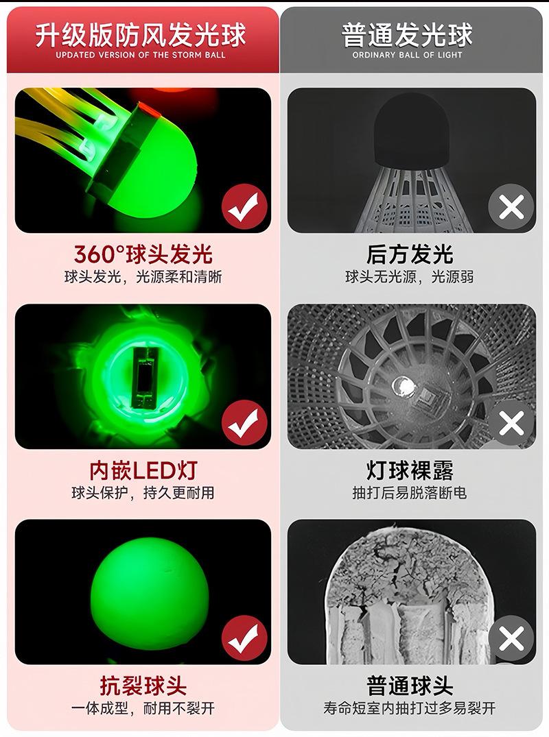 Bádminton Luminoso a Prueba de Viento LED Luminoso Plástico Nylon Irrompible Exterior Resistente al Viento Cabeza de Bádminton con Lámpara