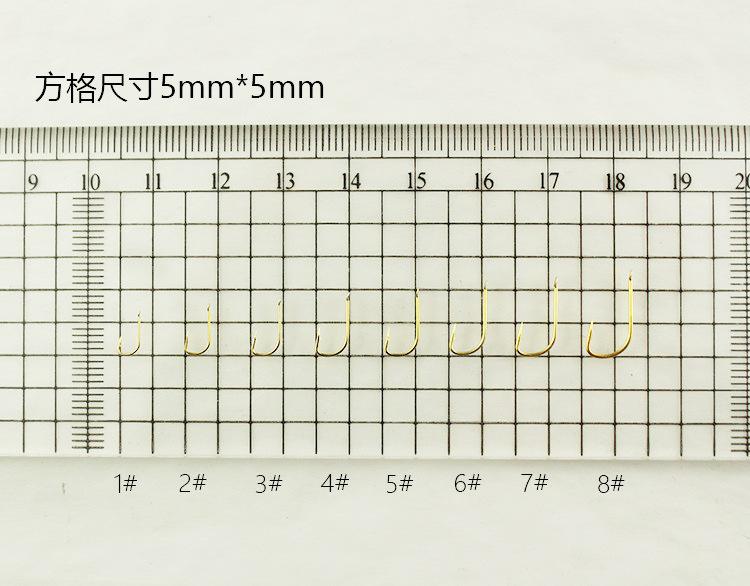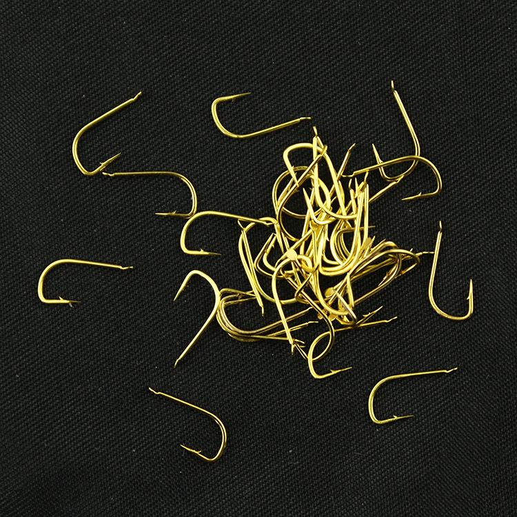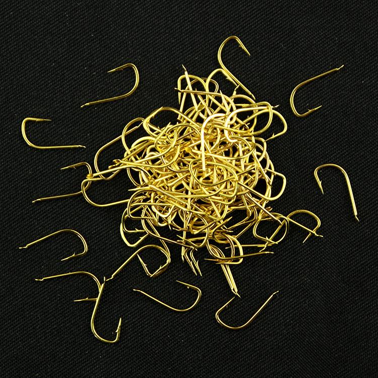 Anzuelo dorado con ojal a granel con púas sin espina mango largo plano tamaño pequeño anzuelo Jinxiu accesorios de pesca mayoreo