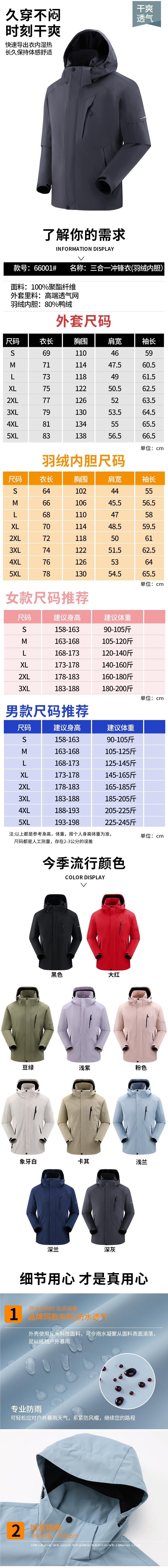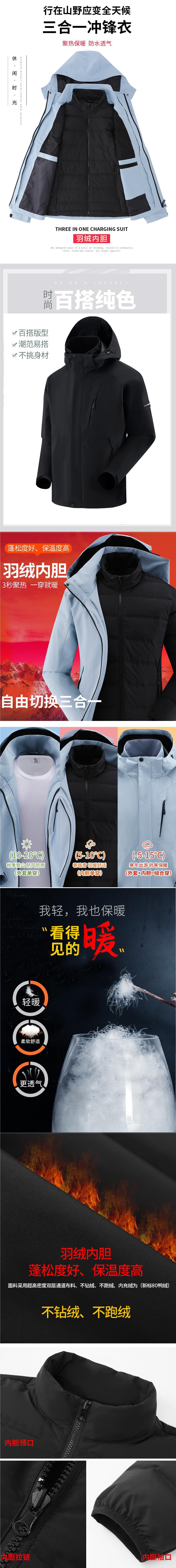 Chamarra de Montaña con Logo Personalizado Tres en Uno para Exterior Cortavientos e Impermeable Montañismo 2024 Nuevo Otoño e Invierno Cálida y Desmontable
