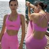 Sujetador Deportivo Push-Up sin Espalda para Yoga, Pantalón de Yoga Ajustado Transpirable Levanta Glúteos Conjunto de Dos Piezas, Ropa para Fitness Jogging para Mujer
