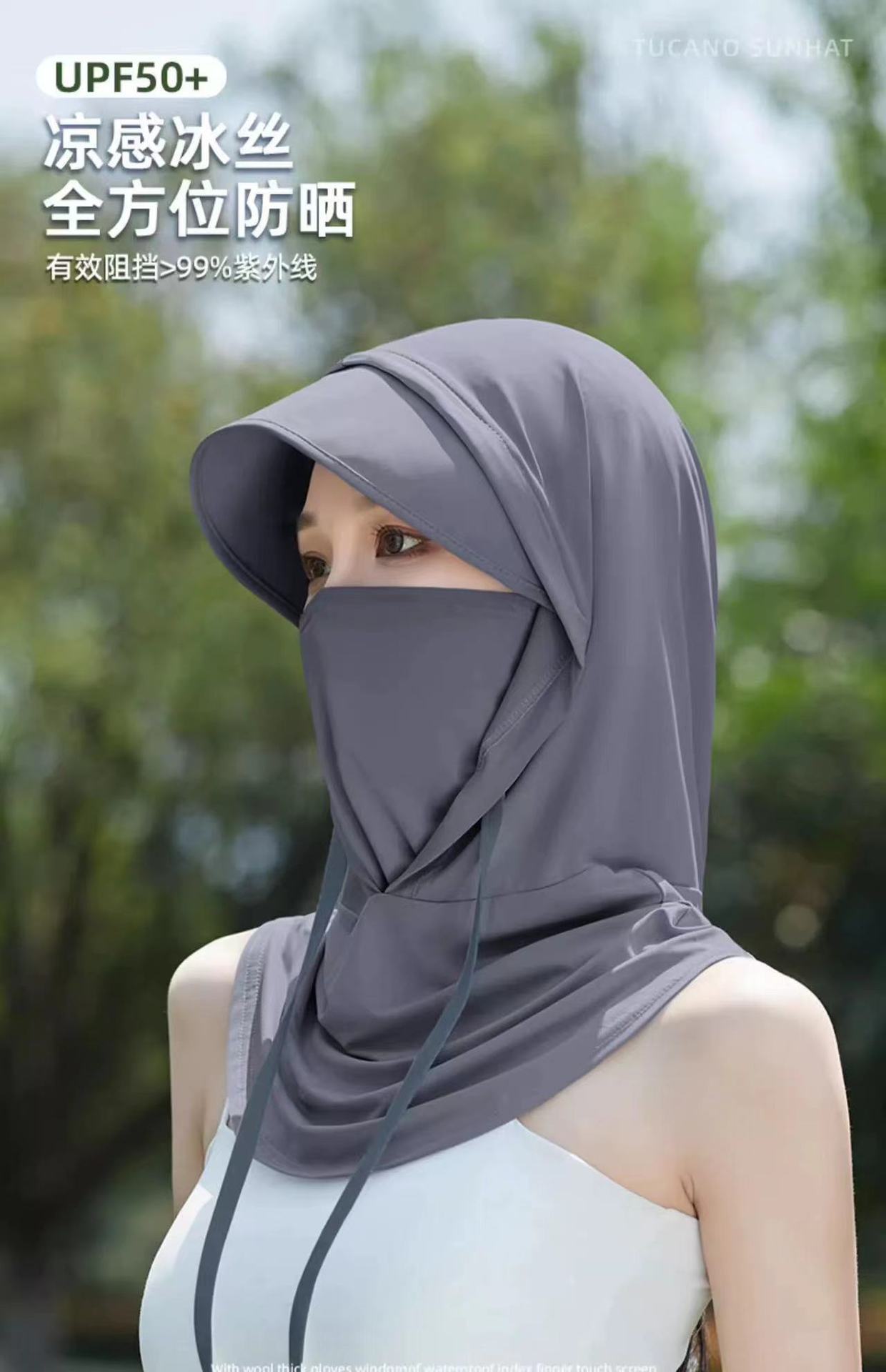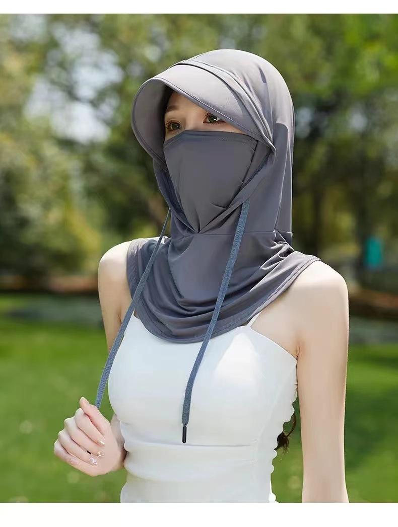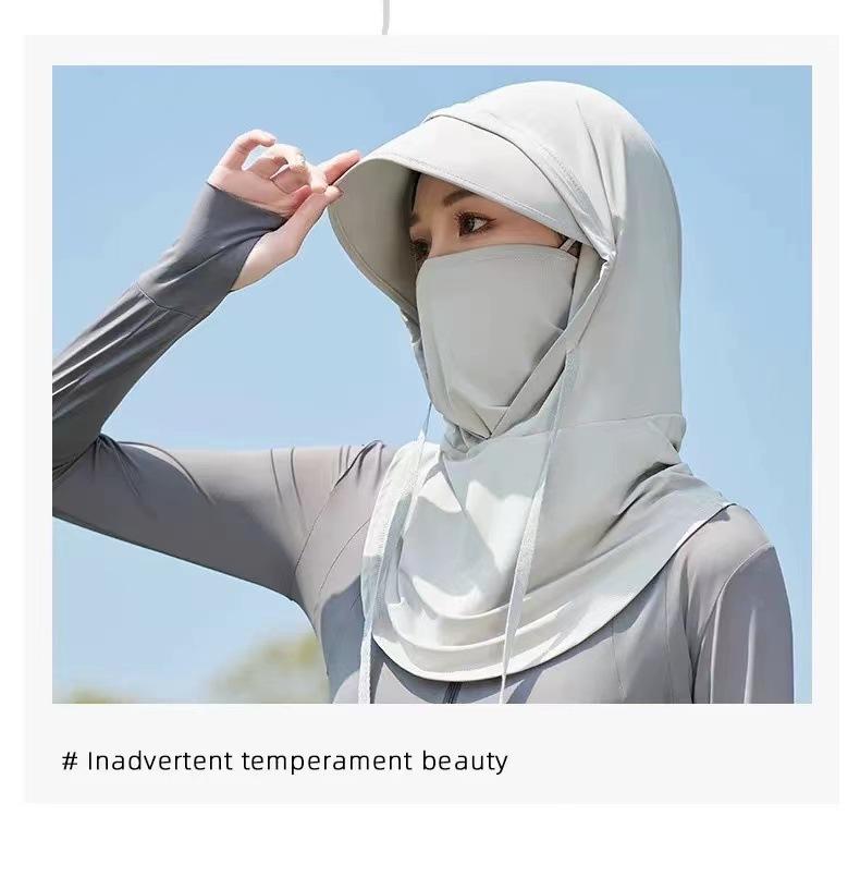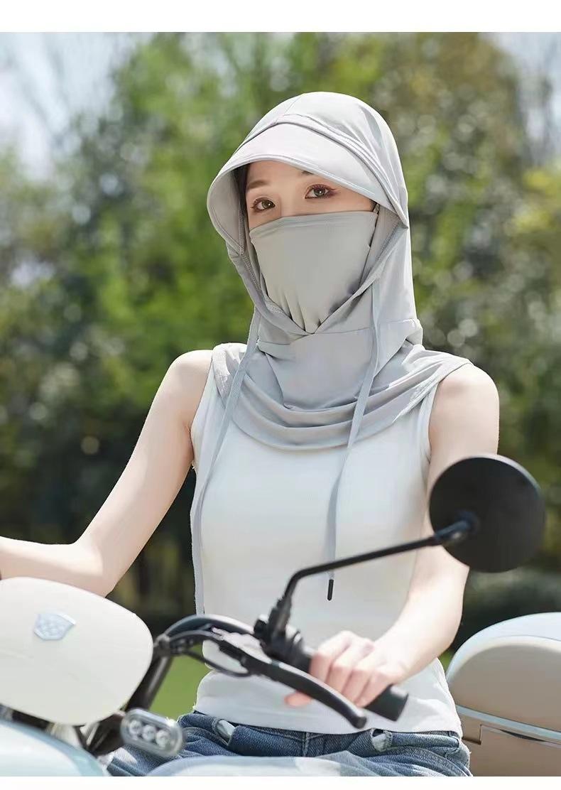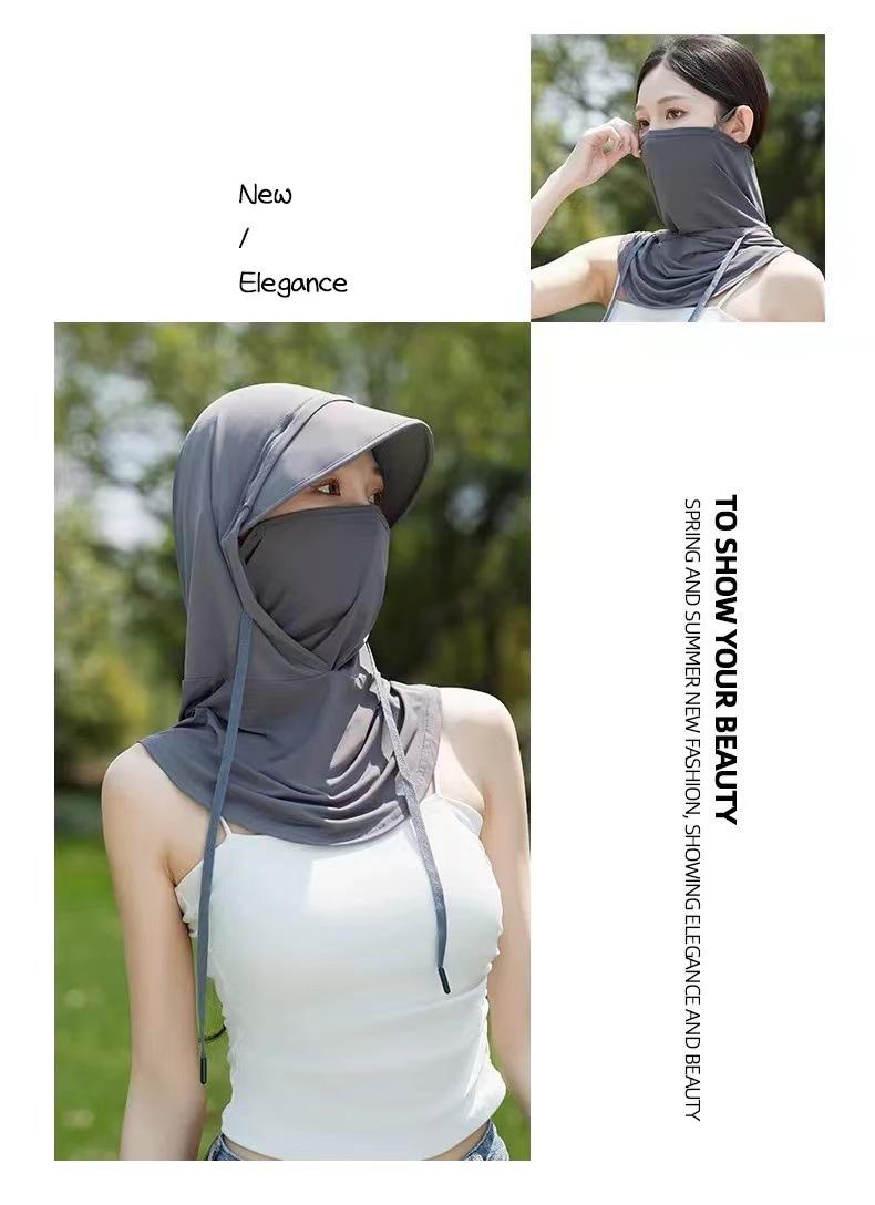 Verano con Capucha Ciclismo Protección de Cuello Máscara Protección Solar Sombrero Todo en Uno Seda de Hielo para Mujer Máscara Protectora Facial Completa Anti-UV