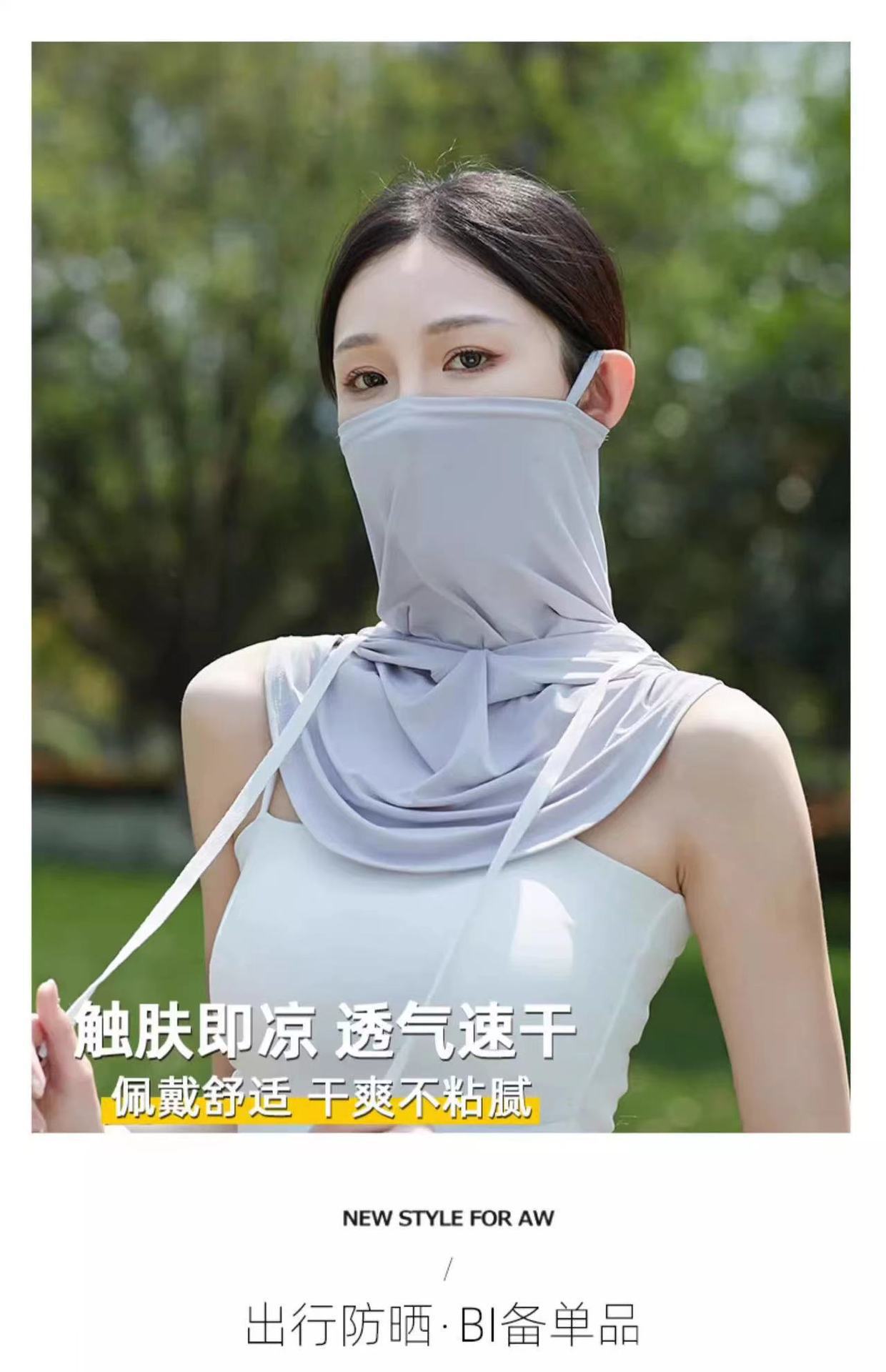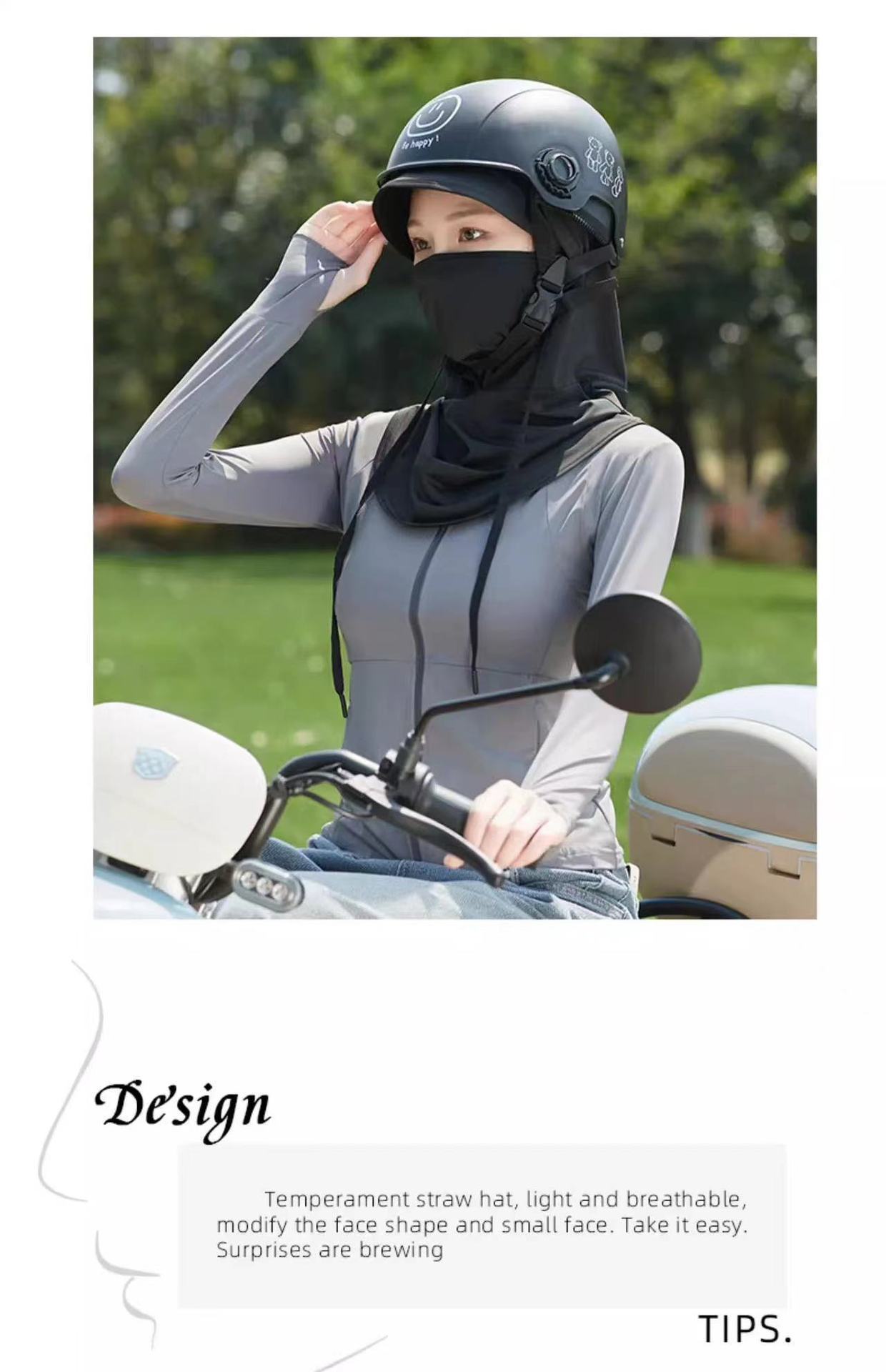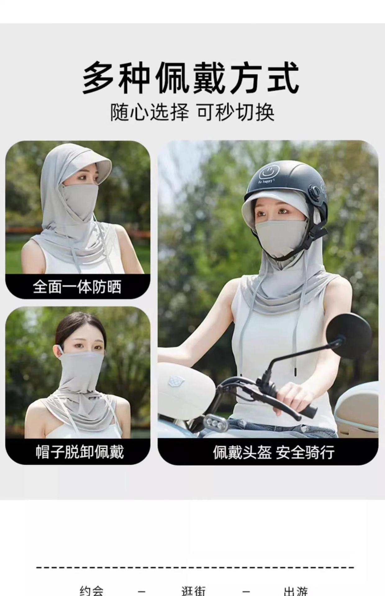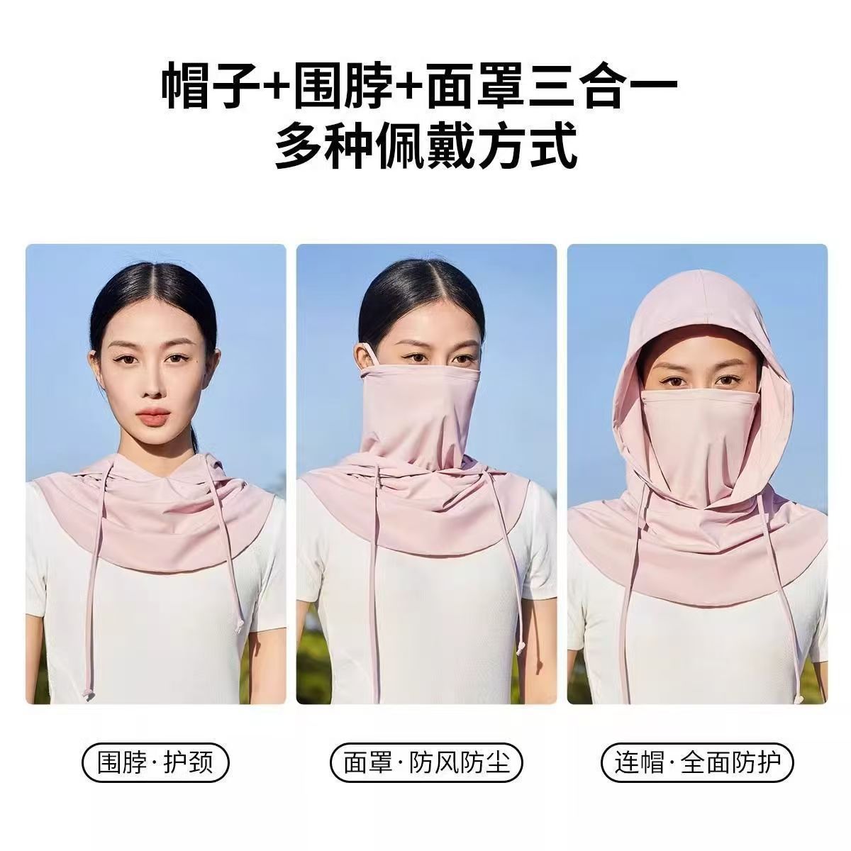 Verano con Capucha Ciclismo Protección de Cuello Máscara Protección Solar Sombrero Todo en Uno Seda de Hielo para Mujer Máscara Protectora Facial Completa Anti-UV
