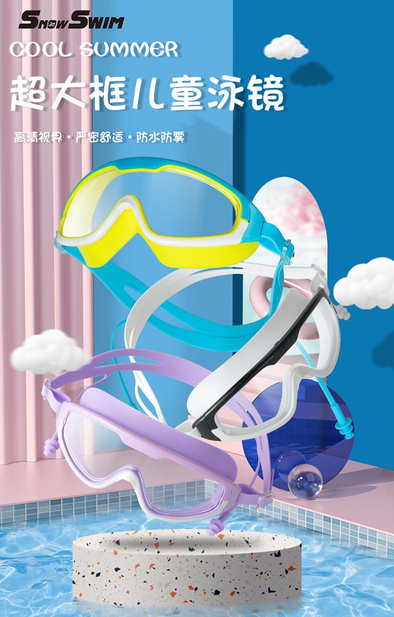 Nuevas Gafas de Natación de Montura Grande Impermeables Antivaho HD Gafas de Natación Tapones para los Oídos Silicona Galvanizadas Gafas de Natación para Niños