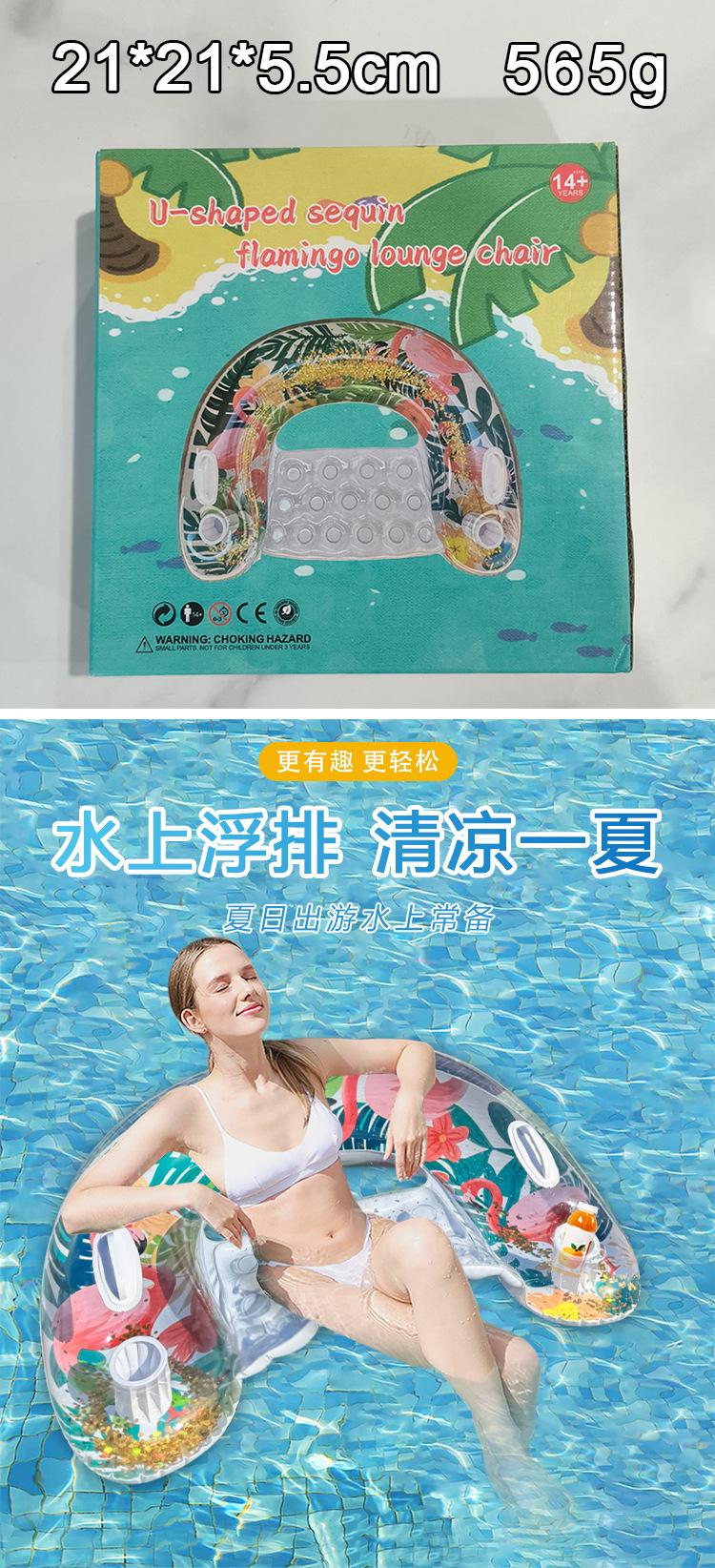 U-shaped sequined leaf flamingo seat float, Sequin u-shaped rainbow seat float, Sequin u-shaped ink seat float...