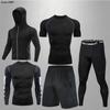 Conjunto de fitness para gimnasio para hombre de venta caliente transfronteriza, conjunto deportivo de 5 piezas, ropa deportiva de secado rápido para hombre