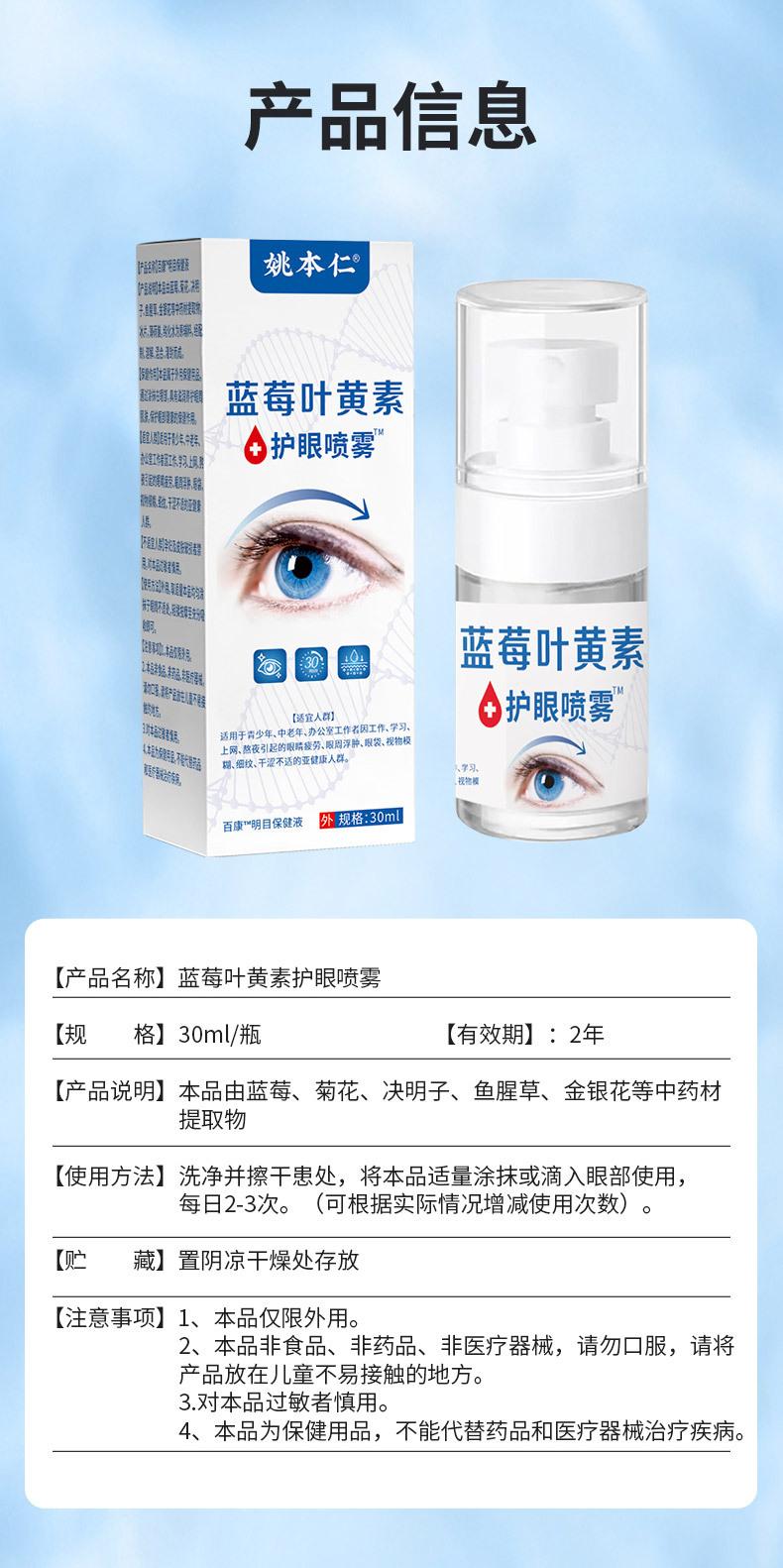 Yao Benren Spray Protector Ocular de Luteína y Arándano Alivia el Malestar Ocular Solución para el Cuidado Fuente de Suministro para Transmisión en Vivo de Comercio Electrónico