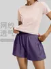 Conjunto Deportivo Corto de Verano Malla Trasera Transpirable Manga Corta Bolsillo Fruncido Cintura Elástica Pantalones Cortos de Tres Puntos Conjunto de Dos Piezas Mujer