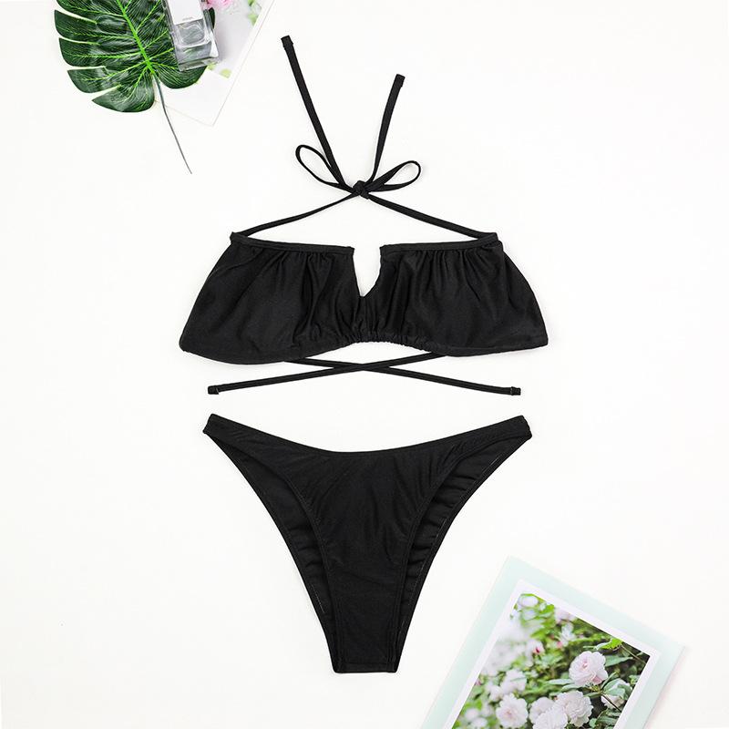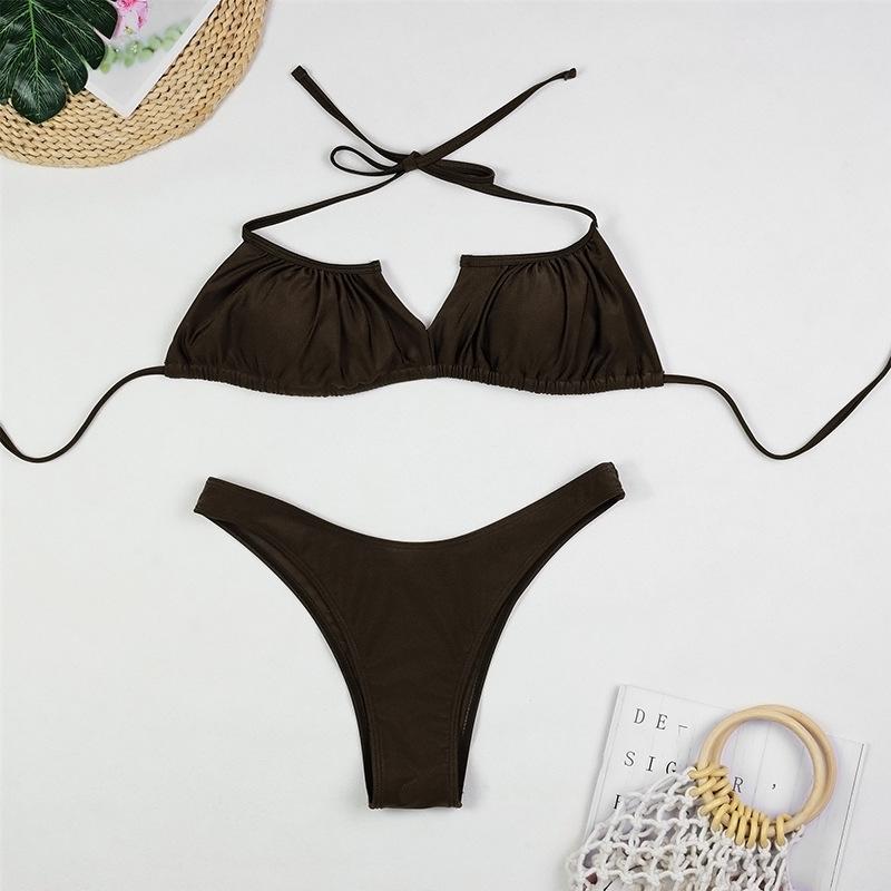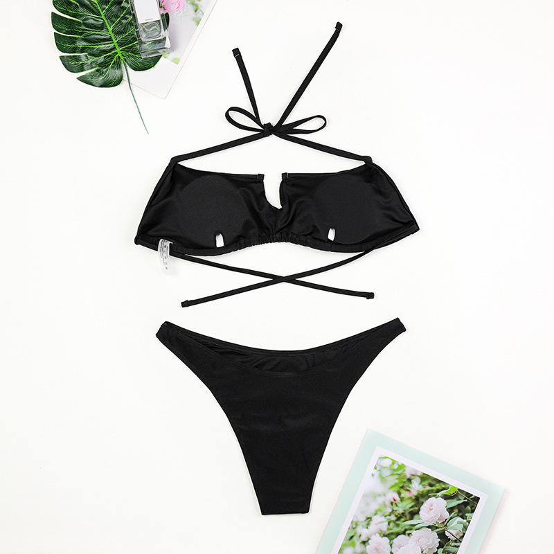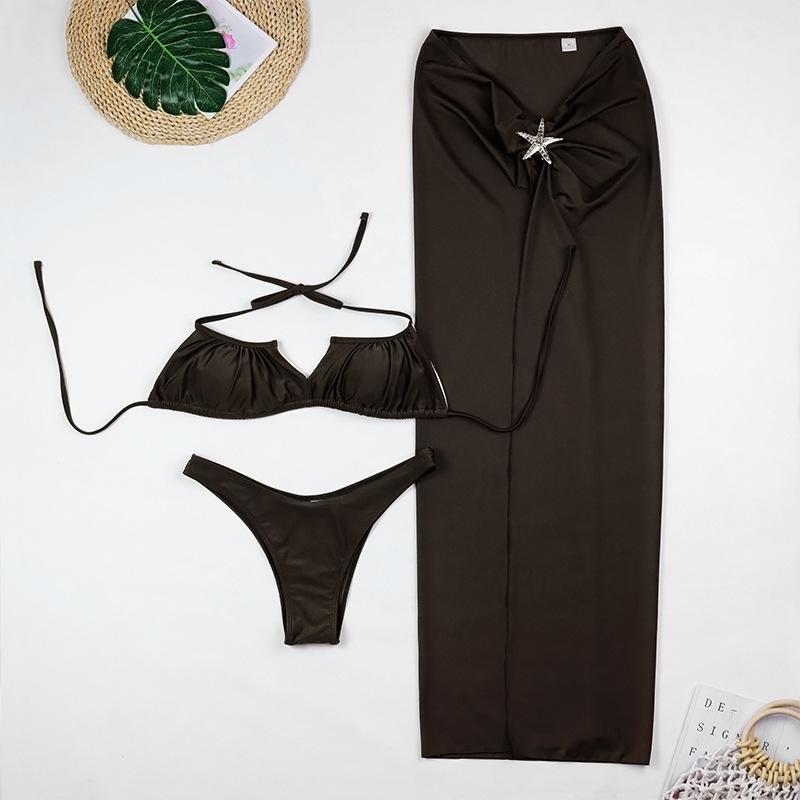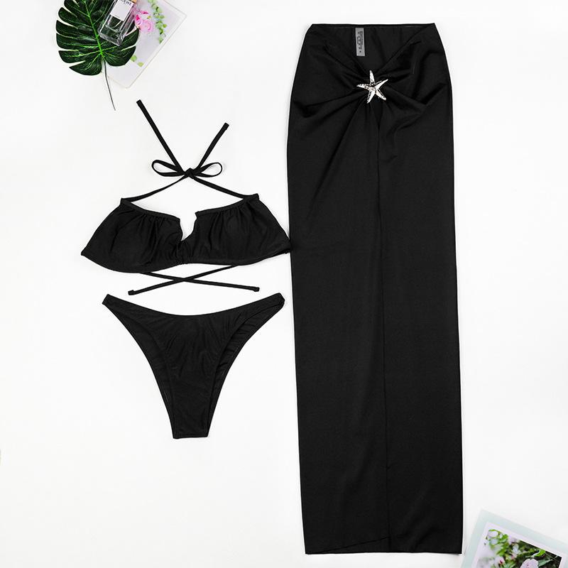 2025 Bikini Nuevo de Tres Piezas Sexy Bikini Europeo y Americano Color Puro Transfronterizo Dividido Traje de Baño para Mujer Traje de Baño Mujer