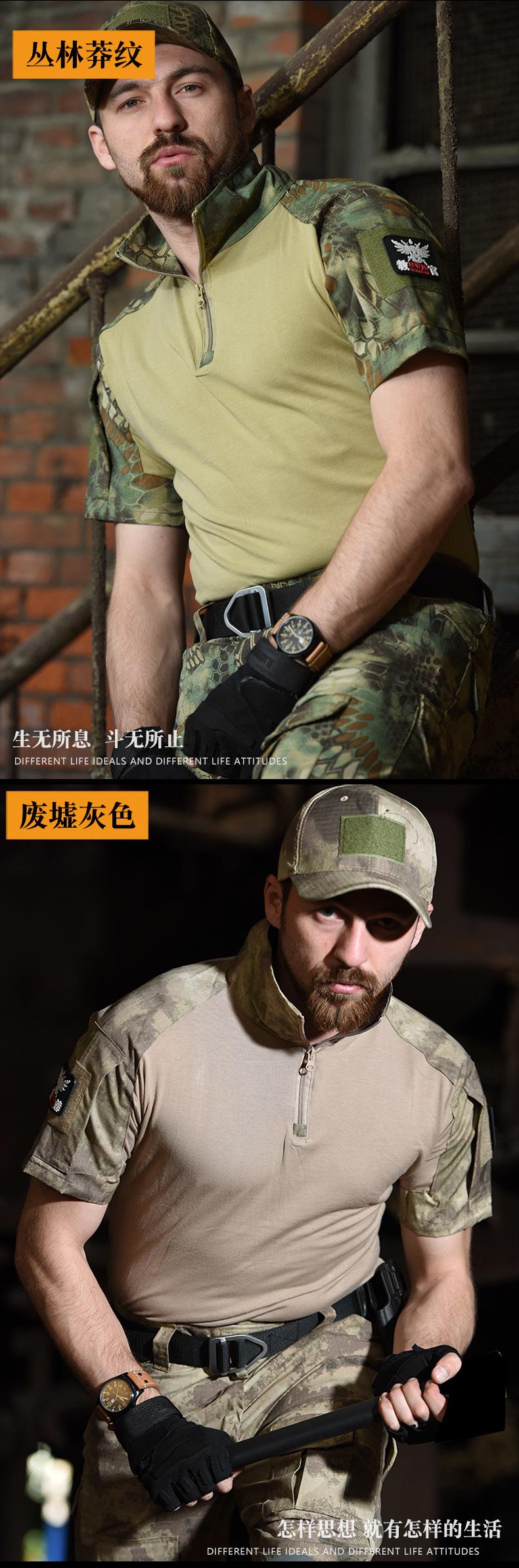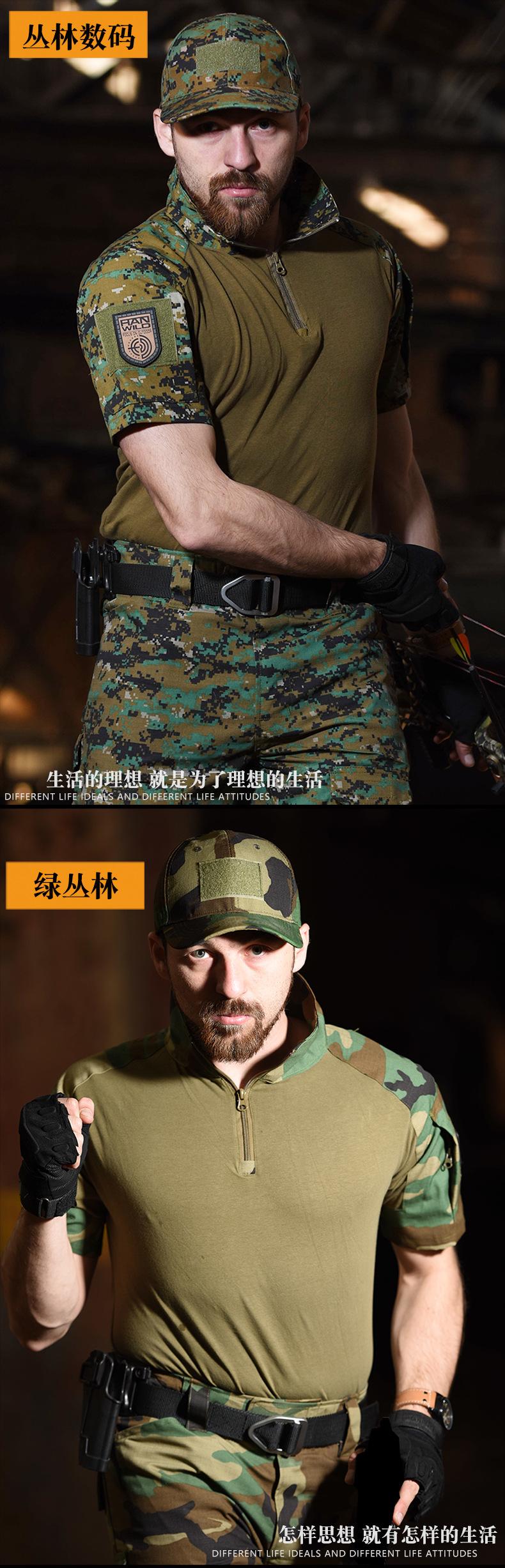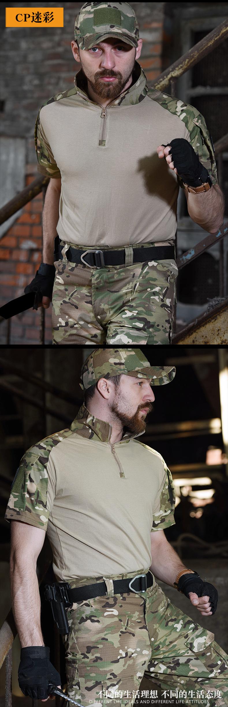 Hanye Outdoor Camuflaje Manga Corta Camiseta Táctica para Hombre Traje G2 Uniforme de Entrenamiento Transpirable y Resistente al Desgaste Manga Corta
