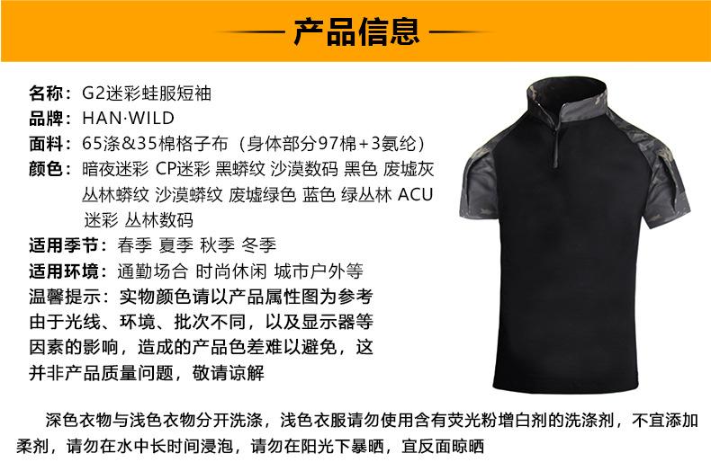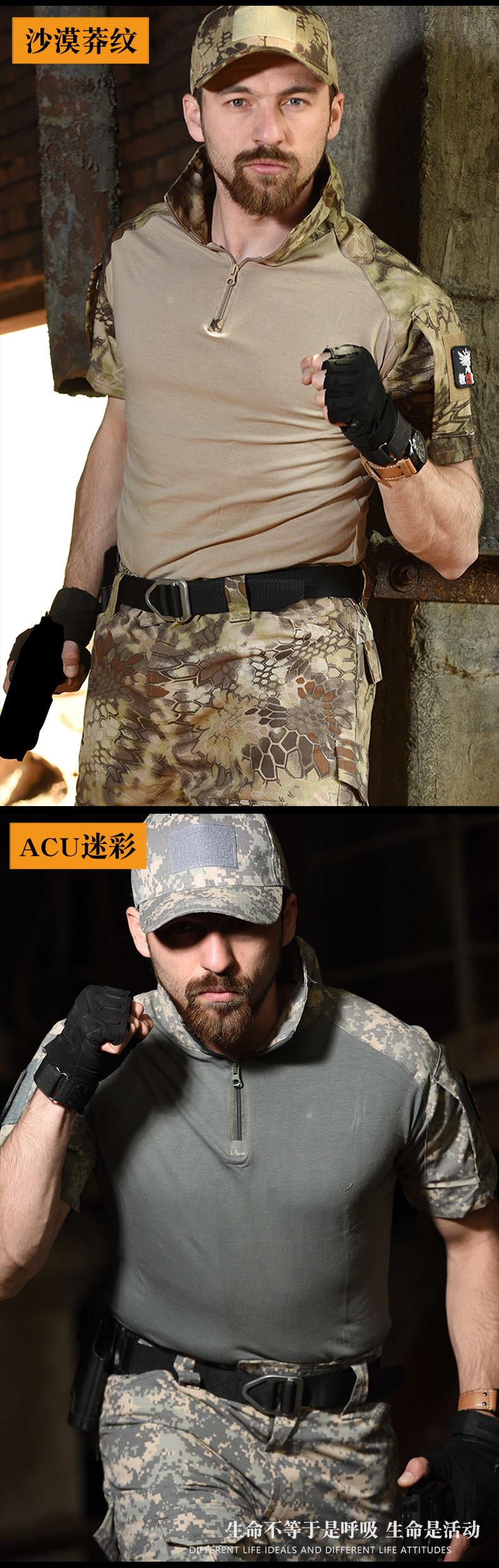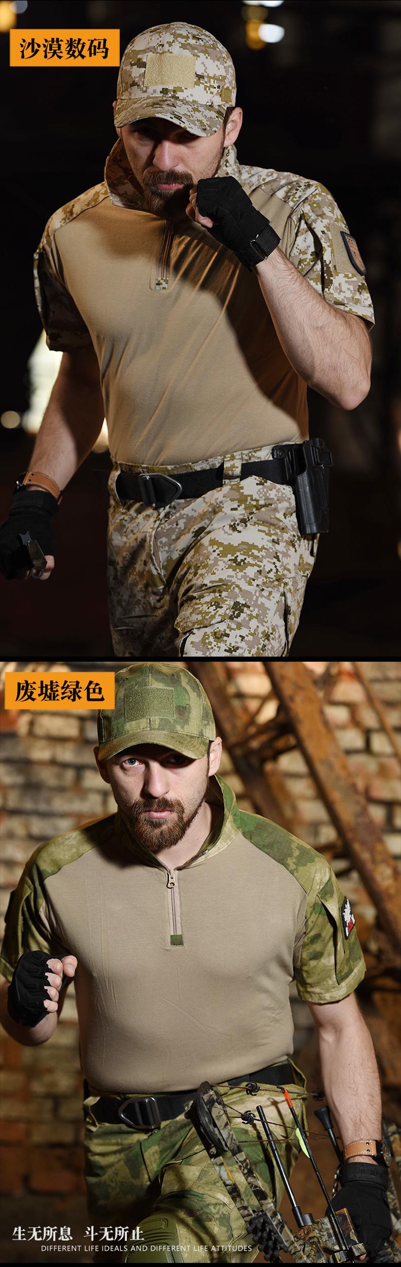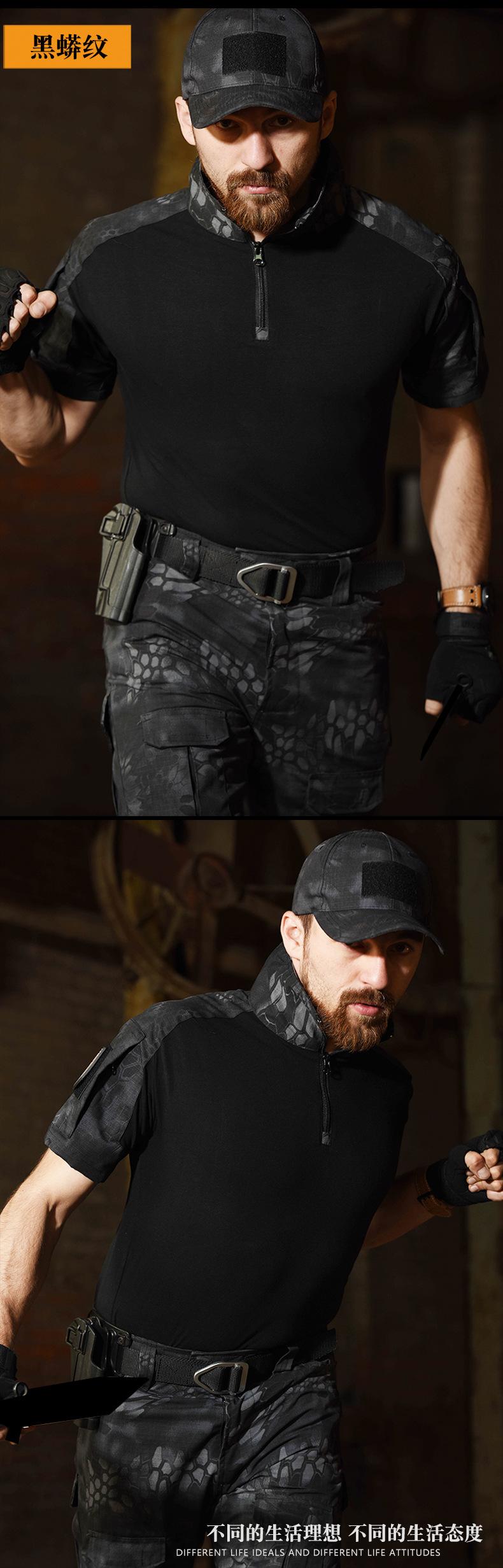 Hanye Outdoor Camuflaje Manga Corta Camiseta Táctica para Hombre Traje G2 Uniforme de Entrenamiento Transpirable y Resistente al Desgaste Manga Corta
