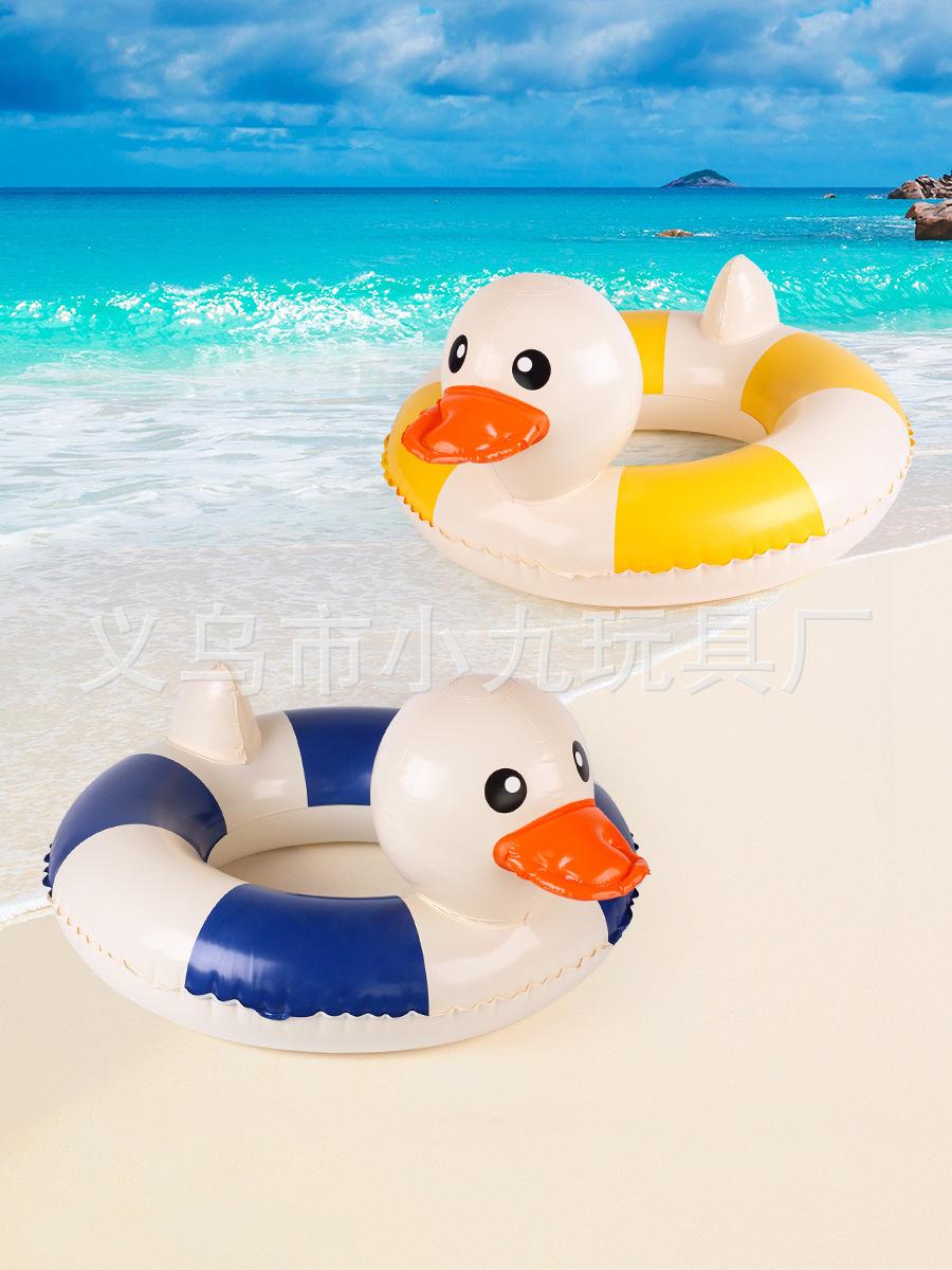 Asiento Animal Tridimensional Inflable Anillo de Natación de Pato Rayado Engrosado Agua Exterior Niños Anillo de Natación Protector de Axila