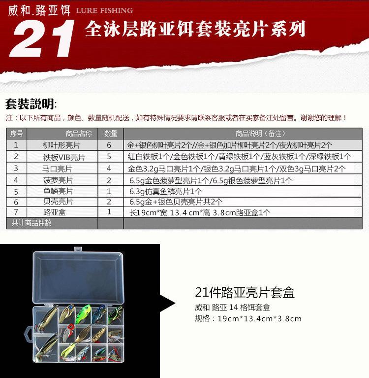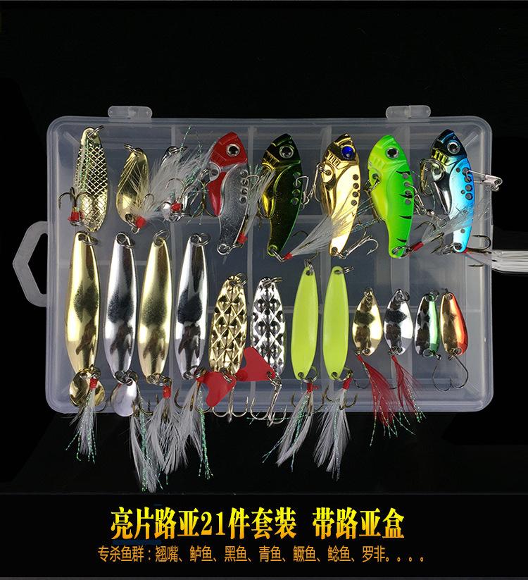 Weihe Sports Set de Señuelos 21 Piezas Vib Caja de Hierro Señuelo Multiusos Señuelo de Lentejuela Equipo de Pesca Venta al Por Mayor Transfronterizo