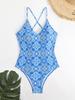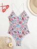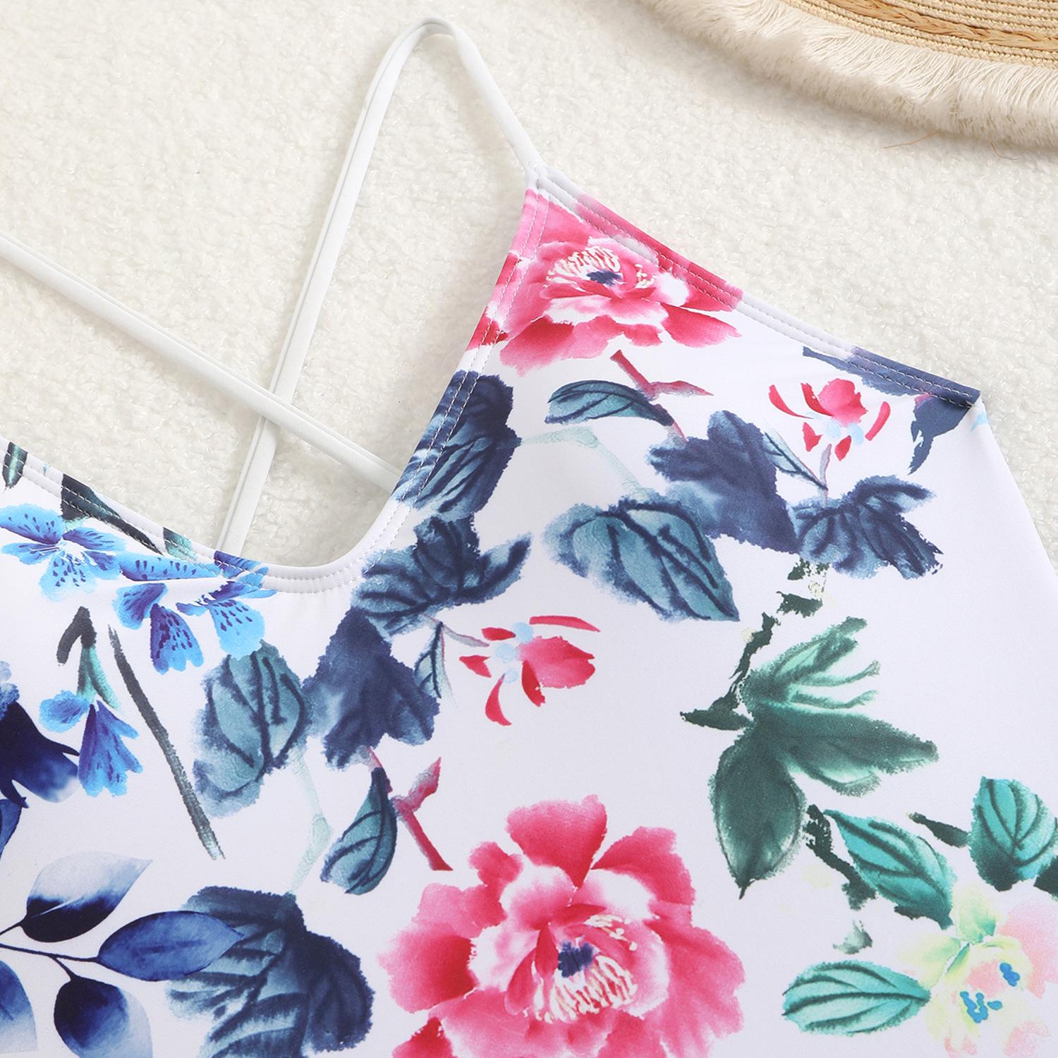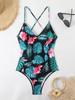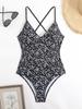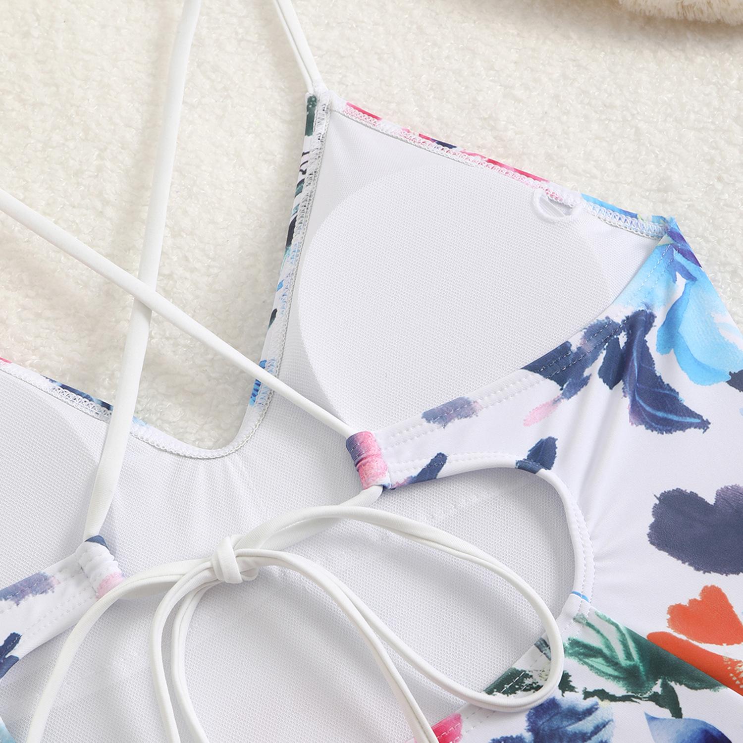 Traje de baño sexy de una pieza con tirantes cruzados multicolor europeo y americano para playa caliente, traje de baño de flores grandes, bikini floral