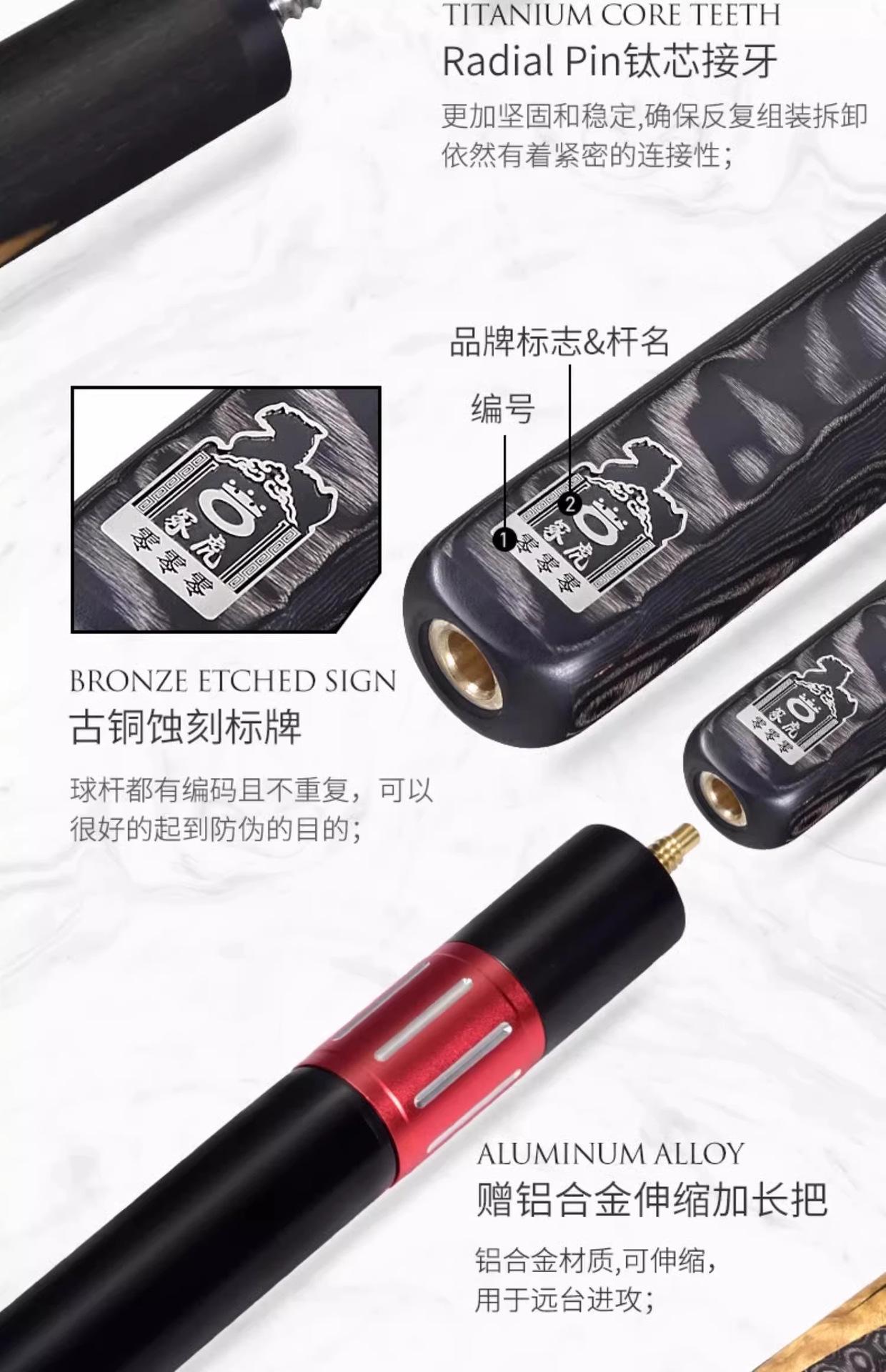 Taco de Billar Misterio Tres Reinos Zuka Tigre Taco de Cabeza Pequeña Taco de Billar Ocho Negro Chino Taco de Madera de Fresno Taco de Snooker